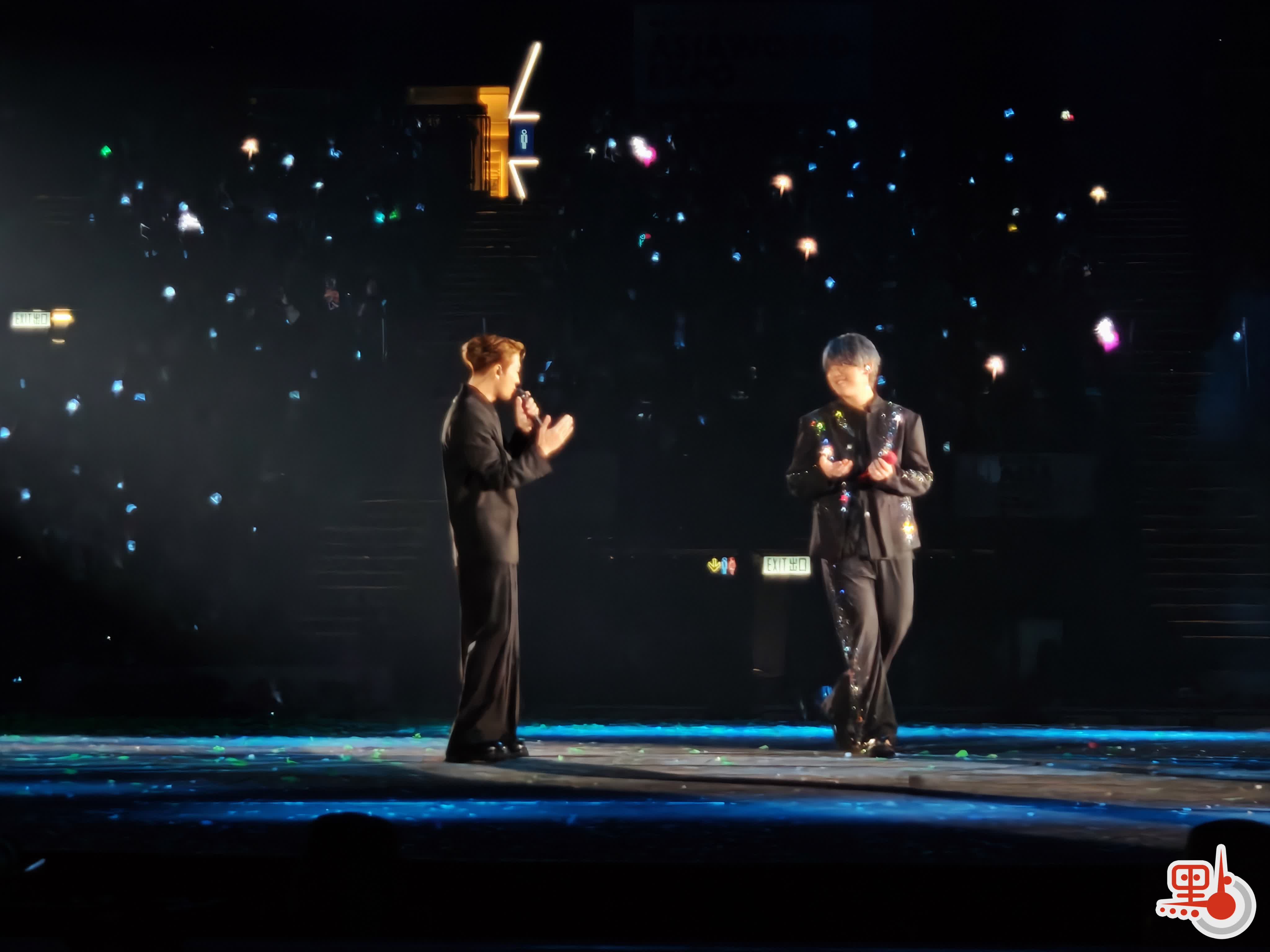 演出尾聲,「姜糖」(姜濤粉絲呢稱)深情合唱《風雨不改》,不少人手持「愛姜牌」,邊唱邊流淚,場面感人。就在情緒高漲之際,昨日(16日)剛剛返港的王嘉爾(Jackson)突然現身,與姜濤合唱《Every Single Time》。兩人默契十足,引起現場粉絲驚喜歡呼。