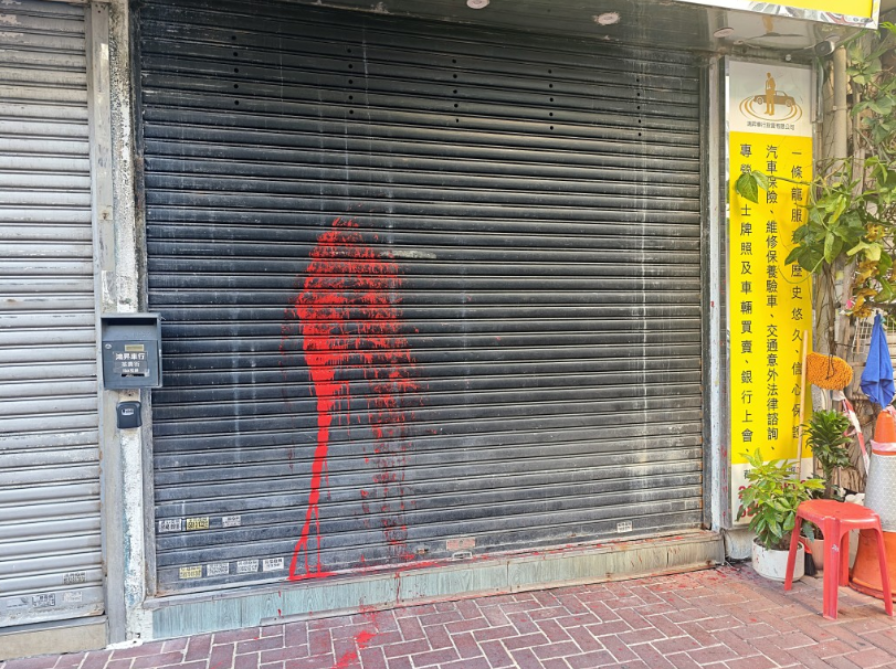 【點新聞報道】今(18日)晨,荃灣荃貴街一間車行遭人淋潑紅油,鐵閘和對出行人路沾滿漆油,店主聞訊報警,警方到場調查,列刑毀案跟進,並追查歹徒下落及動機。