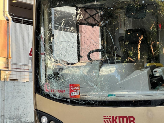 【點新聞報道】今(18日)早,一輛九巴途經石硤尾南昌街250號、往深水埗方向行駛時撞倒兩名過路女學生。救援人員接報到場,二人清醒腳受傷,經由救護車送往明愛醫院治理。現場可見,涉事九巴右邊車頭擋風玻璃現「蜘蛛網」狀裂痕。