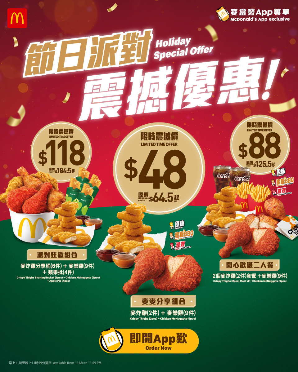 麥當勞推$48節日派對優惠 含2麥炸雞+9麥樂雞