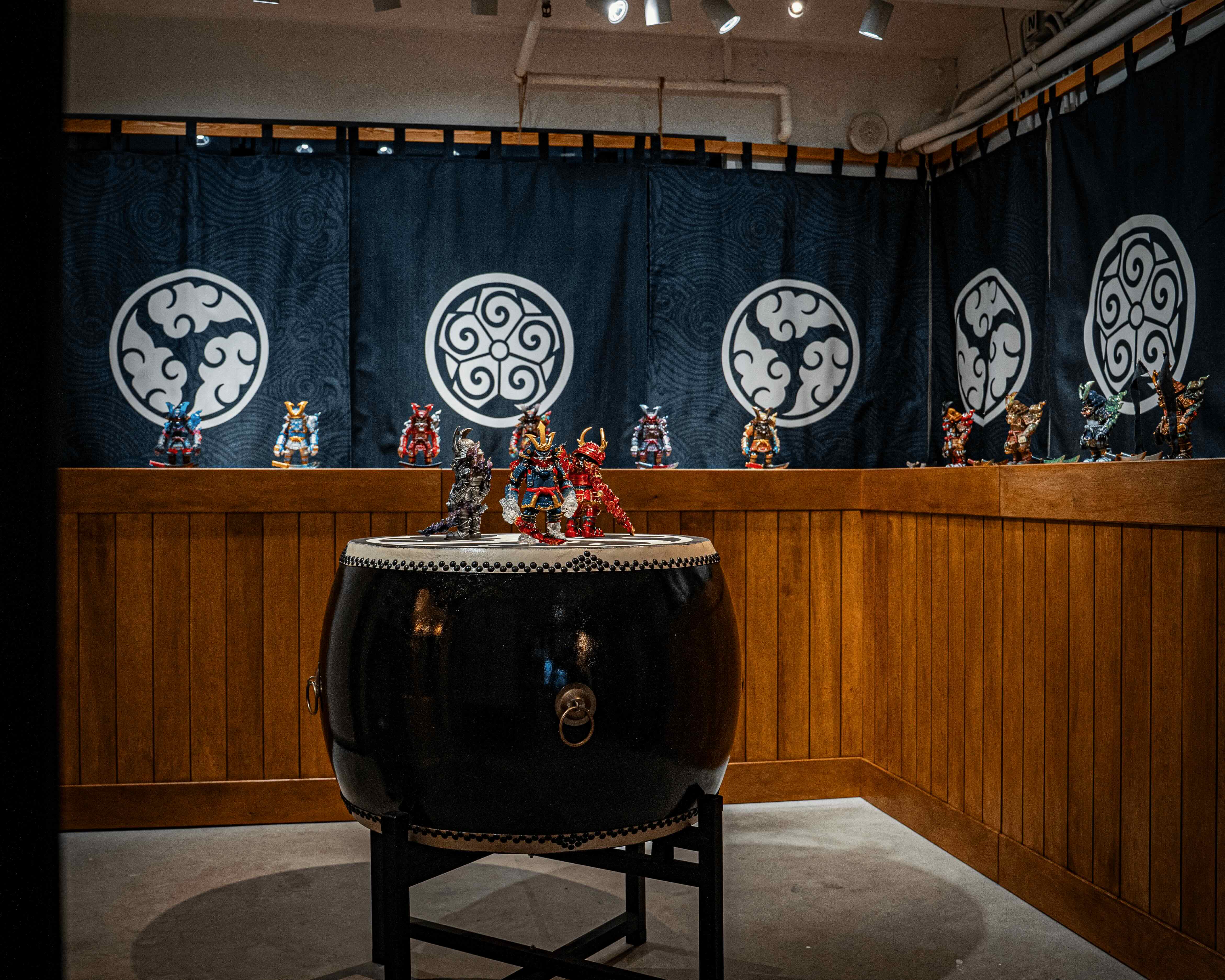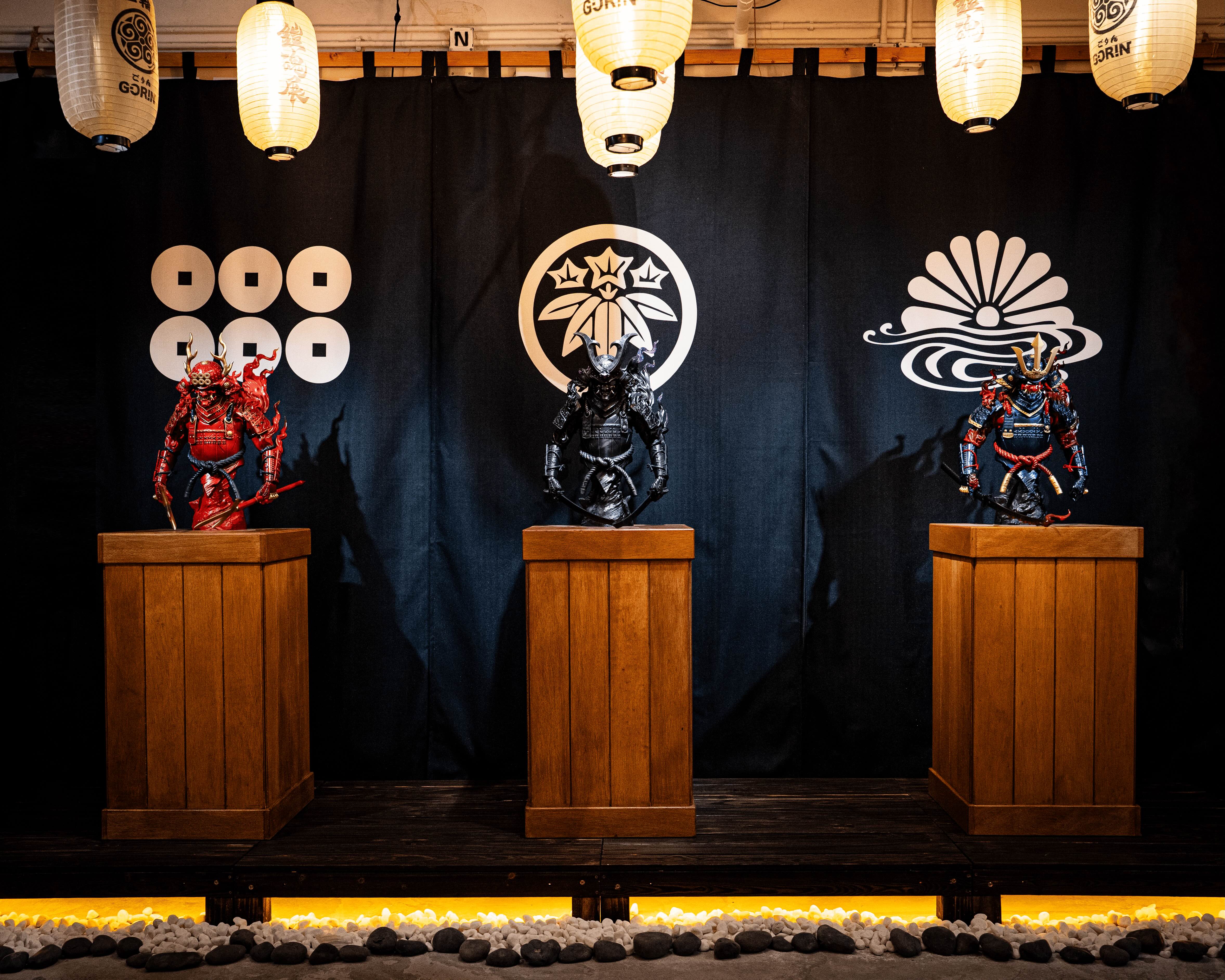 展覽設計出3款極具壓迫感的60CM大雕像,細膩刻畫武士鎧甲的厚重與靈魂的張力,3款雕像開放預訂。同場亦展示3款25CM的鎧魂軟膠公仔及4款25CM雕塑,讓觀眾能近距離欣賞不同材質的雕塑。現場更展出多幅原創畫作,透過平面藝術進一步完整《五輪》的世界觀。展場同時打造沉浸式的日式場景,運用日本戰國時代的日式燈籠、黑布、家紋、漢字書法及木器具等元素,加上陳列精緻的盔甲與旗幟,重現肅穆莊嚴的戰國氣息,營造濃厚的歷史感,讓入場觀眾更能投入《五輪》的世界,彷彿穿越時空感受獨有的悲壯美學與鎧魂氣勢。
