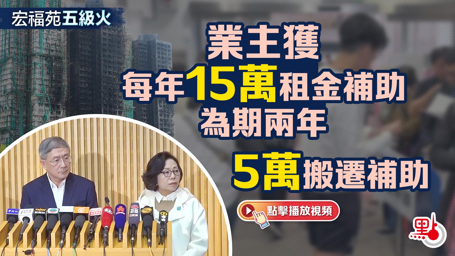 卓永興表示,政府將給宏福苑居民提供租金補助和搬遷補助。下周一(12月22日)起,會向業主發放每年15萬租金補助,為期兩年,以及一次性5萬元搬遷補助。至於租戶,政府也會提供一次性5萬元的搬遷補助。