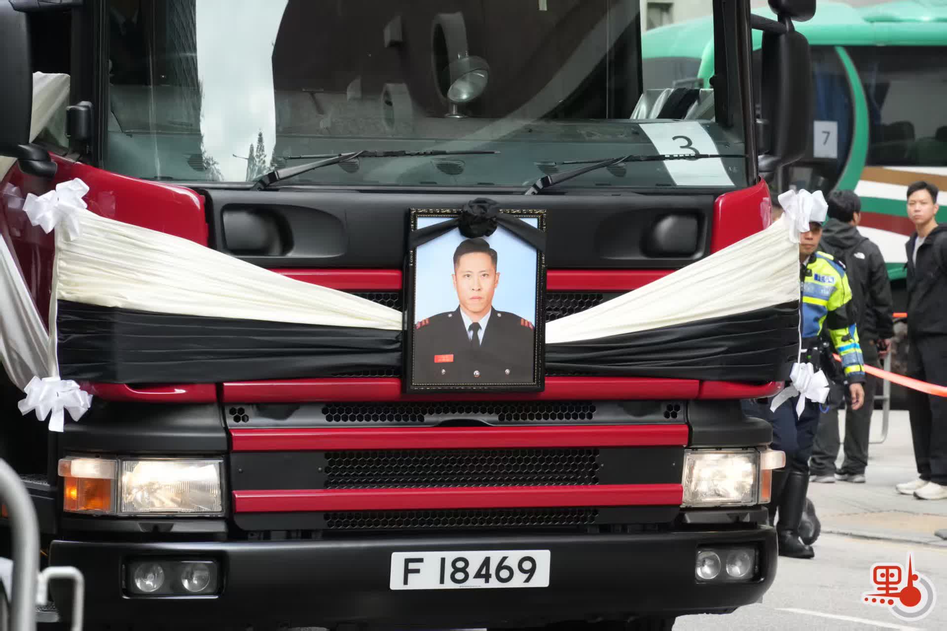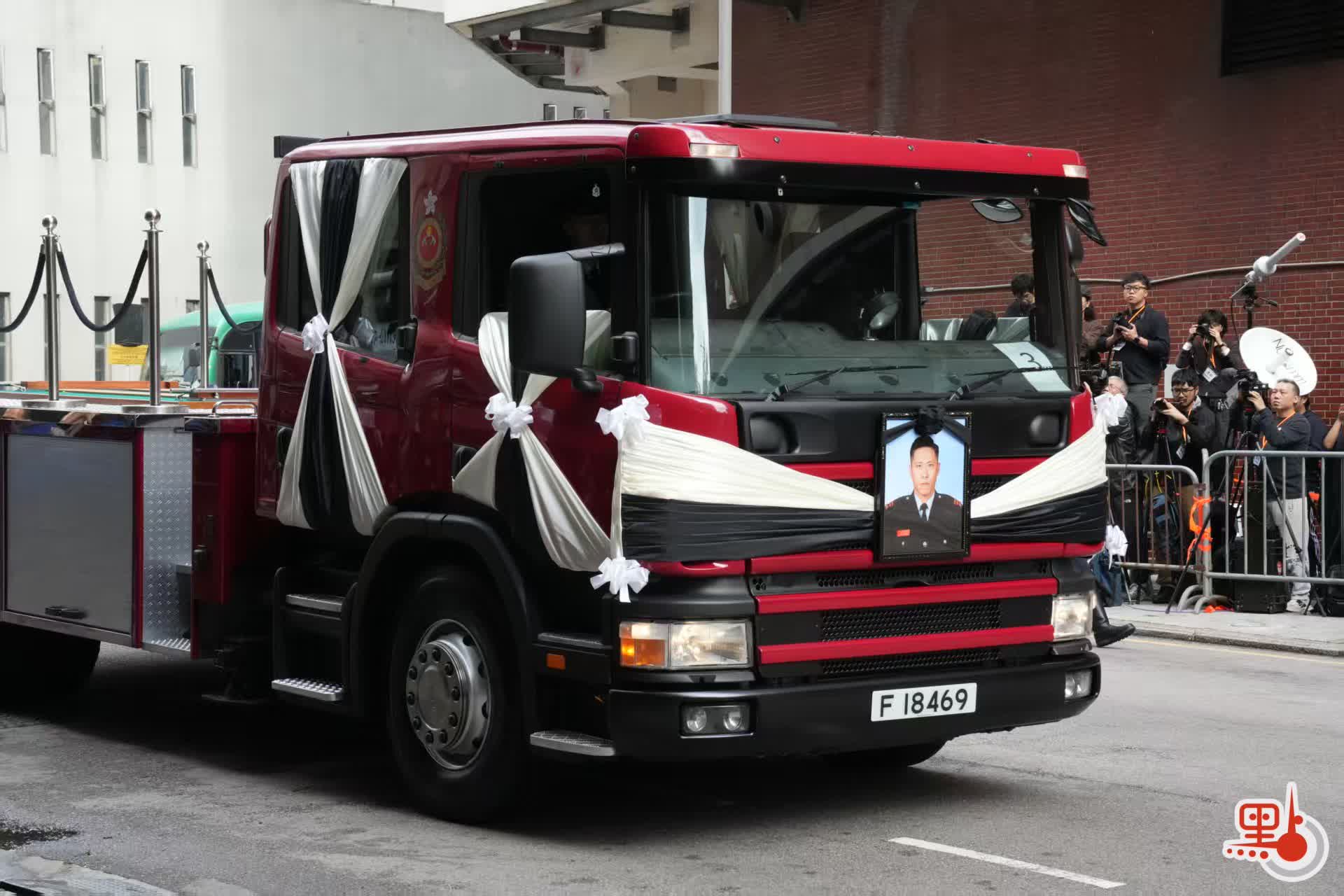 【點新聞報道】大埔宏福苑11月26日發生五級大火,造成嚴重傷亡。於滅火行動中不幸殉職的37歲消防員何偉豪,昨日(18日)於紅磡世界殯儀館設靈,消防處今日(19日)為何偉豪舉行最高榮譽喪禮。官方儀式會在位於地下的靈堂內及殯儀館外舉行,喪禮儀式後,靈車離開殯儀館,會路經大埔太和路、寶鄉街、廣福道和大埔公路元洲仔段,抵達大埔宏福苑進行路祭,之後再前往沙田消防局,由消防處處長楊恩健帶領消防人員列隊致最後敬禮,靈柩之後移送浩園安葬。