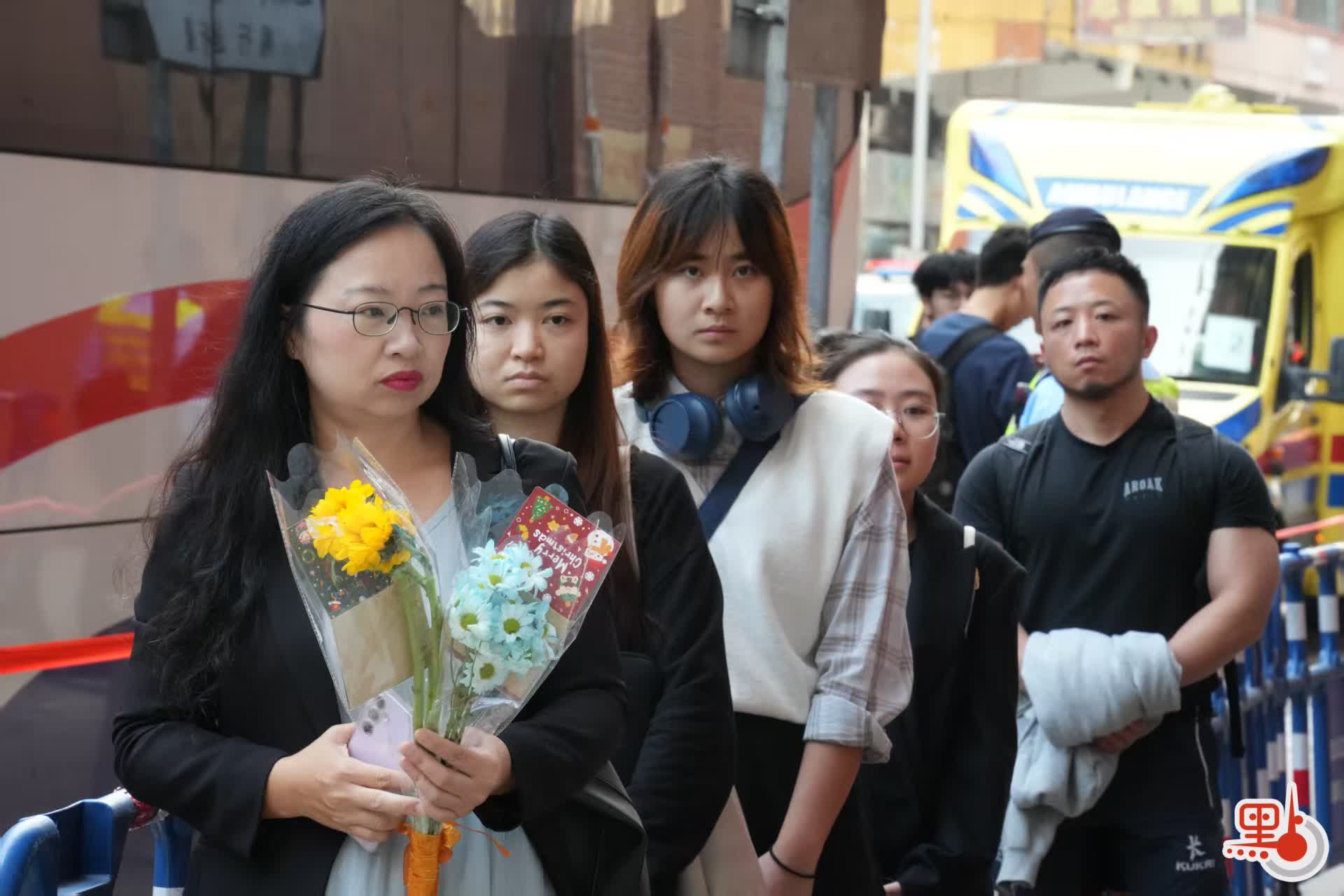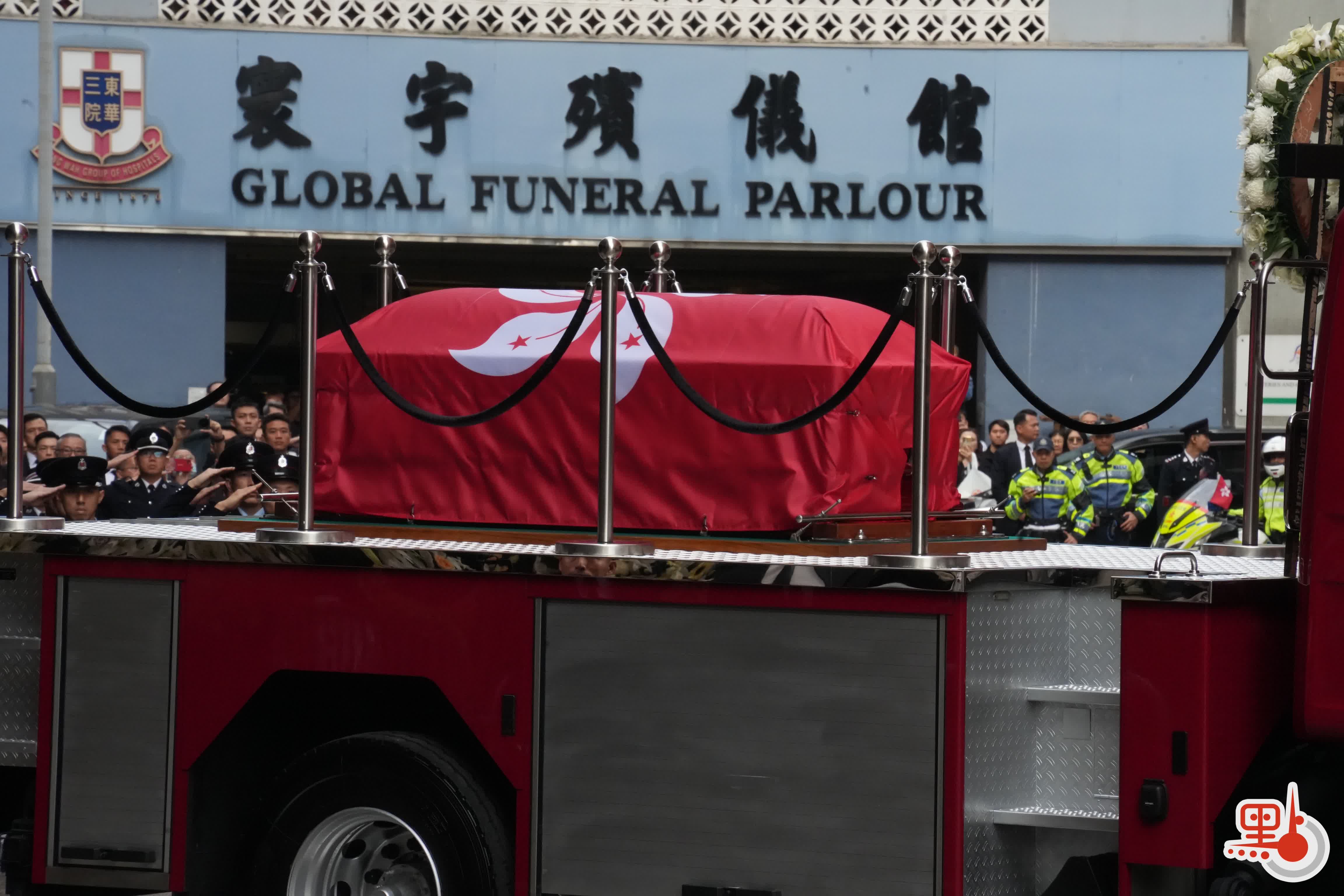 (有片+多圖)宏福苑五級火︱靈車離開殯儀館 市民獻花寫祝福送別英雄