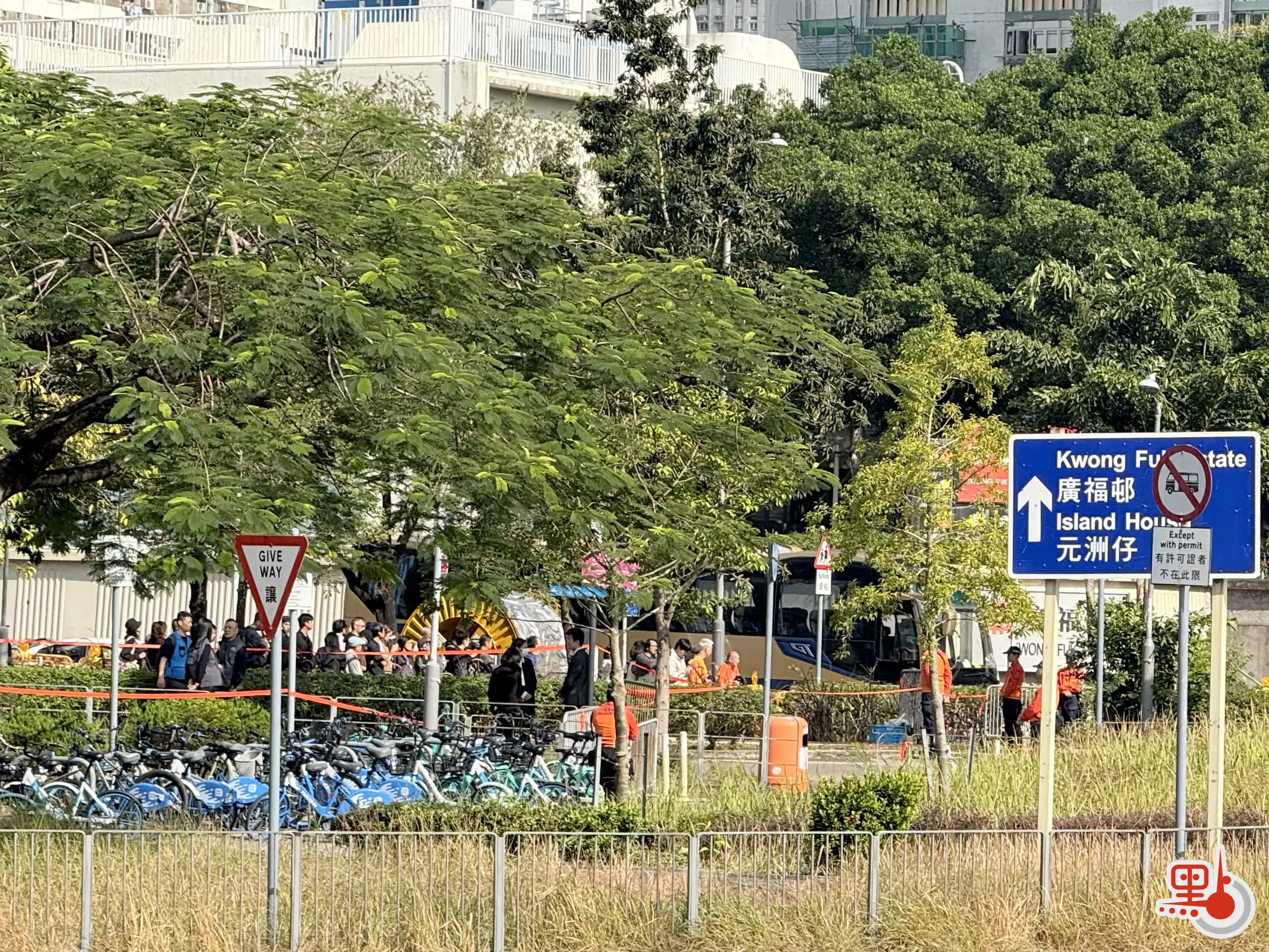 上午10時許,點新聞記者現場看到,宏福苑馬路對開的行人道、附近天橋上有眾多市民到場,等候何偉豪路祭儀式,許多市民在街道兩旁送別英雄何偉豪。