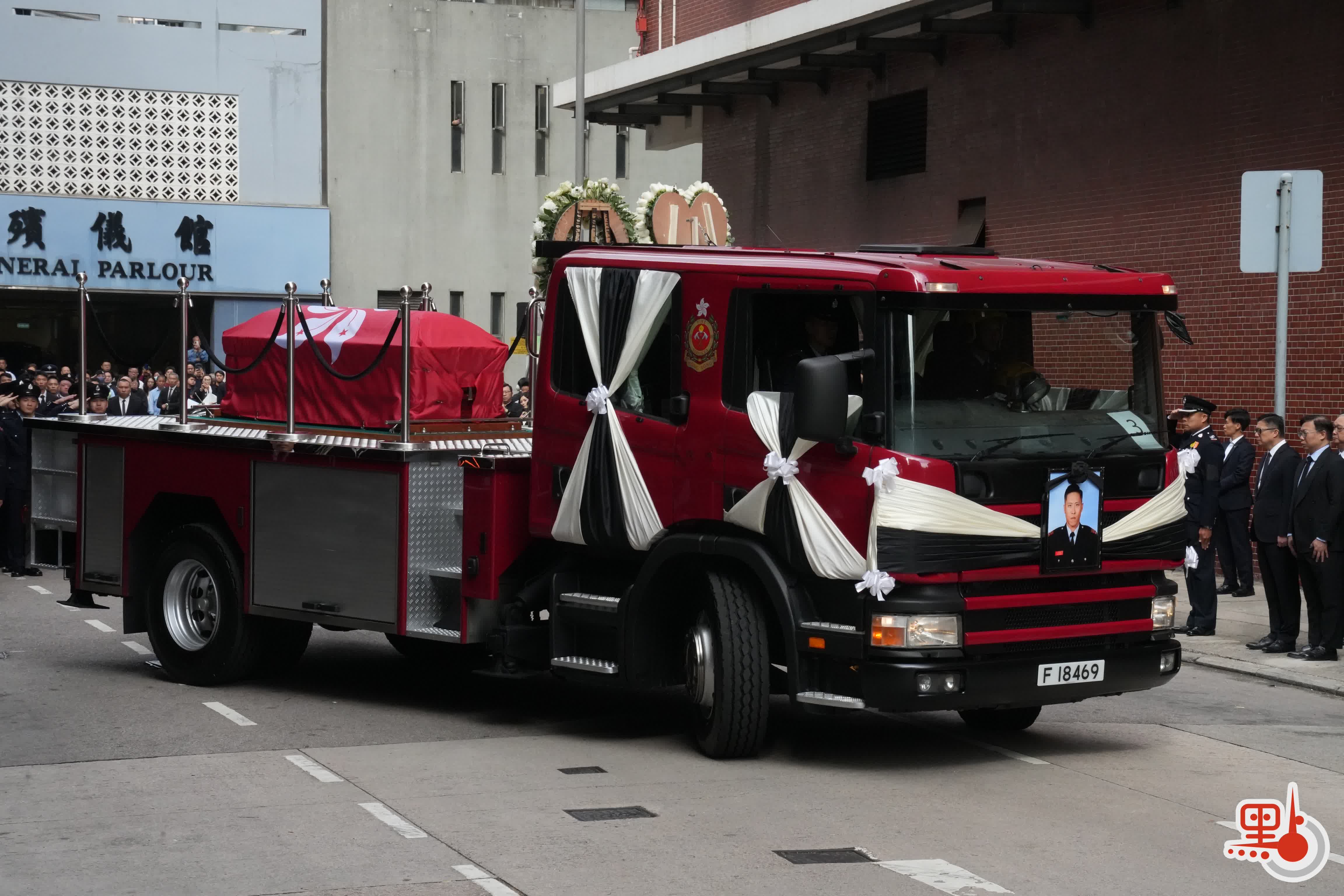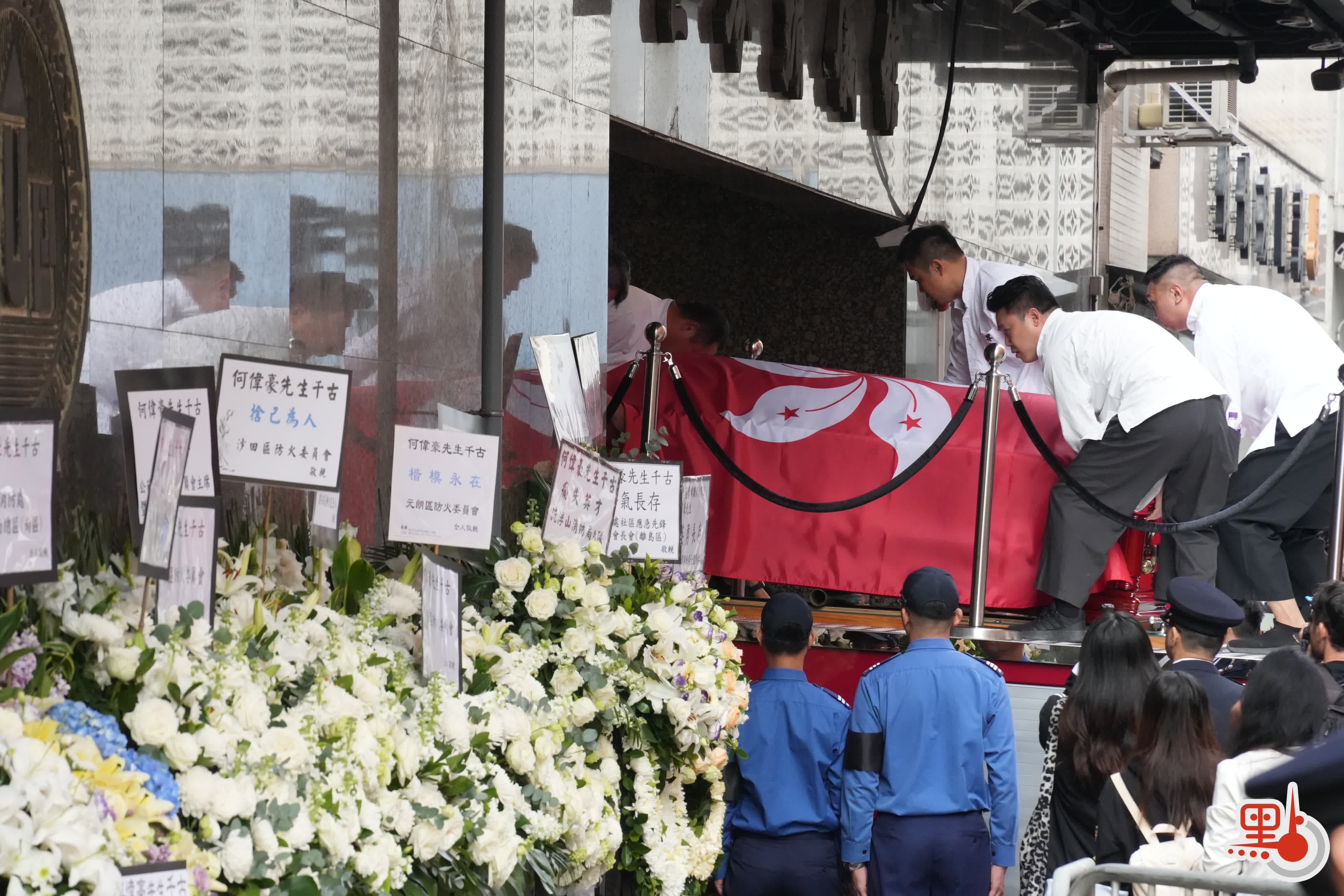 【點新聞報道】大埔宏福苑11月26日發生五級大火,造成嚴重傷亡。於滅火行動中不幸殉職的37歲消防員何偉豪,昨日(18日)於紅磡世界殯儀館設靈,消防處今日(19日)為何偉豪舉行最高榮譽喪禮。