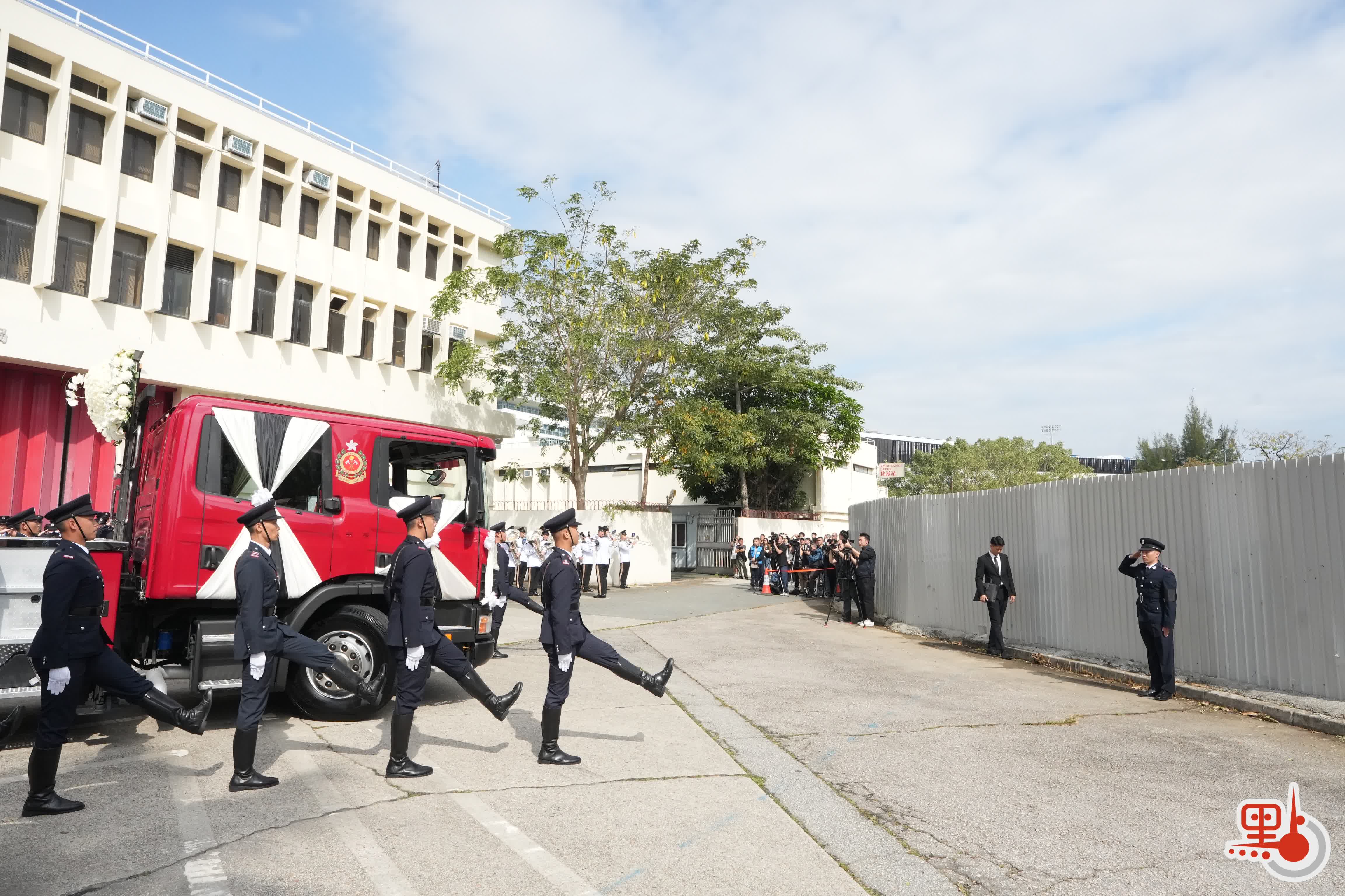 (有片+多圖)宏福苑五級火︱靈車到達沙田消防局 楊恩健帶隊致最後敬禮