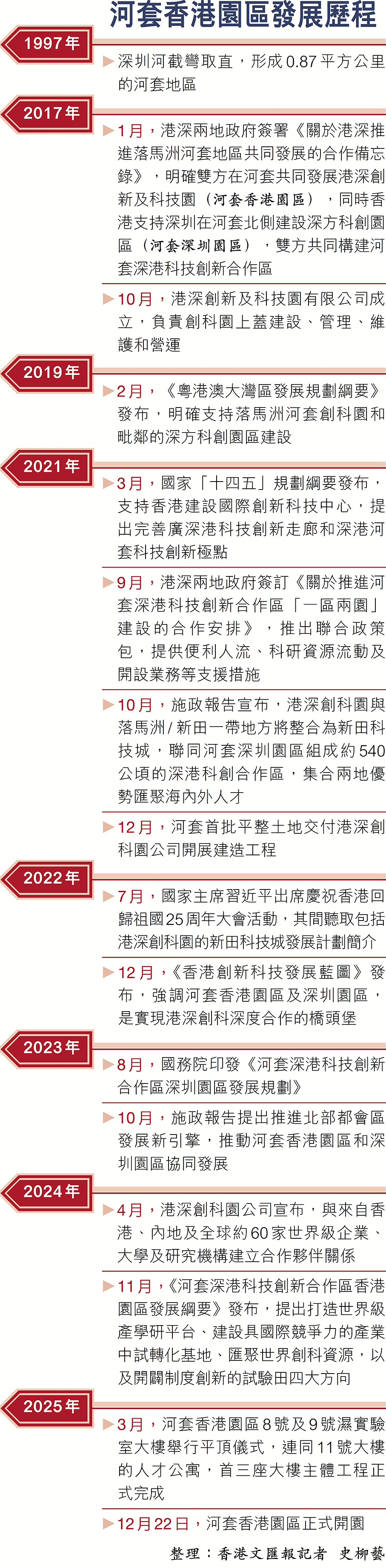 他強調,河套香港園區作為「特區中的特區」,兼具「一國兩制」的制度優勢及「國內境外」的獨特條件,是政策創新與試驗改革的最佳地點,特區政府會善用香港與國際接軌的優勢,推動及優化匯聚全球創科資源和人才的措施,提升園區國際吸引力和發展活力。