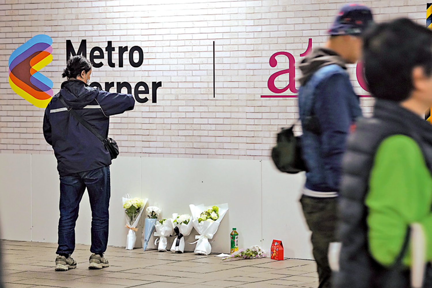 ·一名57歲男子上前試圖阻止,遭長刀刺傷後被迫退開。附近民眾驚慌奔逃。