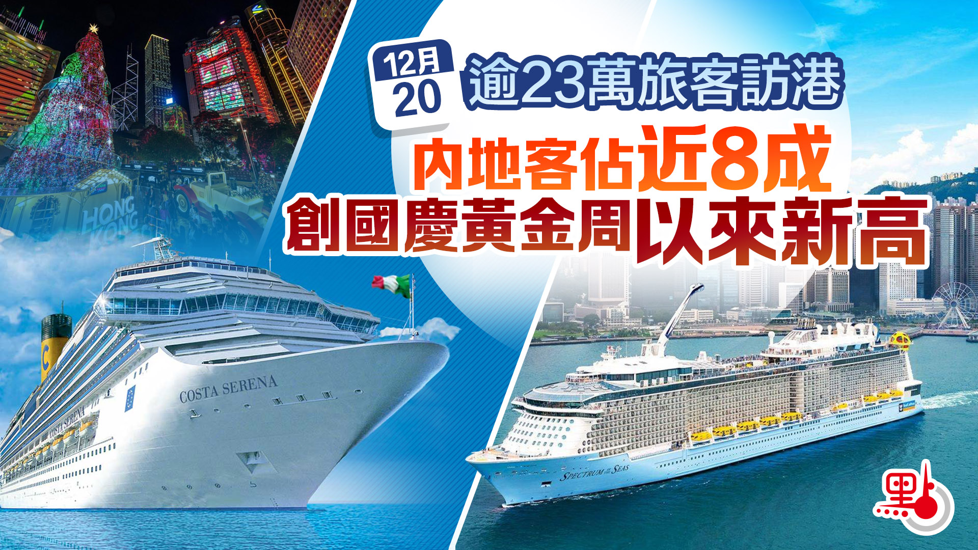 同時,啟德郵輪碼頭在19日迎來兩艘國際郵輪同日停泊,進一步帶動郵輪旅客來港。本港同時有連串活動上演:包括旅發局於中環舉辦的「冬日小鎮・中環」及「光影匯・中環」,西九文化區亦有巨型夢幻充氣樂園、聖誕小鎮等大型節日活動,配合各區燈飾、商場主題布置等,為市民和旅客提供多元活動。