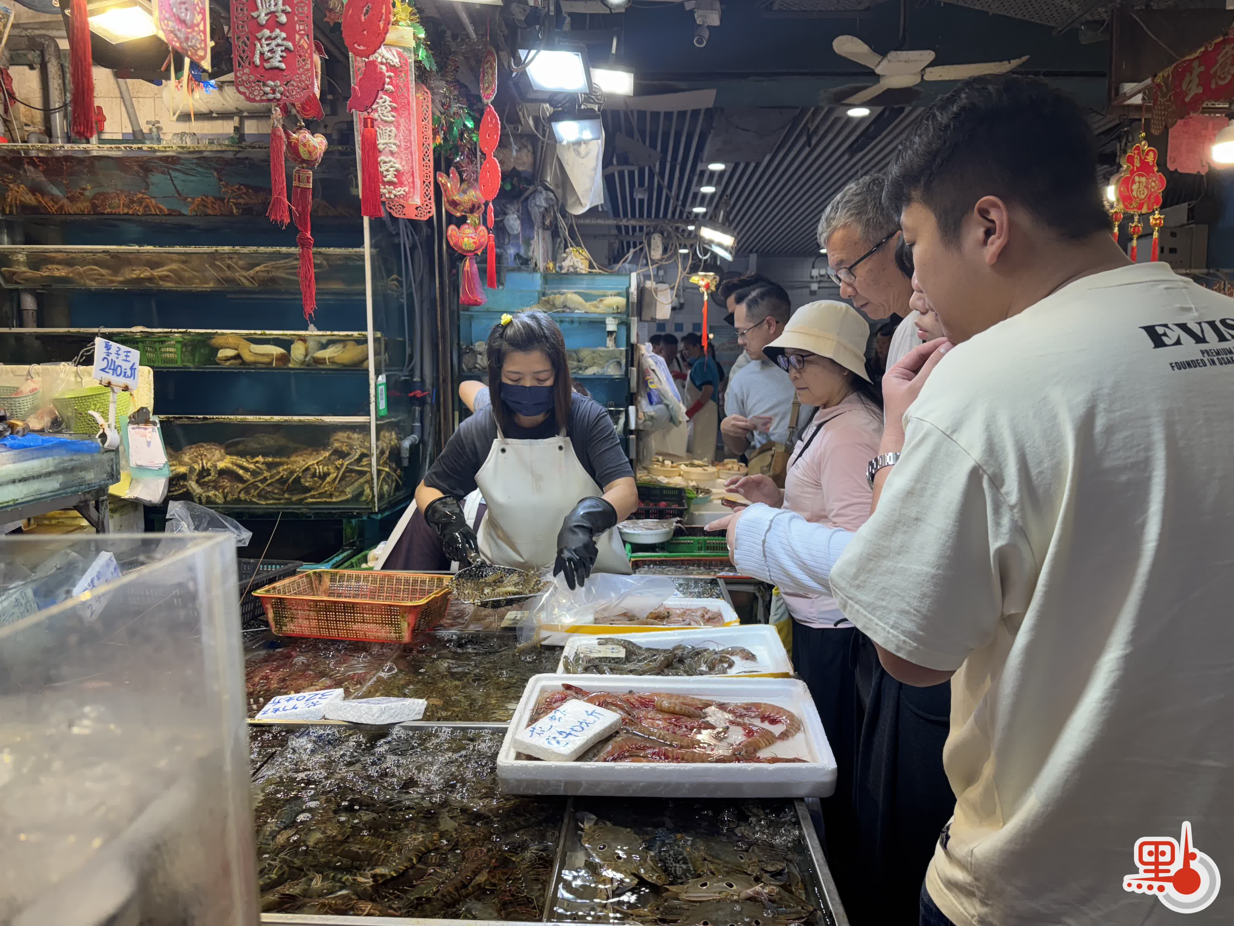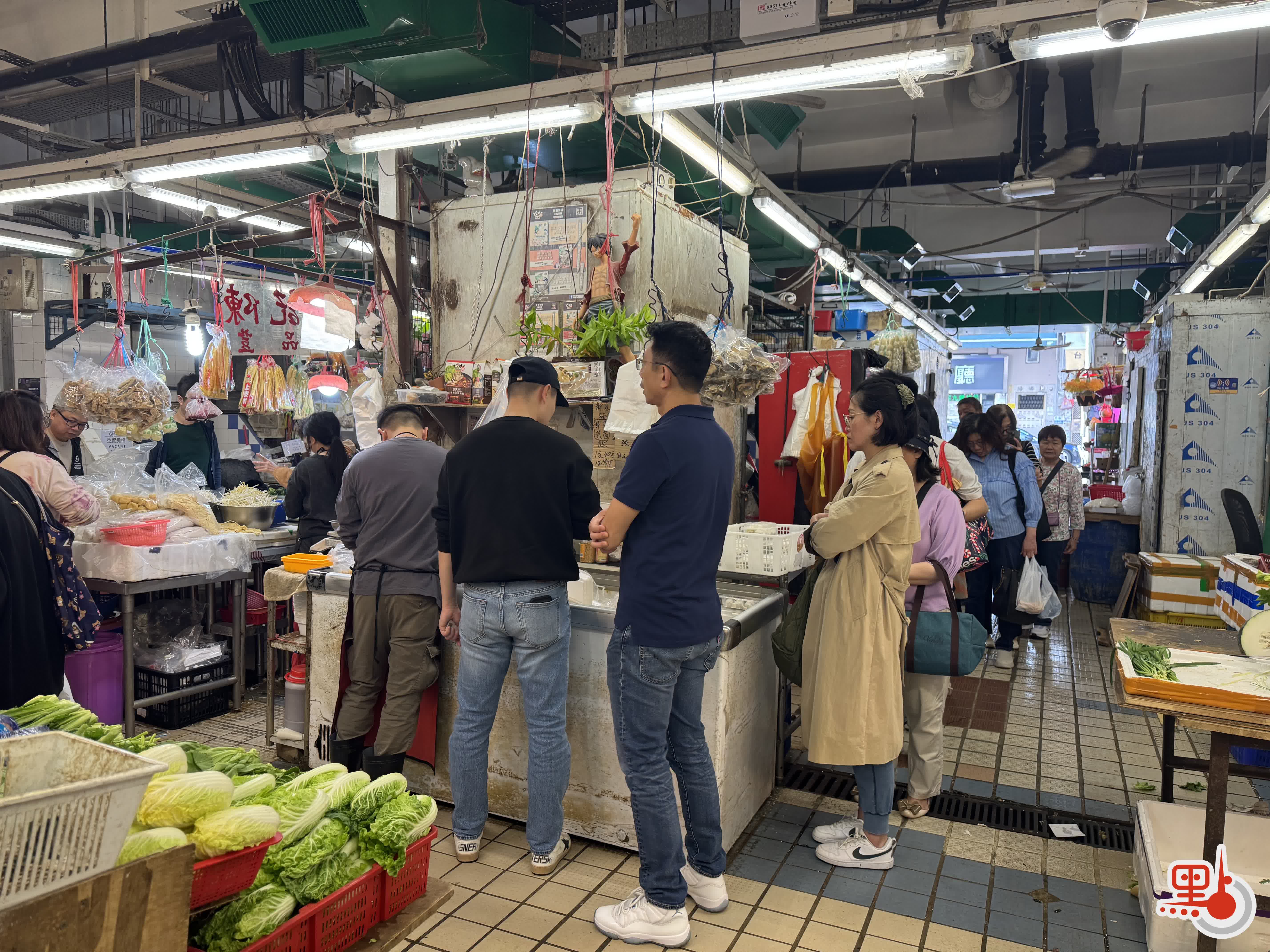 記者剛走進九龍城街市,發現靠近出入口的攤檔生意興隆,客人絡繹不絕,有的甚至排起了長龍,隊伍繞過轉角。