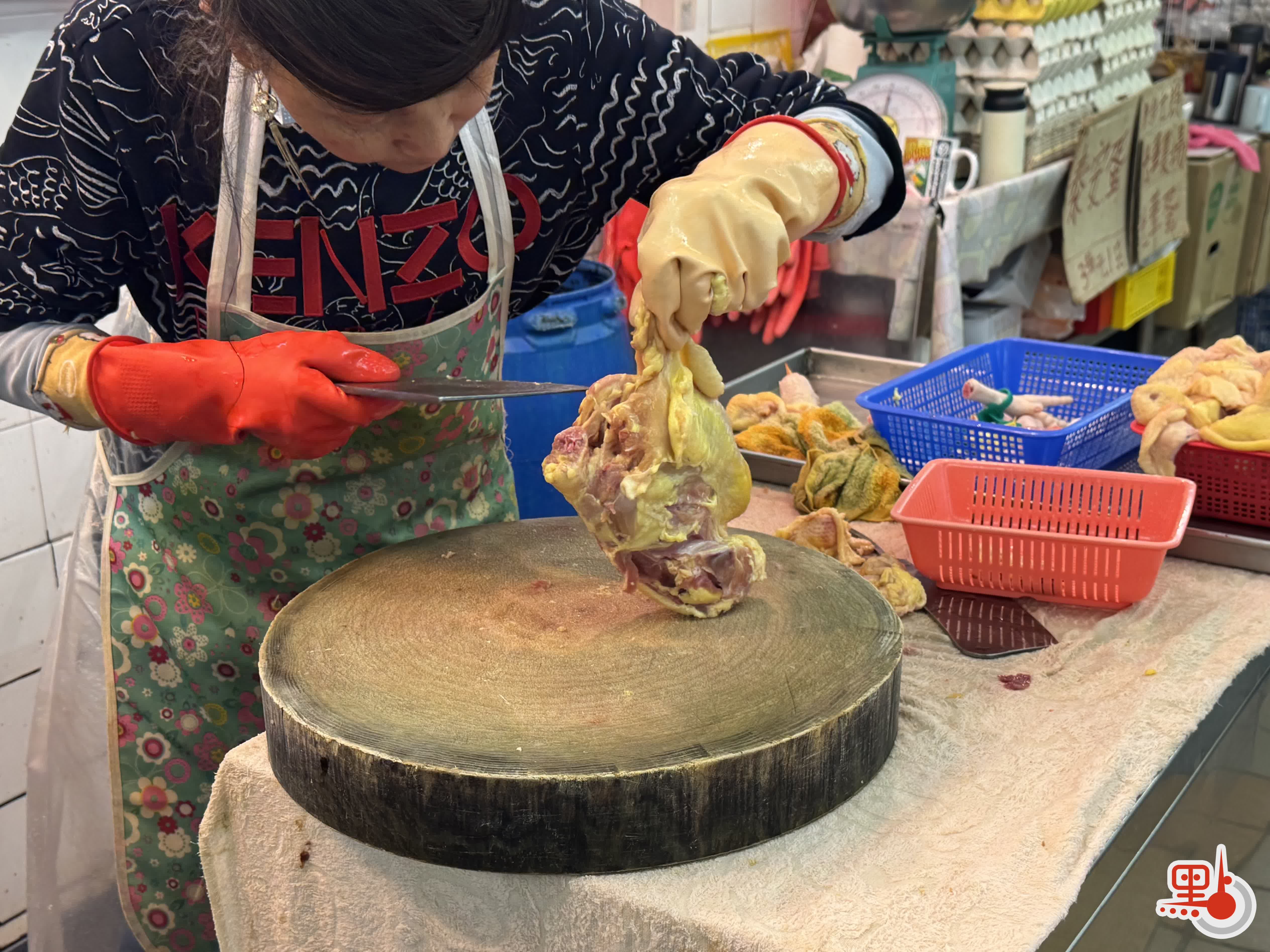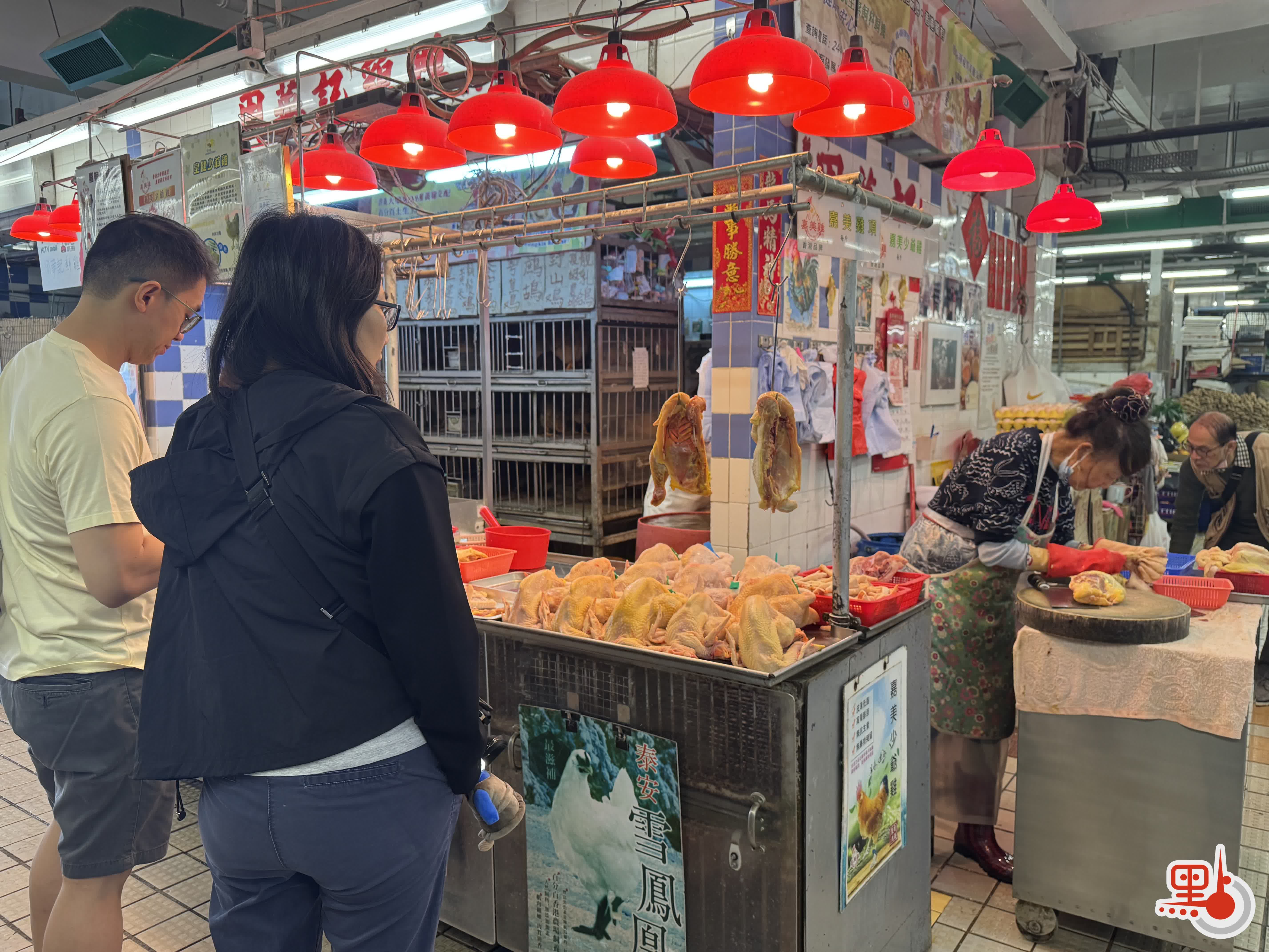 主打賣雞的周華記攤檔前不時有客人駐足,檔戶玲姐表示,今日冬至的生意比平日好一些,有點過節的氣氛,價格亦比平日稍貴。不過,該攤檔已開超過30年,她表示與往年相比,今年的生意並不算太好,因為許多人已放假出去玩。