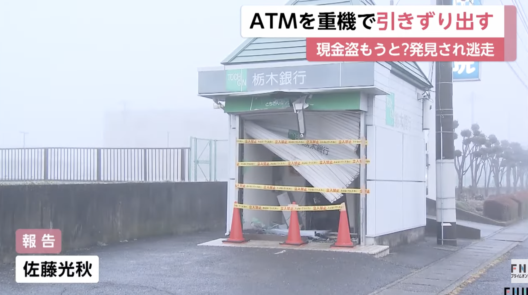 日本栃木縣銀行竊案 歹徒動用挖掘機破壞ATM事敗逃逸