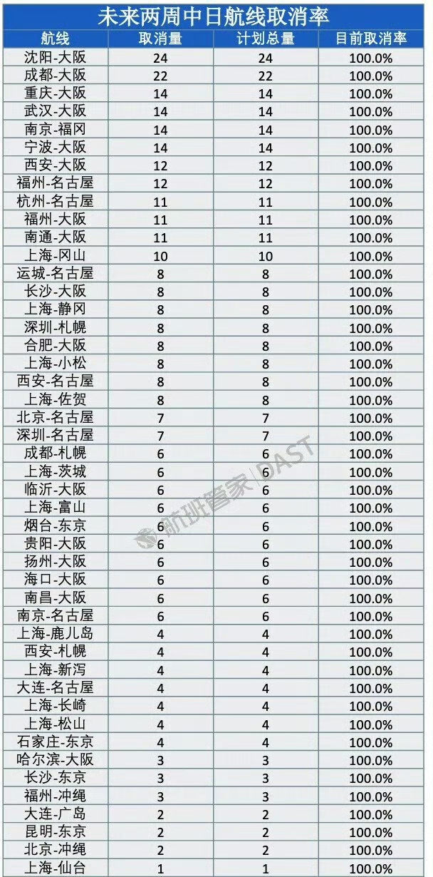 據《新京報》報道指,上海浦東及虹橋兩機場共有14條航線取消,成為取消航線最密集的城市;大阪關西機場則成為「重災區」,超過10條航線停飛。日前,國航、東航、南航、春秋航空、吉祥航空等多家航空公司已陸續公布相關航線的退改簽政策。據估計,僅已取消的2195個班次就將影響超過44萬人次的出行計劃,退票高峰預計將持續至12月底。