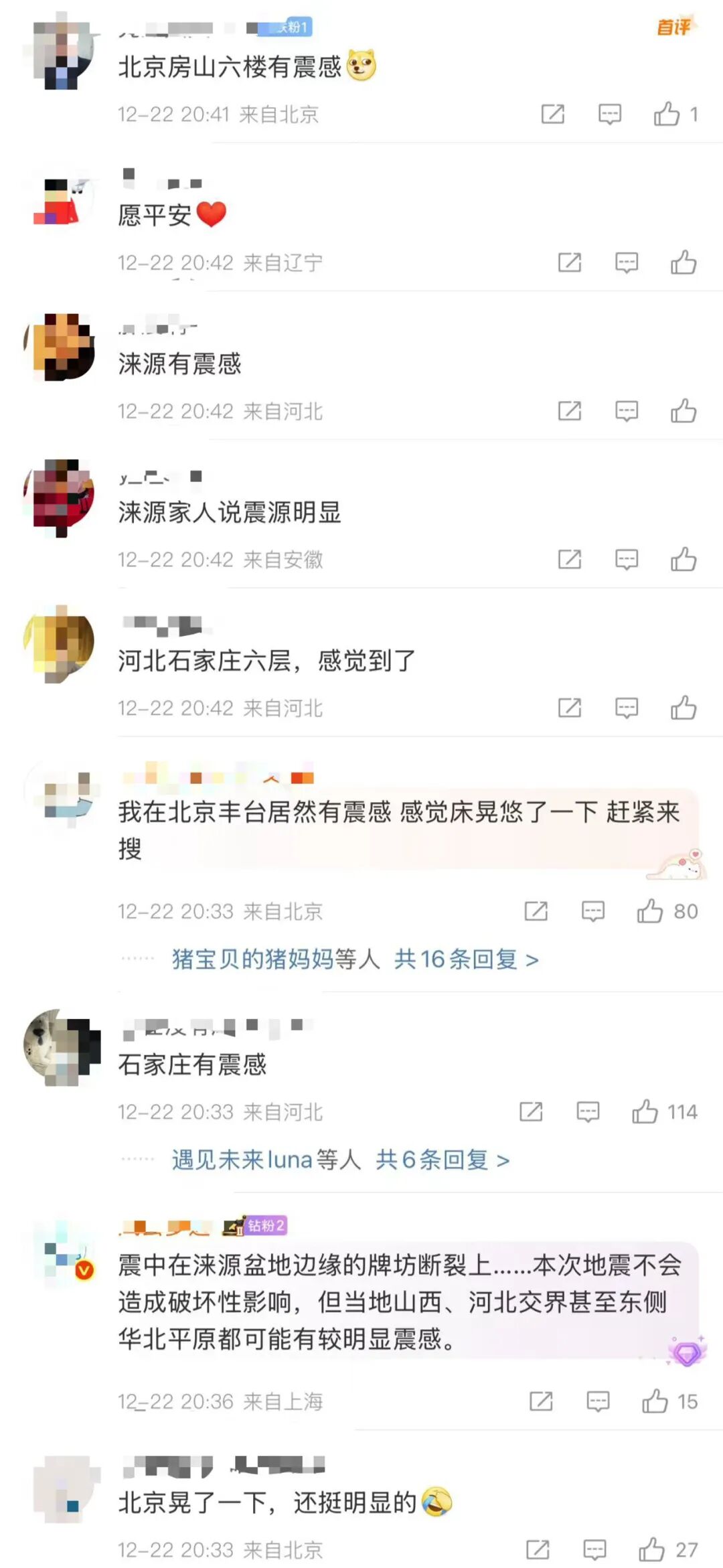 【點新聞報道】據中國地震台網正式測定,12月22日20時31分在山西大同市靈丘縣發生4.2級地震,震源深度8公里,震中位於北緯39.32度,東經114.39度。北京、河北石家莊等地網友表示震感明顯。