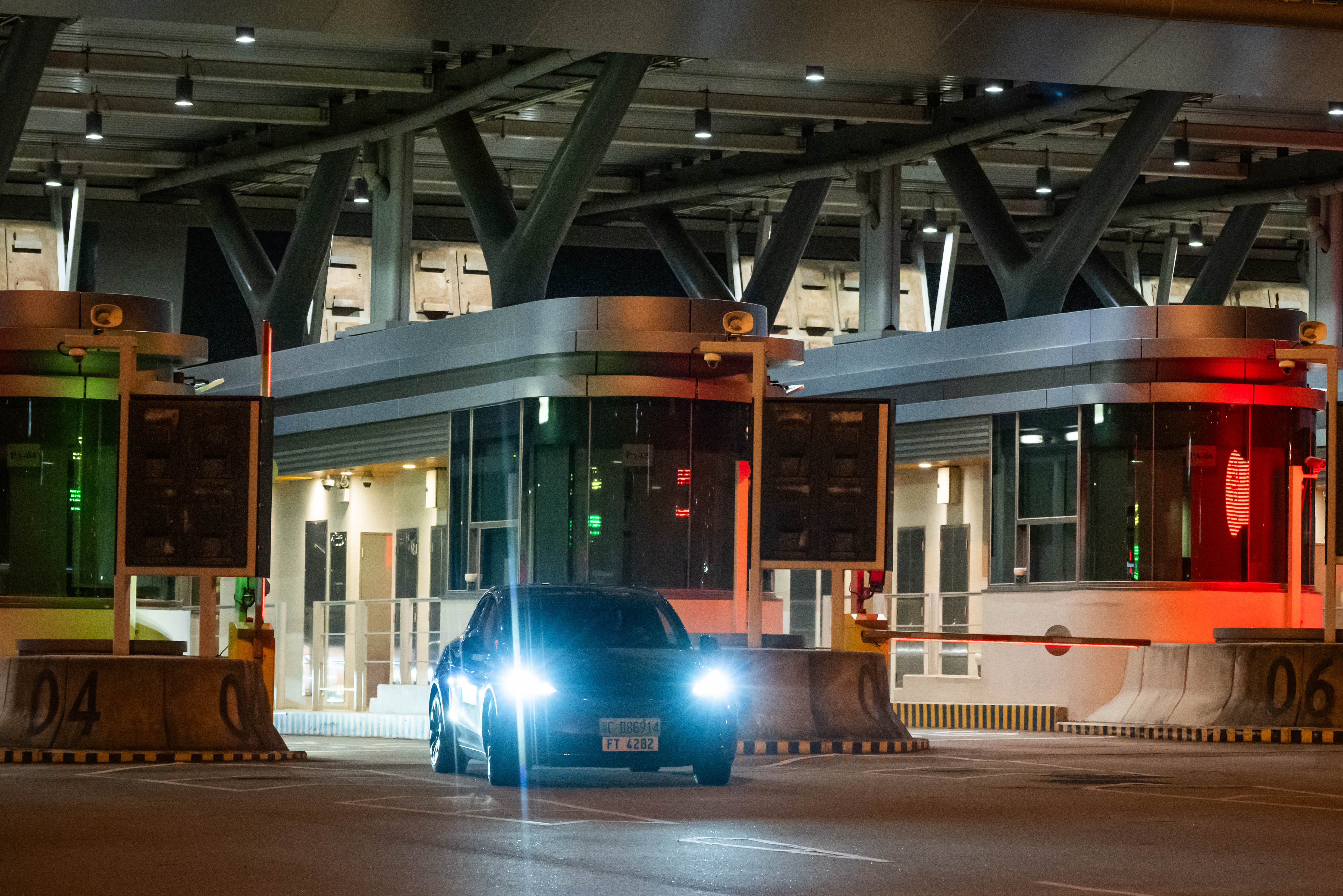 該架灰色車輛同時掛有「FT4282」及「粵CD86914」兩個車牌。車主彭先生本身經商,因業務往來需時常往返香港等地。他提到,大橋行車大概40分鐘,抵港後的安檢非常便捷和順暢。