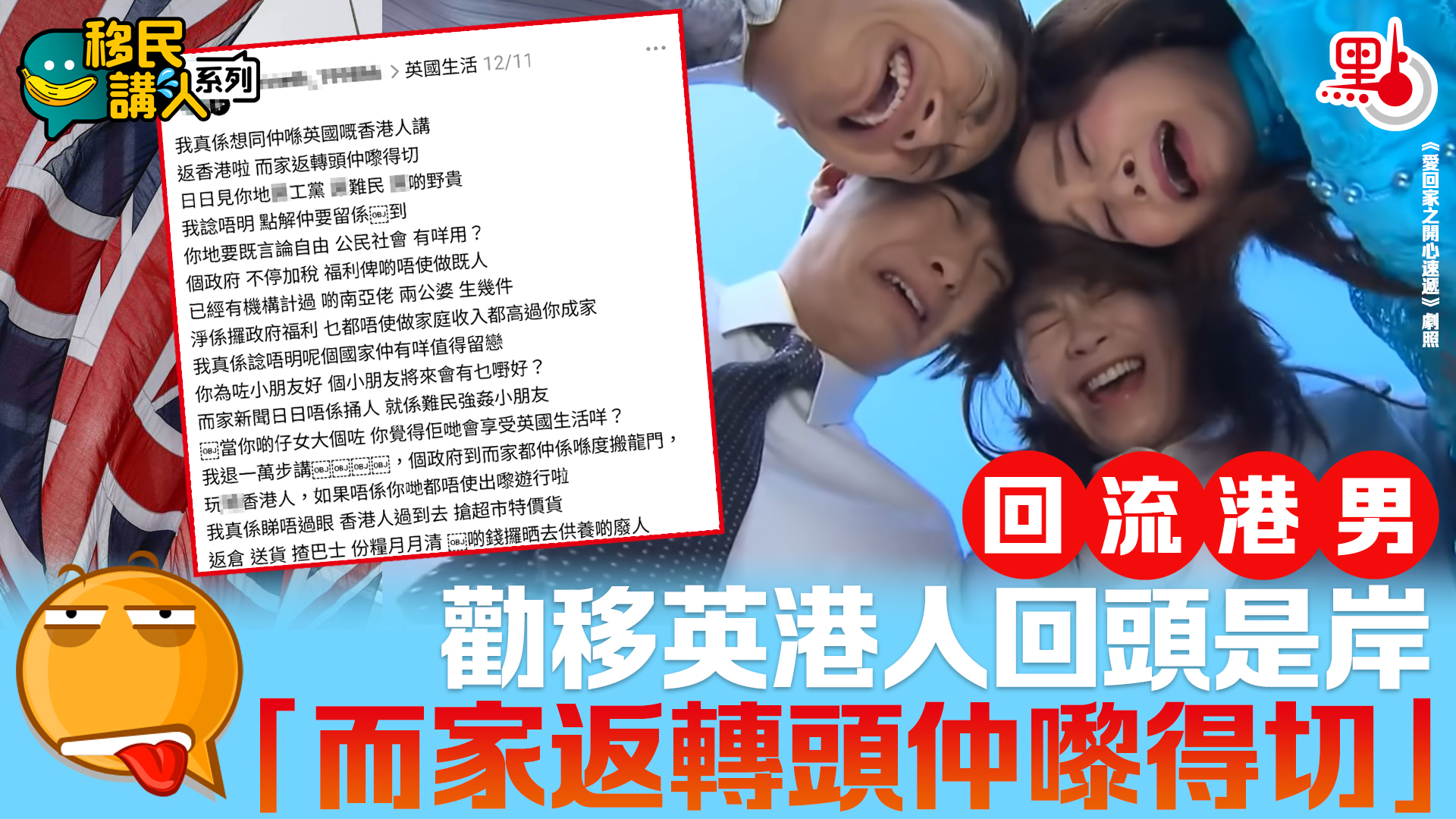 【點新聞報道】不少移民英國的港人成日在網上日呻夜呻,話英國嗰樣唔好依樣唔掂。一名慶幸已回流的港男發文向仍在英國嘅香港人講:「返香港啦,而家返轉頭仲嚟得切」。樓主直言睇唔過眼,「香港人過到去,搶超市特價貨,返倉、送貨、揸巴士、份糧月月清、啲錢攞晒去供養啲廢人」,直指「諗唔明仲有咩值得留戀」。