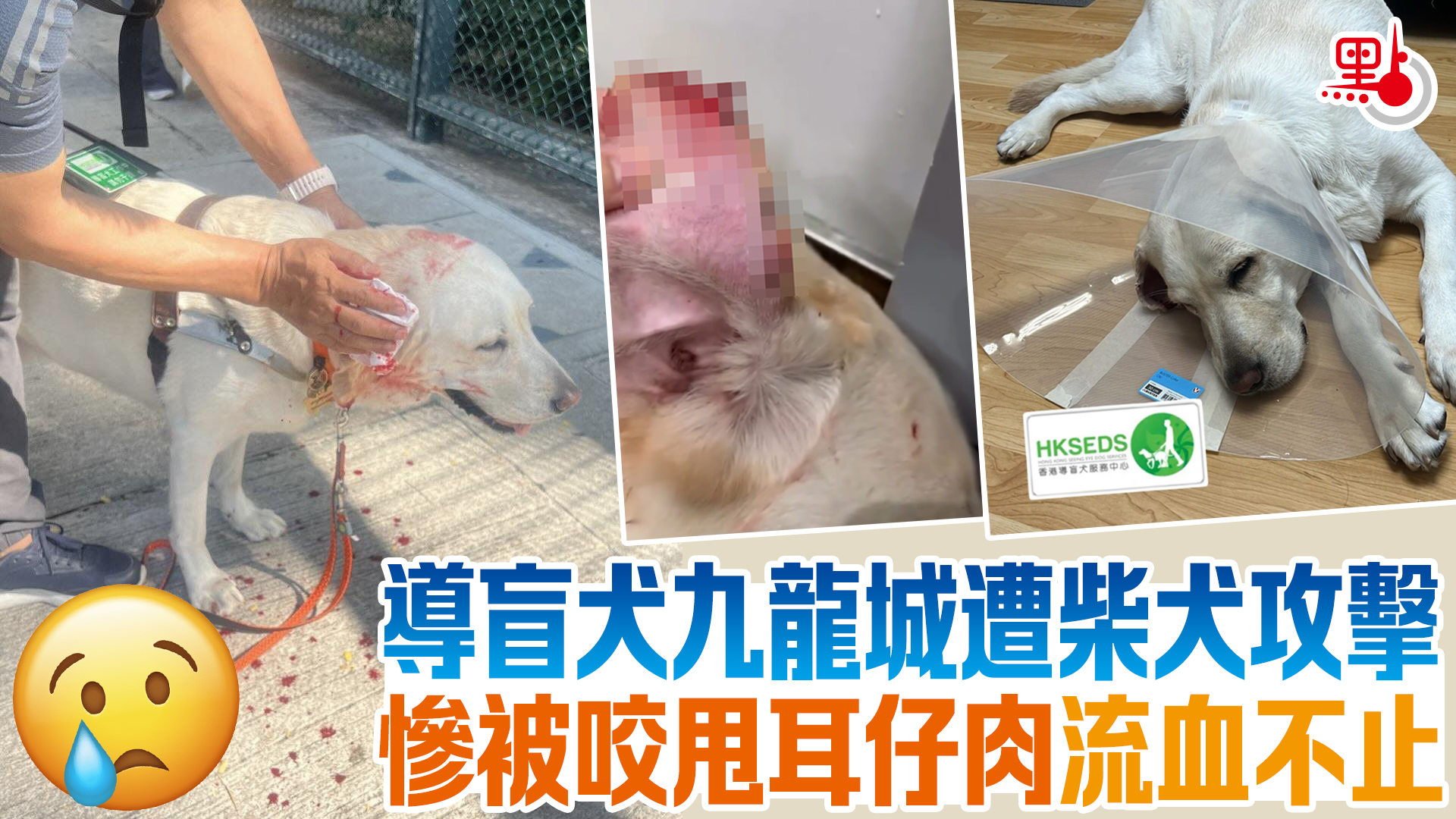 導盲犬九龍城遭柴犬攻擊 慘被咬甩耳仔肉流血不止