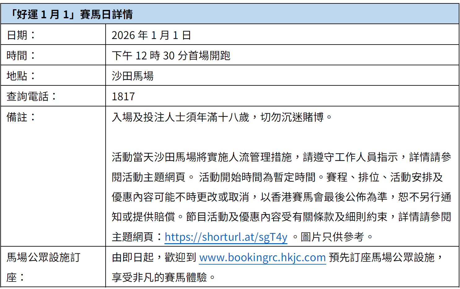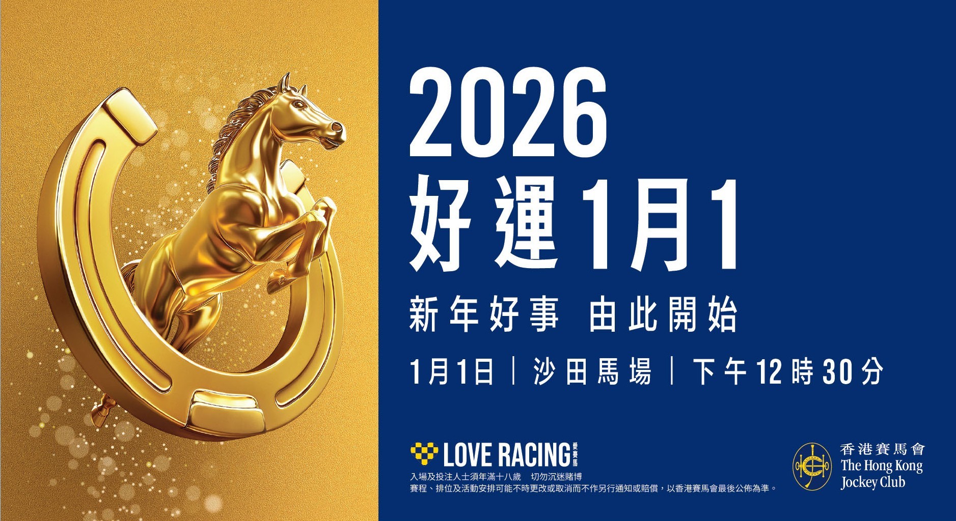 【點新聞報道】香港賽馬會將於2026年1月1日在沙田馬場舉行「好運1月1」賽馬日,為各位市民送上溫馨祝福,共迎新一年新氣象。當日除可大玩有獎遊戲、品嘗美食佳餚,沉浸於熱鬧氣氛,更能親身觀賞緊張刺激的賽事,共度新歲首日!大會精心準備了「馬場開運一日遊全攻略」,更設有高達1.28億港元的「元旦好運大賞」,為大家呈獻「2026年馬場開運之旅」,新年好事,由此開始!