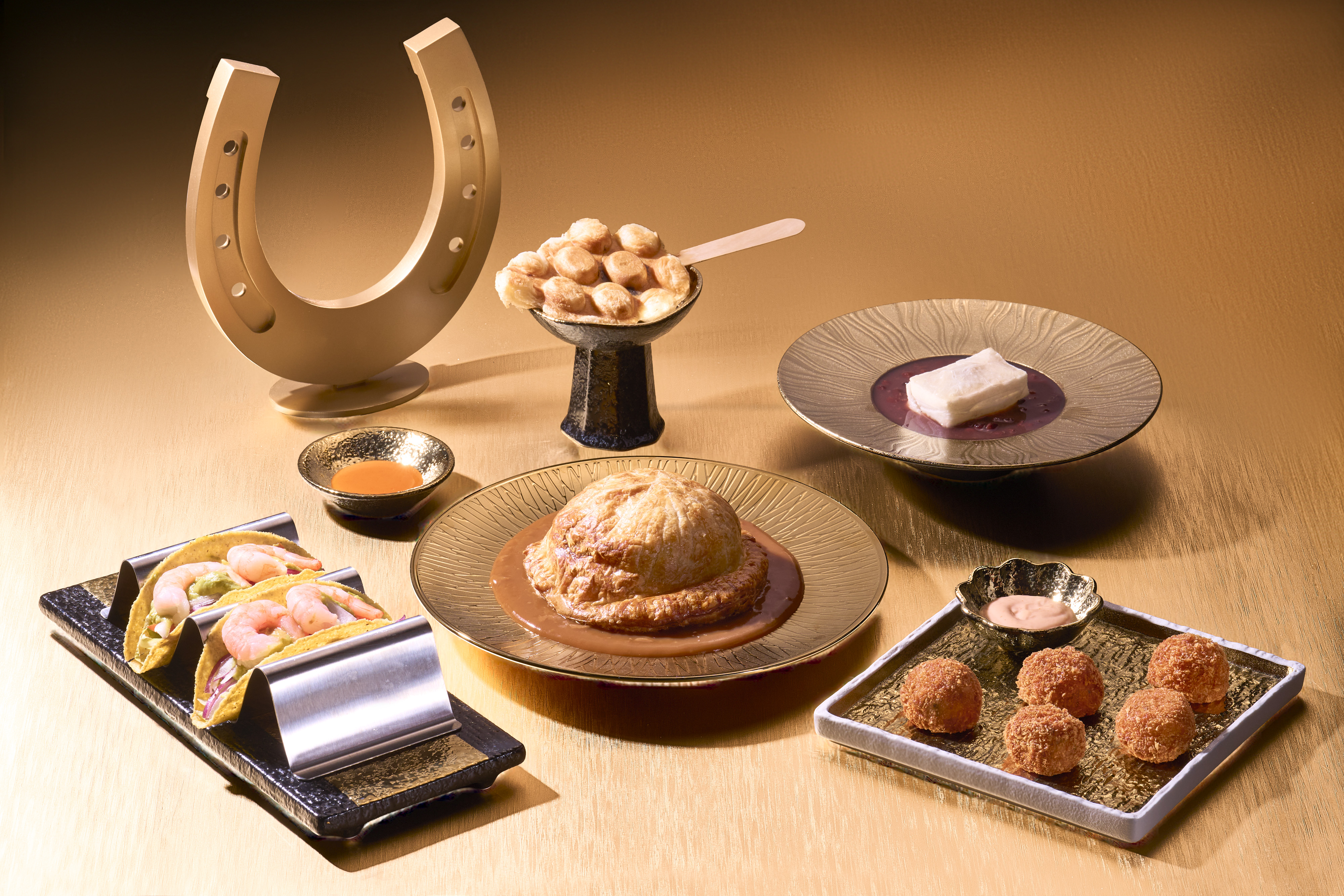 食客可到公眾投注大堂2號場畔小食亭一次過品嘗多款餐飲美饌,包括金福蟹肉球、合家歡威靈頓及發財香蝦玉米餅等美食。