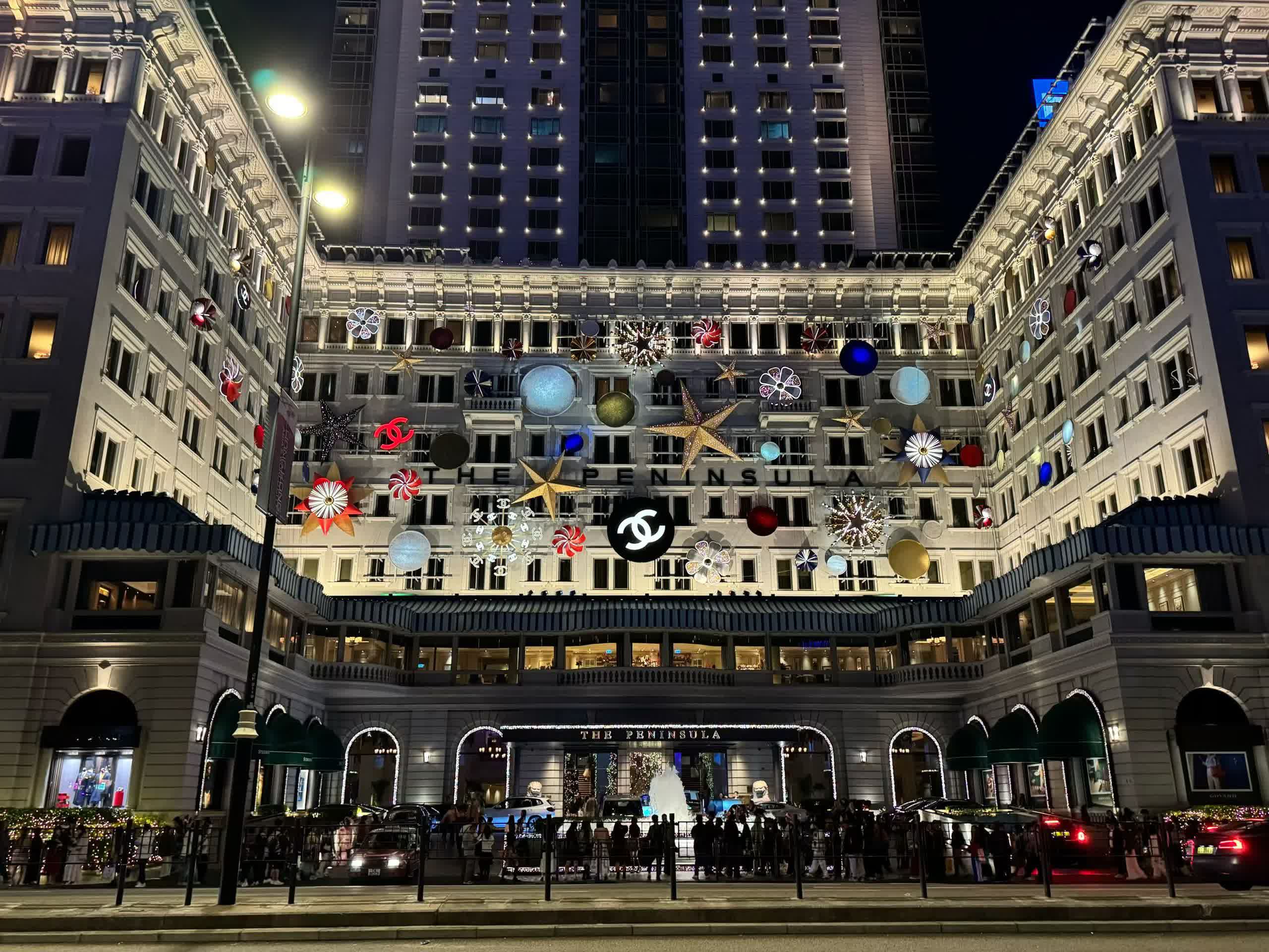 香港半島酒店與CHANEL聯名外牆燈飾自2021年起合作至今,每年主題不同,是維港邊最受歡迎的節慶打卡地標之一。不要錯過室內聖誕樹!