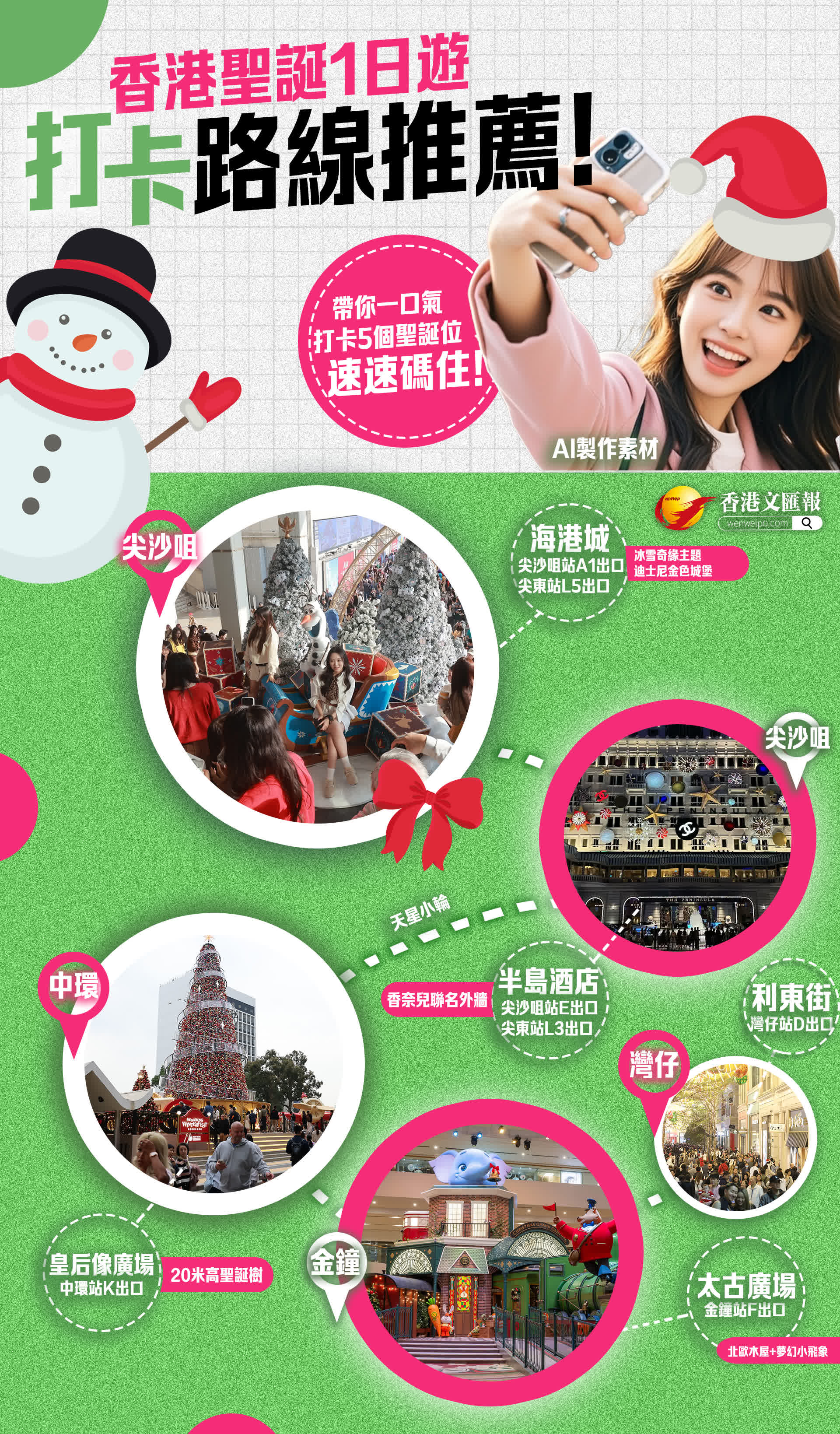 今天(12月24日)是平安夜,全港各區聖誕氛圍百分百,從中環巨型聖誕樹到灣仔利東街飄雪嘉年華,海港城、太古城等節日打卡點各有千秋。下面帶你一口氣打卡5個聖誕機位,速速碼住!