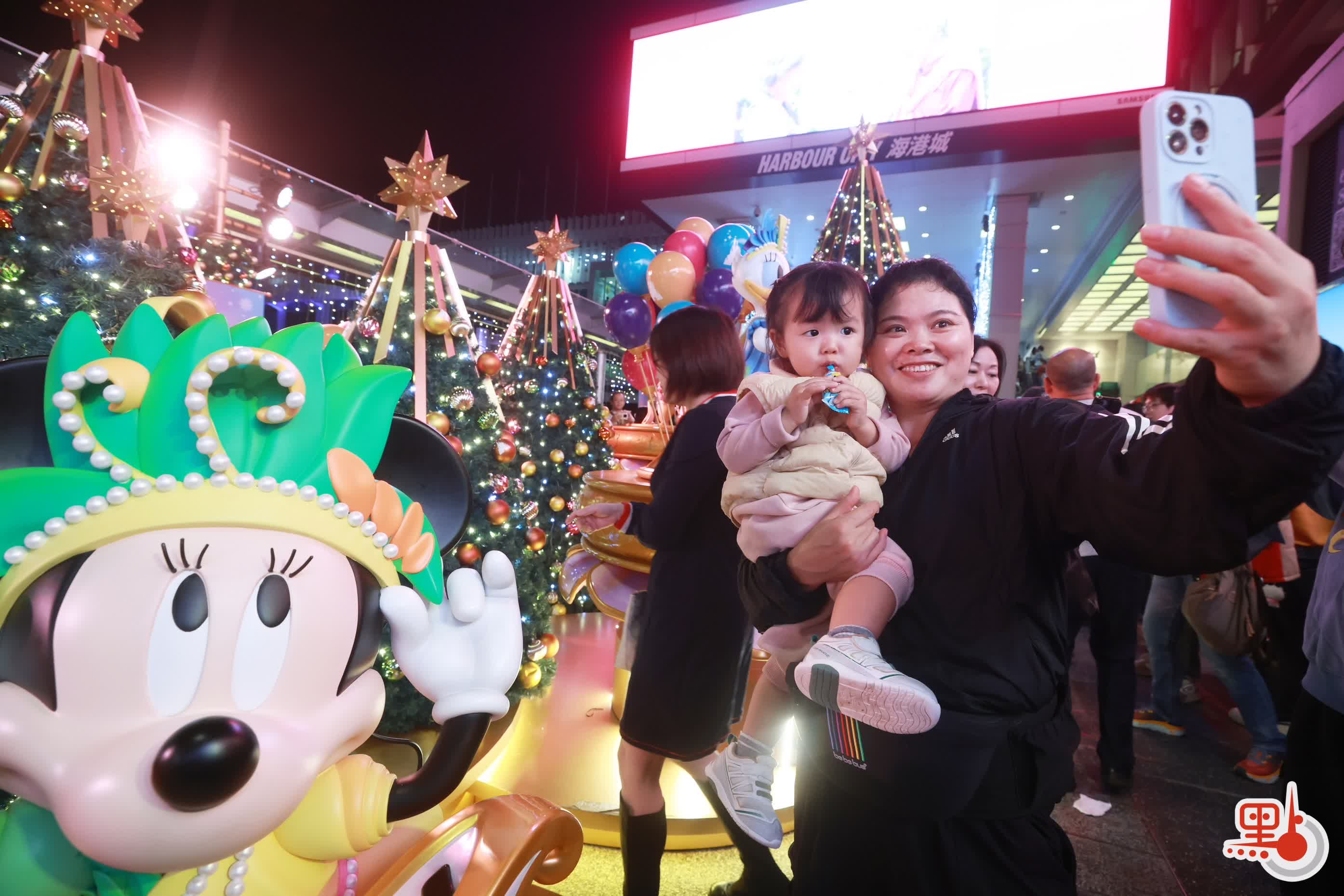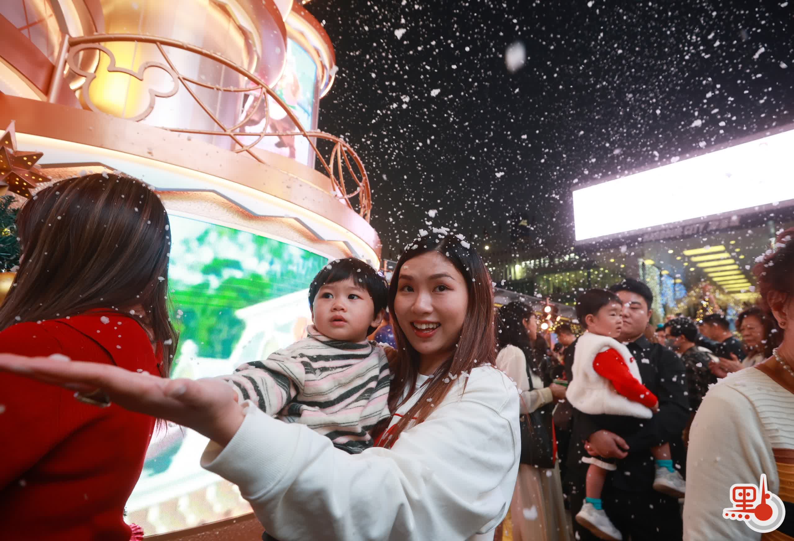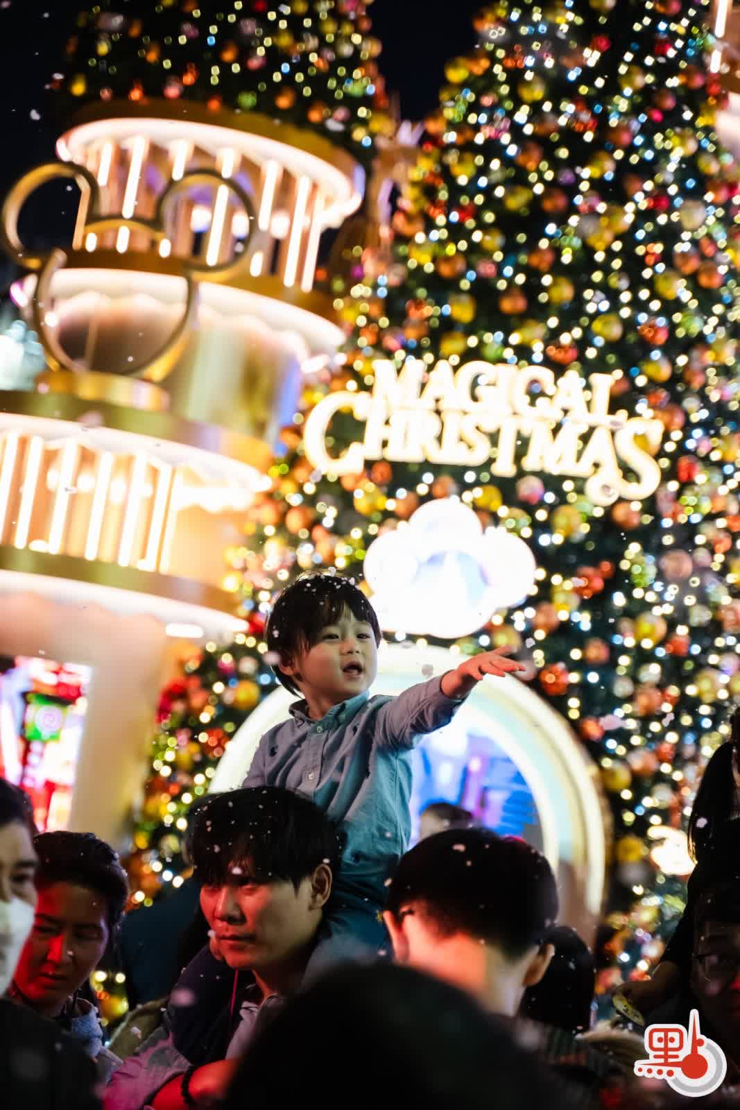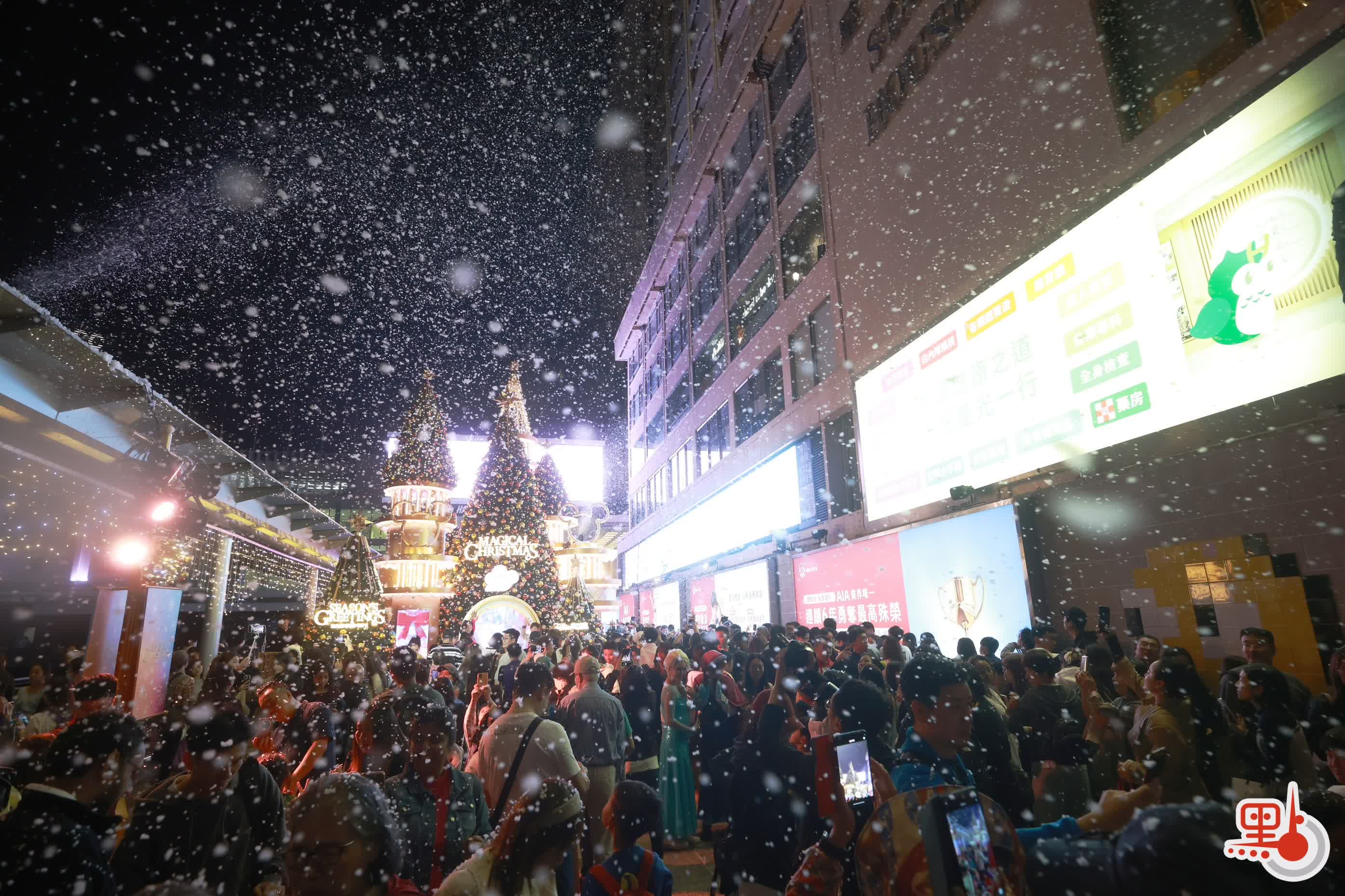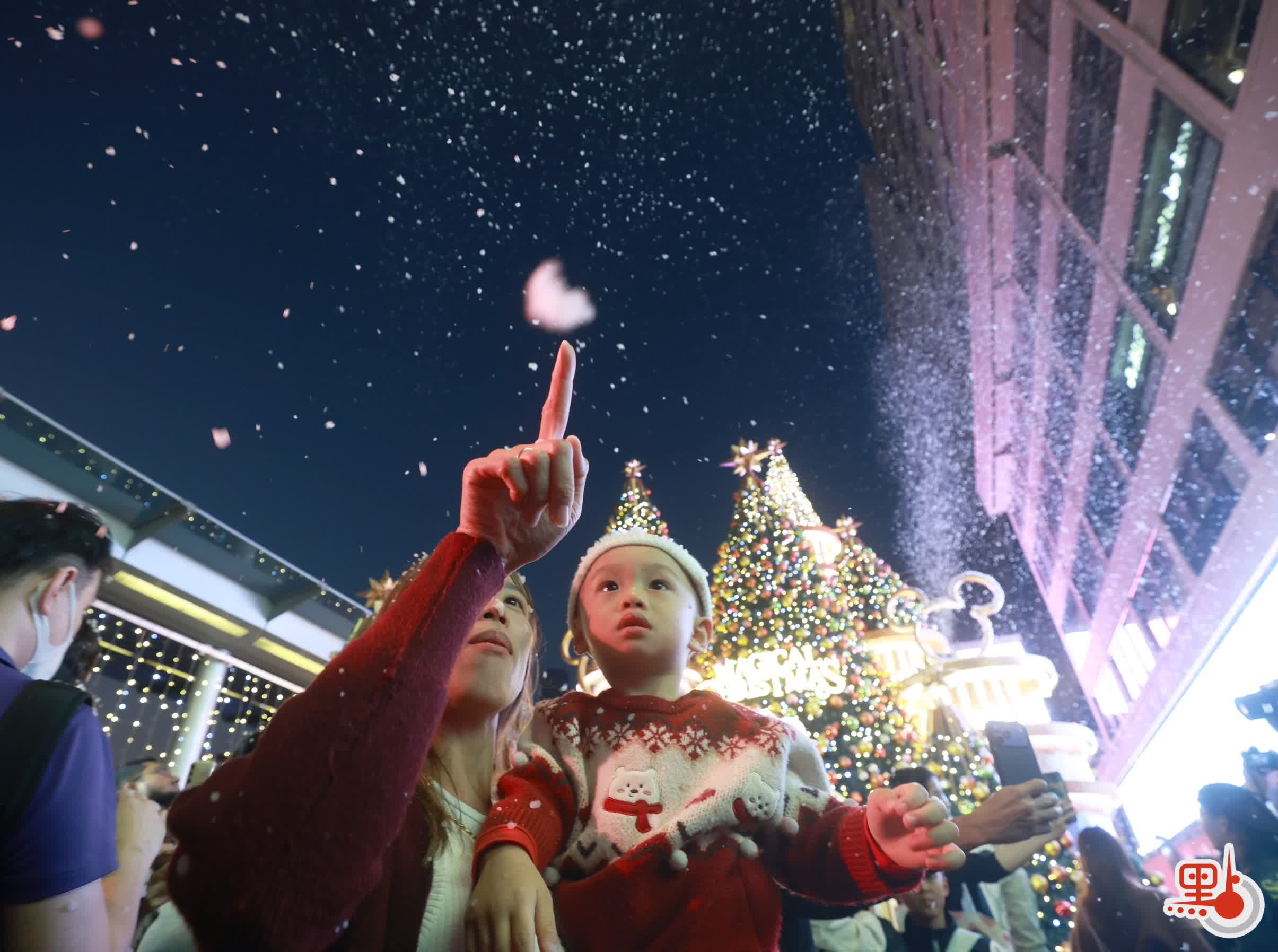 (多圖)平安夜燈飾繽紛偶有「飄雪」 市民打卡影靚相