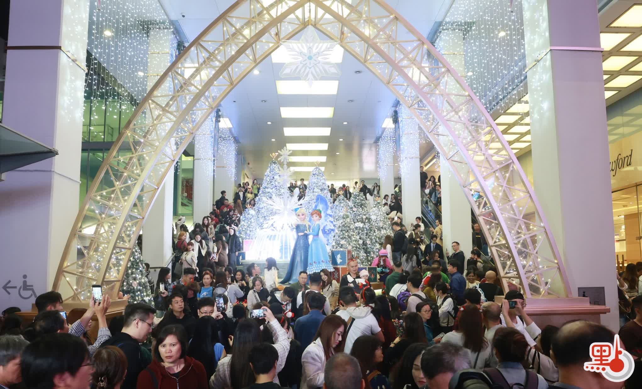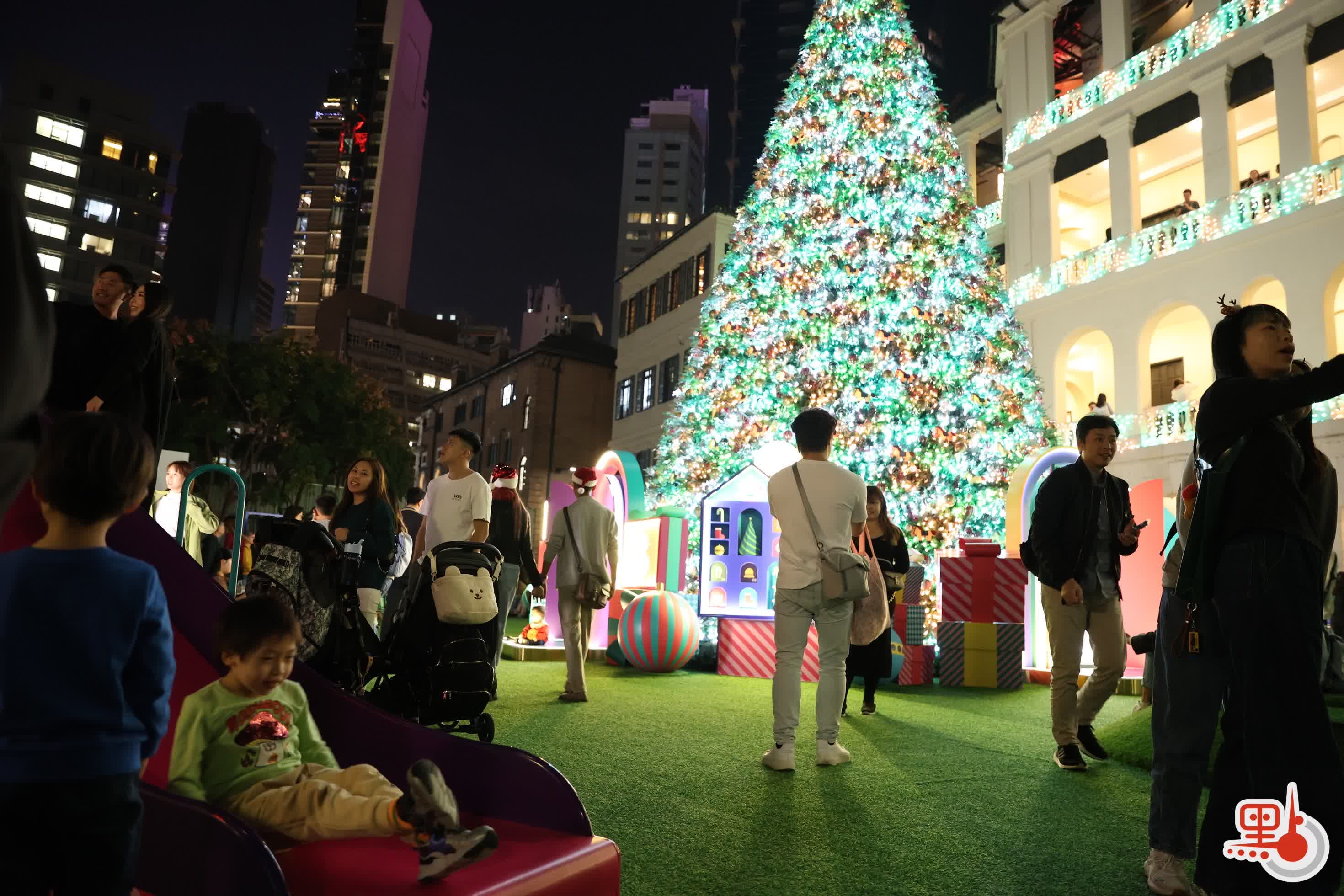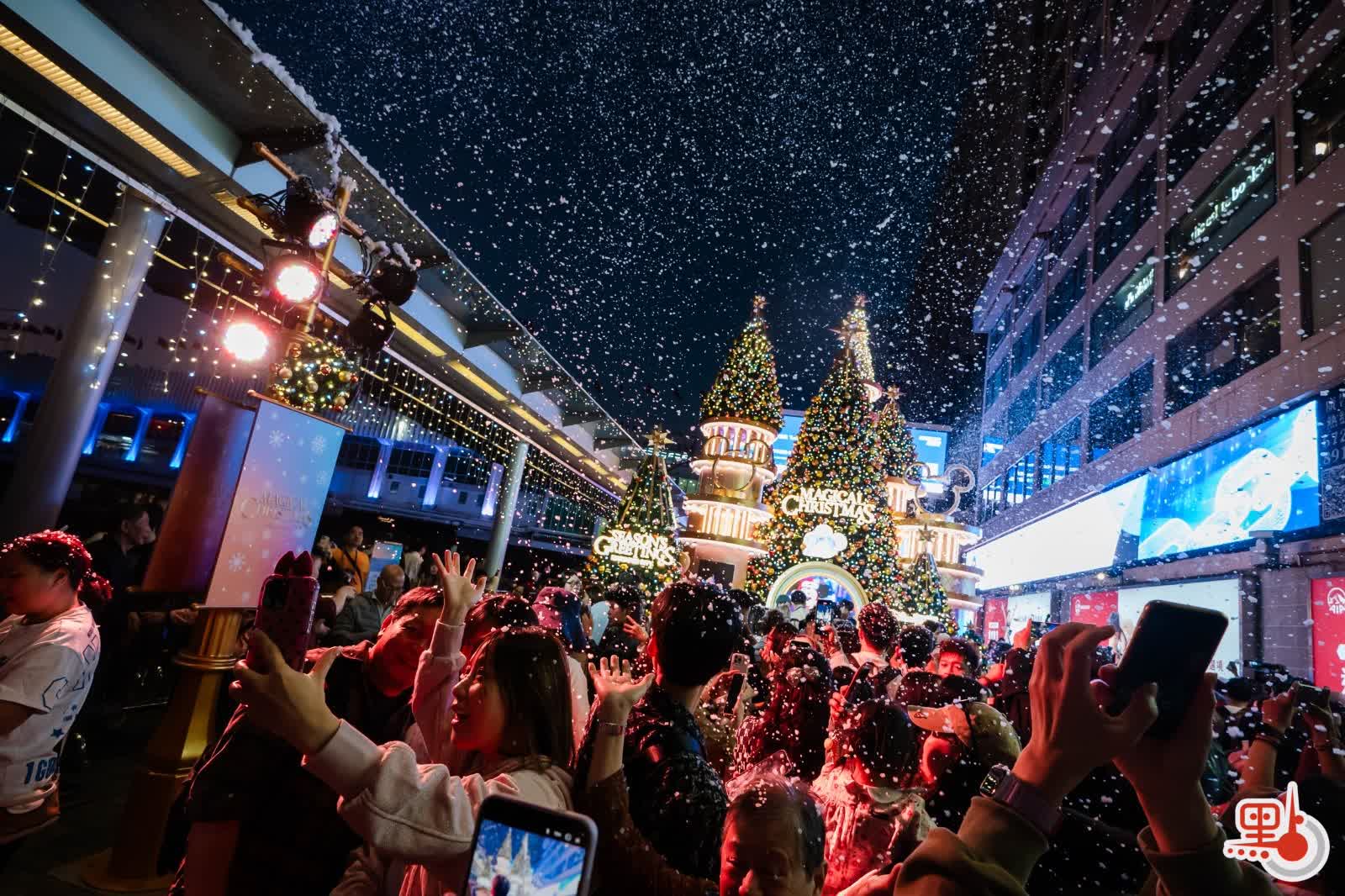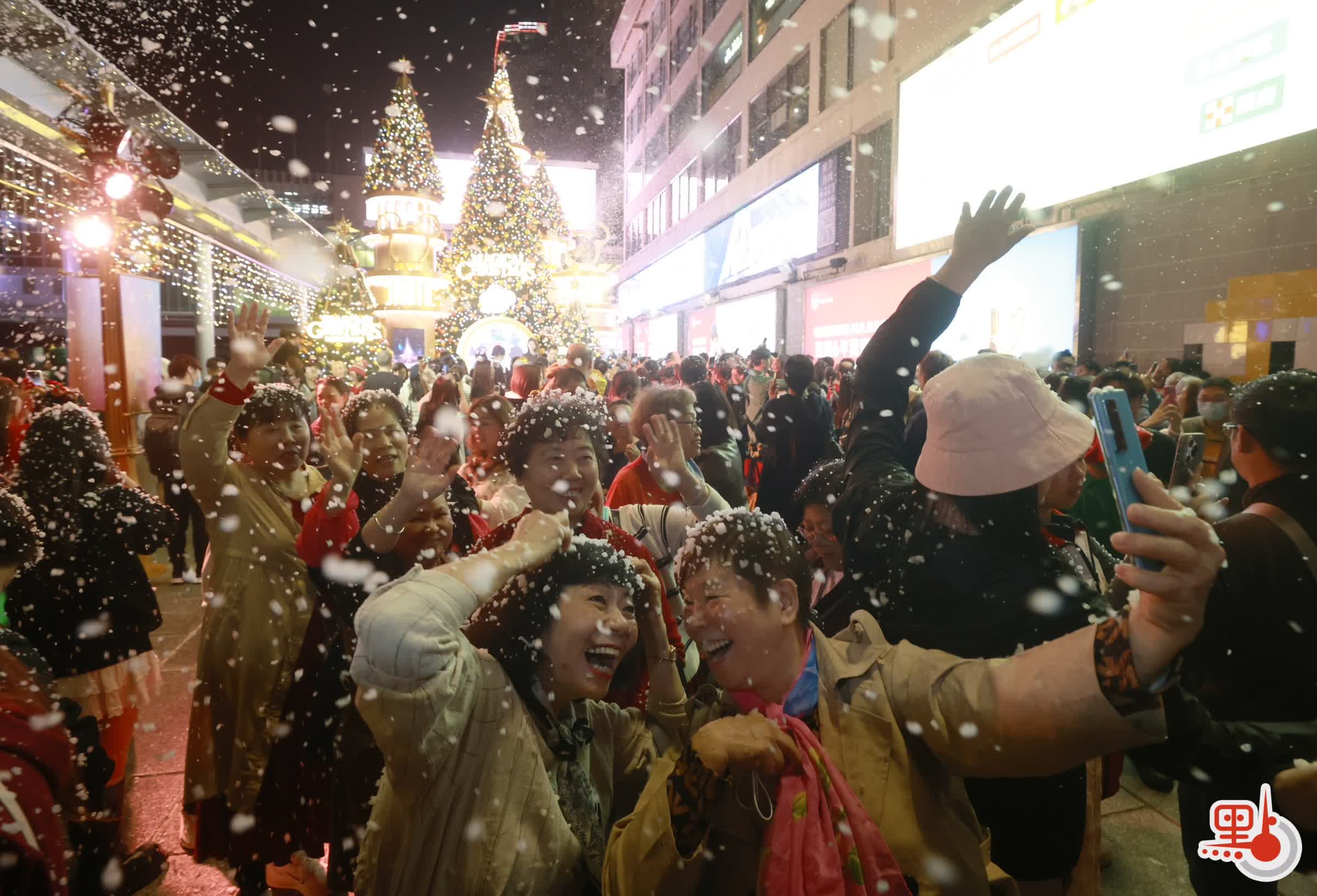(多圖)平安夜燈飾繽紛偶有「飄雪」 市民打卡影靚相