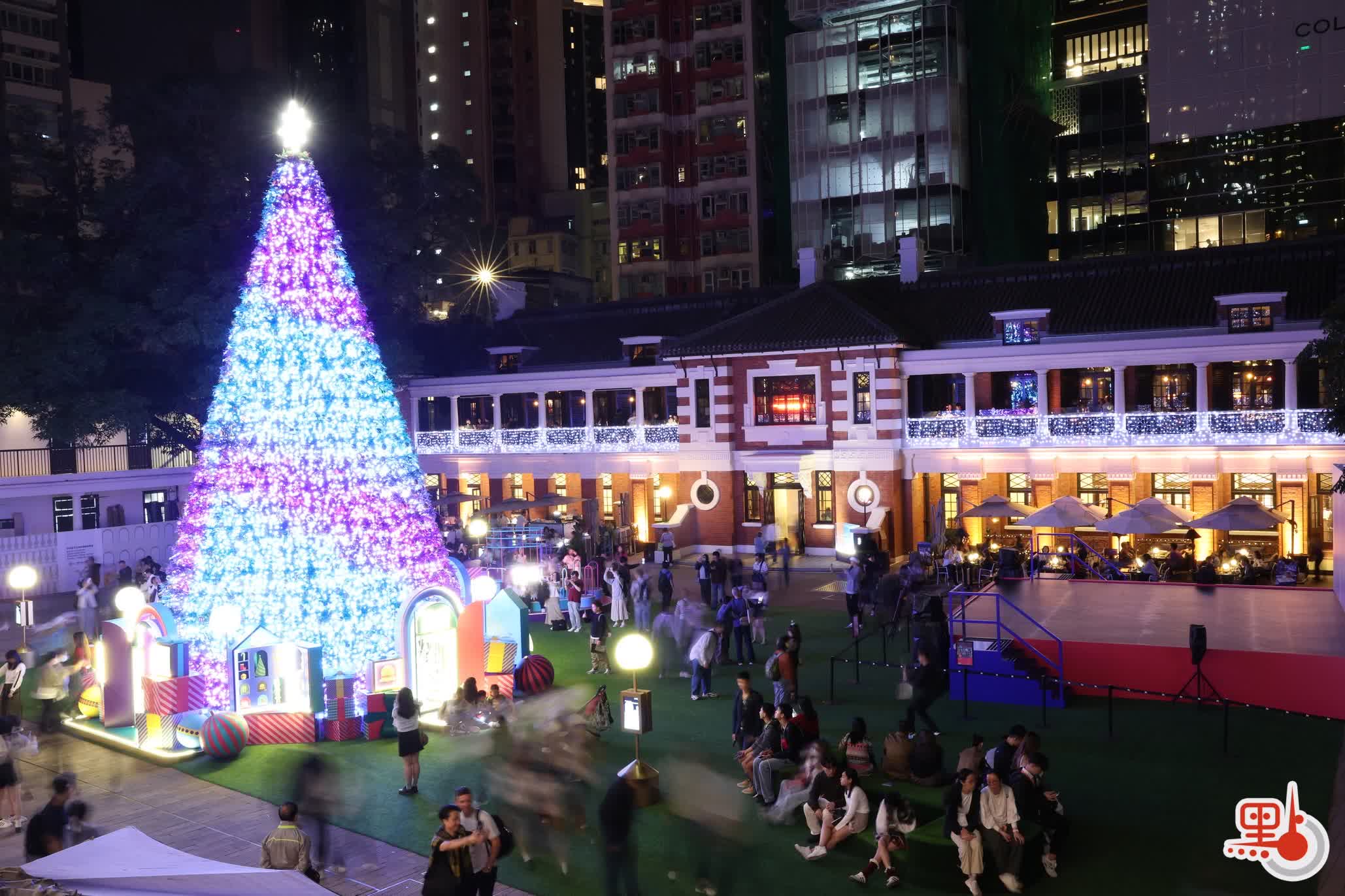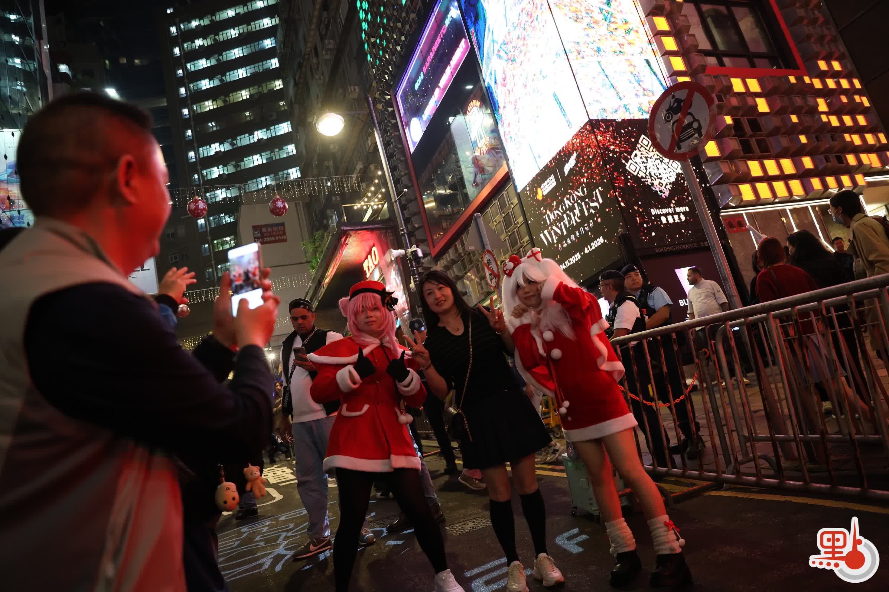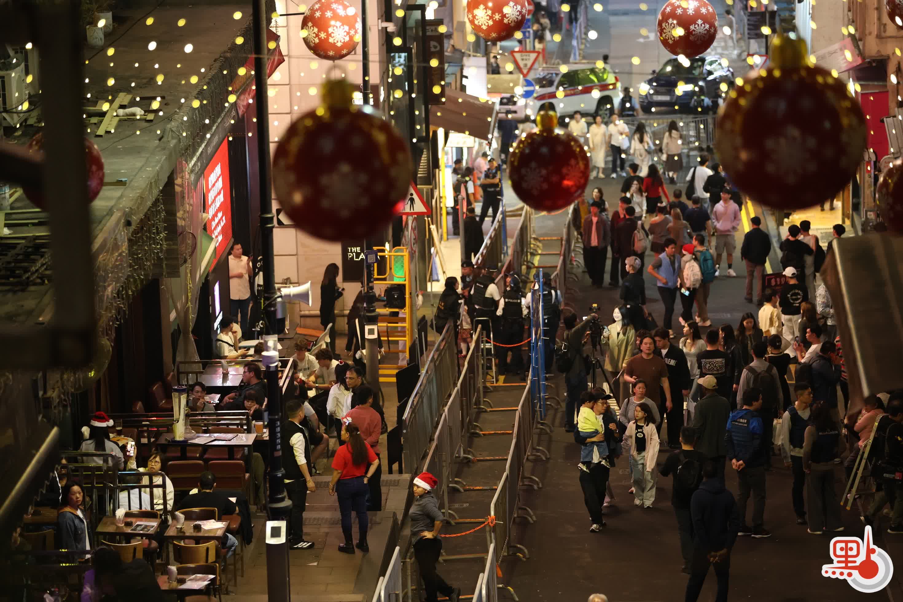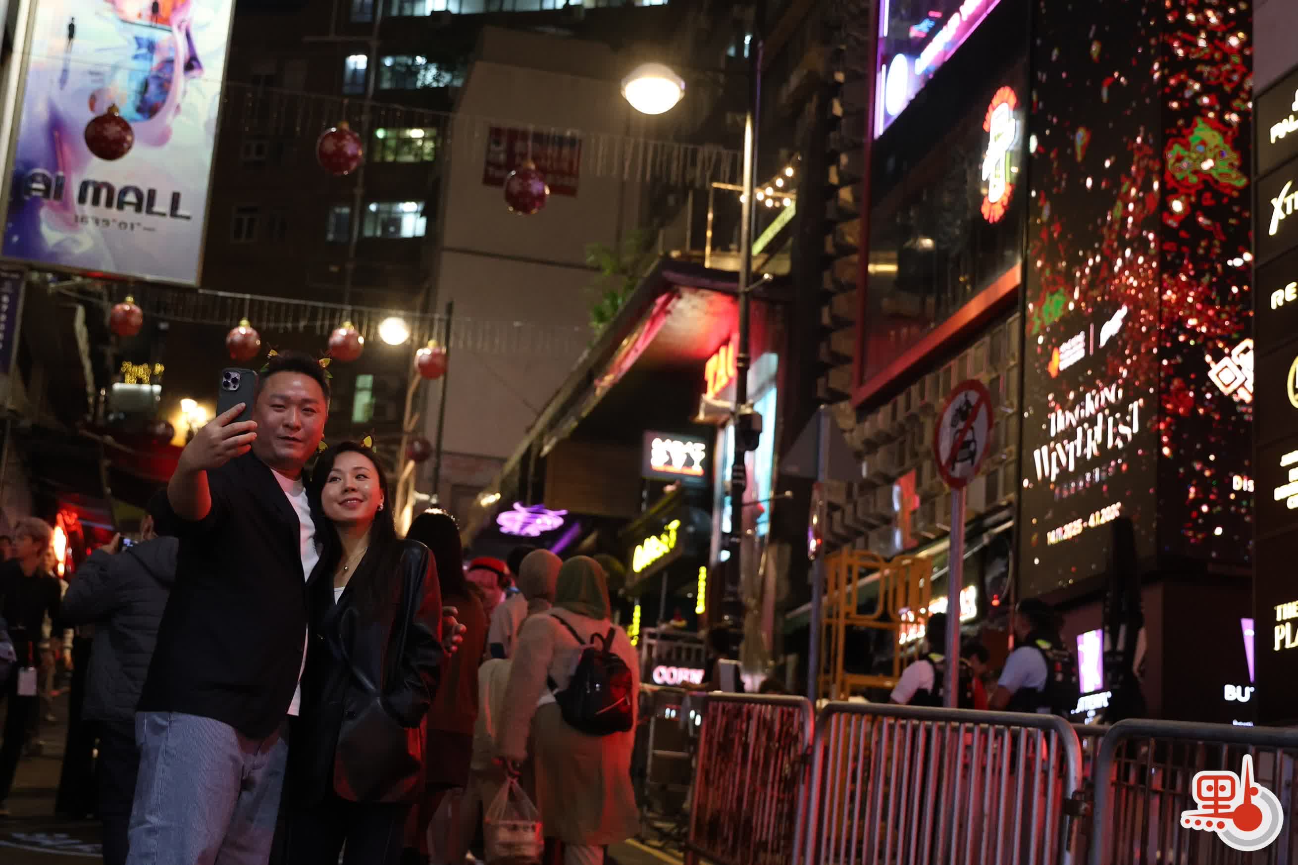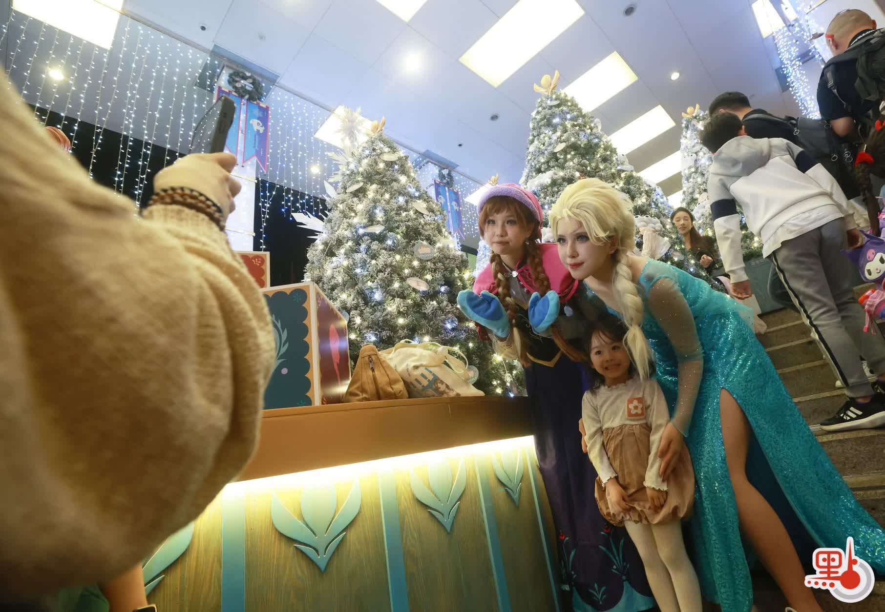 (多圖)平安夜燈飾繽紛偶有「飄雪」 市民打卡影靚相