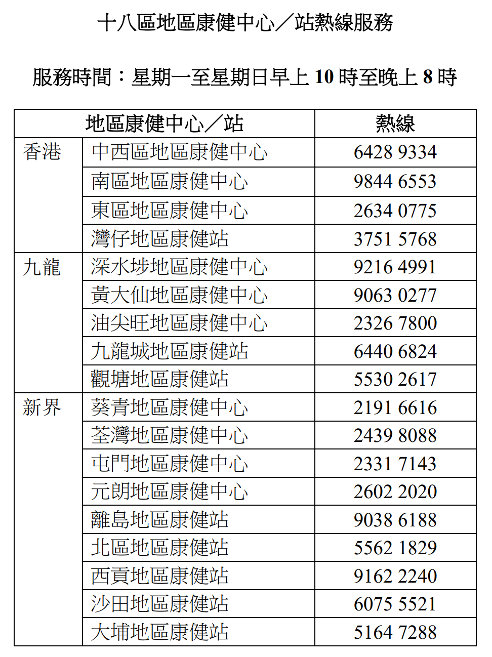 康健中心熱線