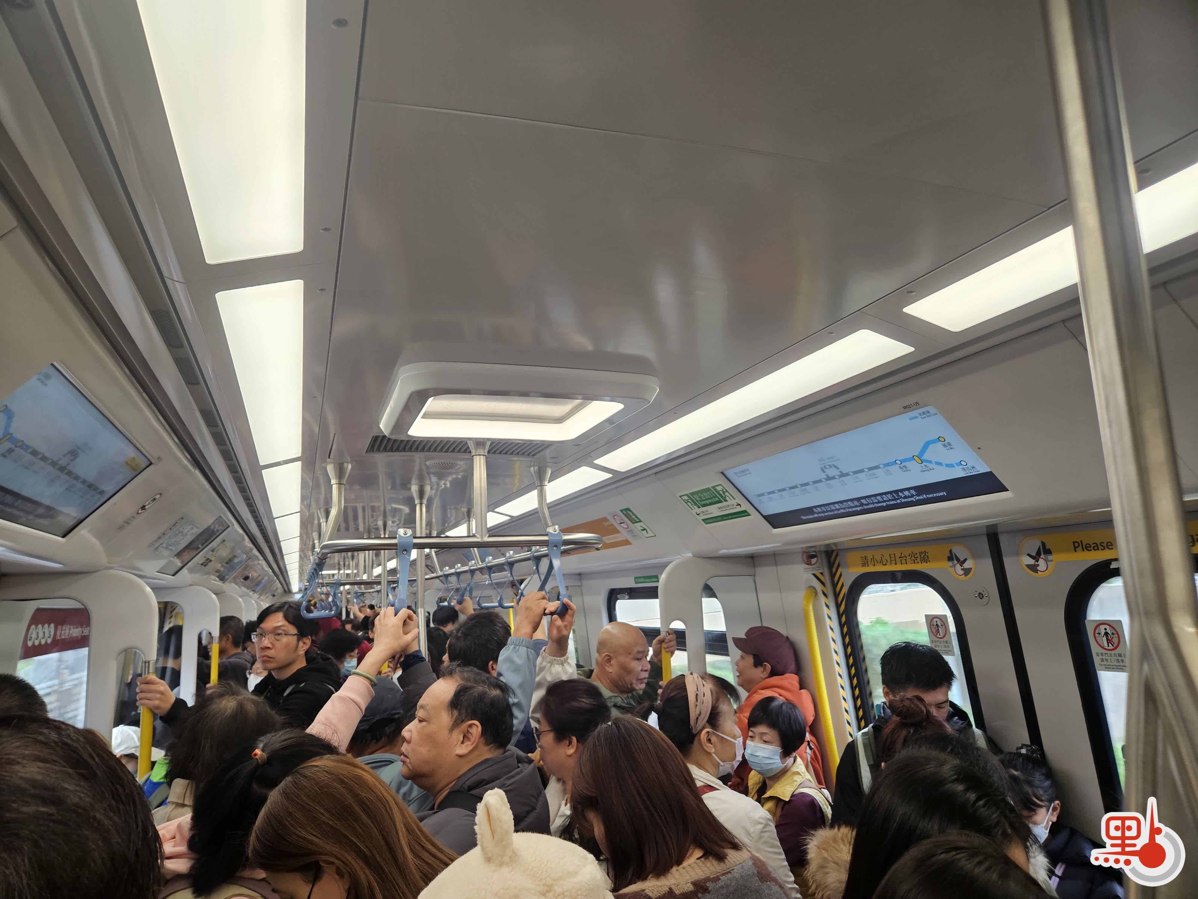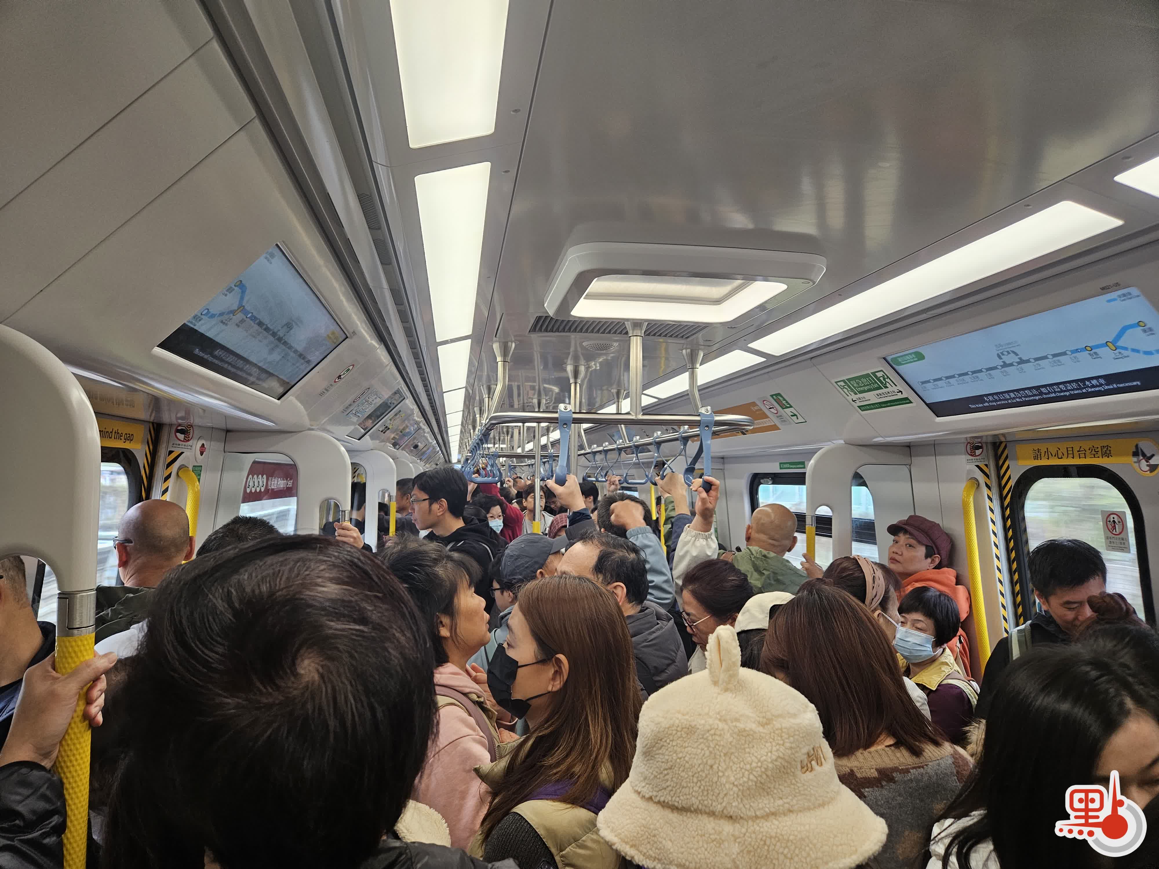 今日上午,全港各個口岸都擠滿了準備出遊的港人。點新聞記者在東鐵綫列車上看到,車內人頭湧湧,車廂內的人潮十分擁擠,羅湖口岸過關北上的人流量亦十分大,幾乎逼爆口岸。