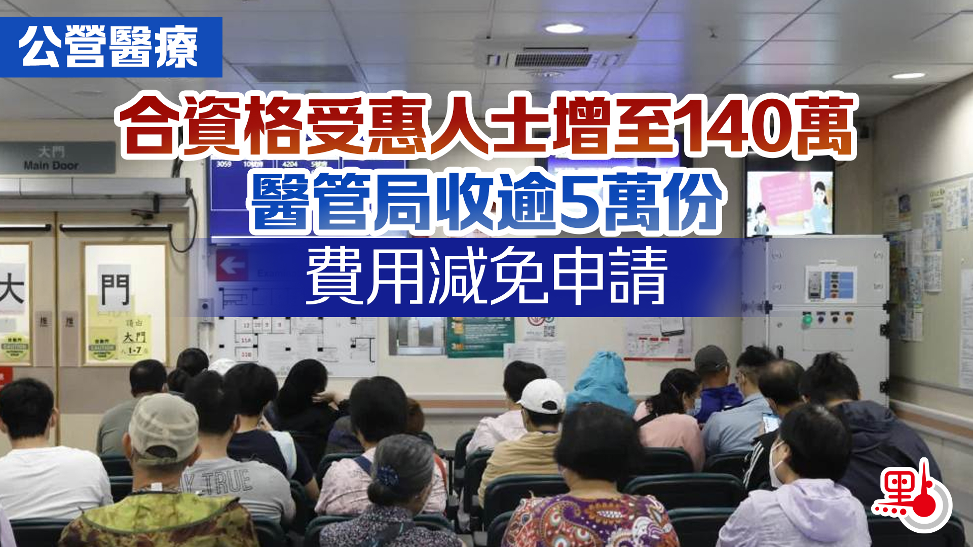 公營醫療|合資格受惠人士增至140萬 醫管局收逾5萬份費用減免申請