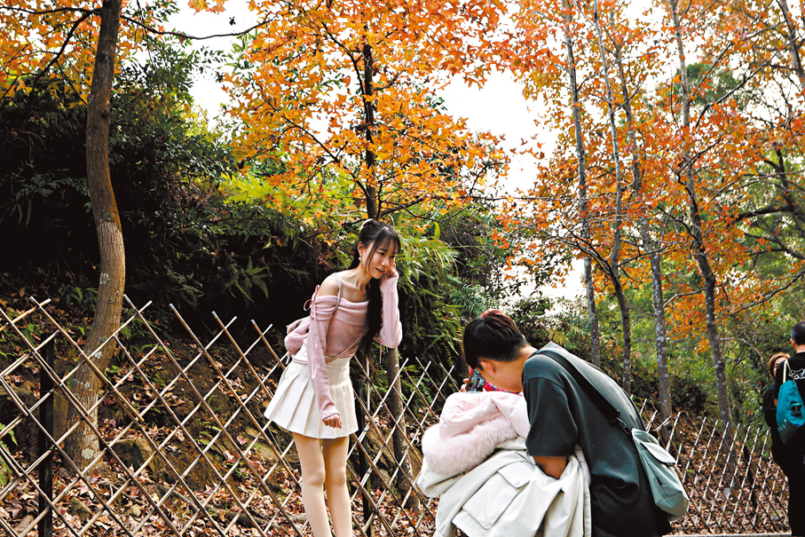 下車後,大批市民與旅客沿路登山。來自深圳的旅客王小姐特地來港登山賞楓。她對香港文匯報表示,是首次造訪觀賞紅葉,而此次行程的契機,源於在內地社交平台小紅書上刷到的迷人楓葉畫面,恰逢周末且天氣良好,故決定來港體驗,「有些楓葉特別紅,被風吹過就像小鈴鐺一樣搖曳,特別好看。」