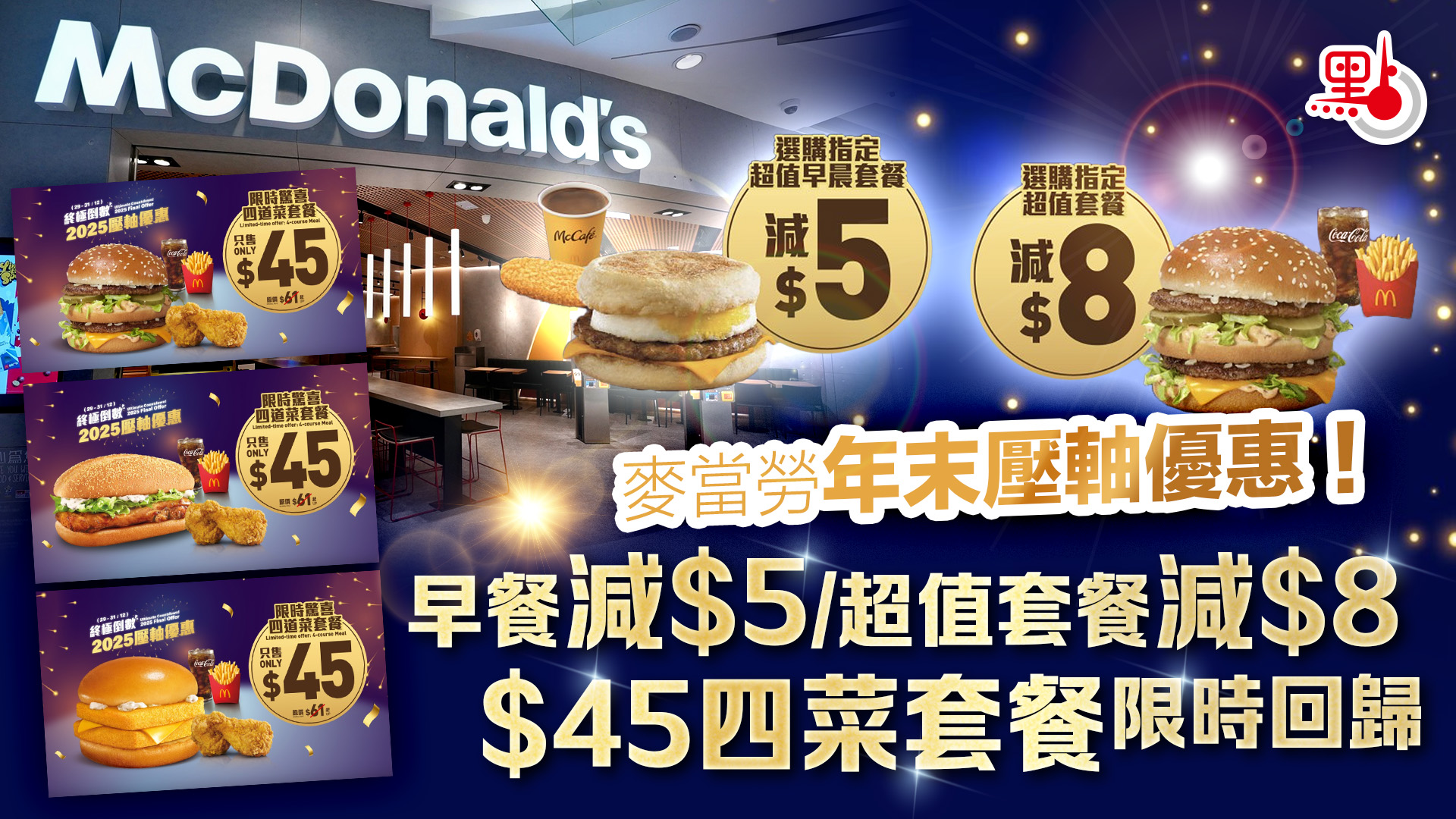 麥當勞年末壓軸優惠!早餐減$5/超值套餐減$8 $45四菜套餐限時回歸