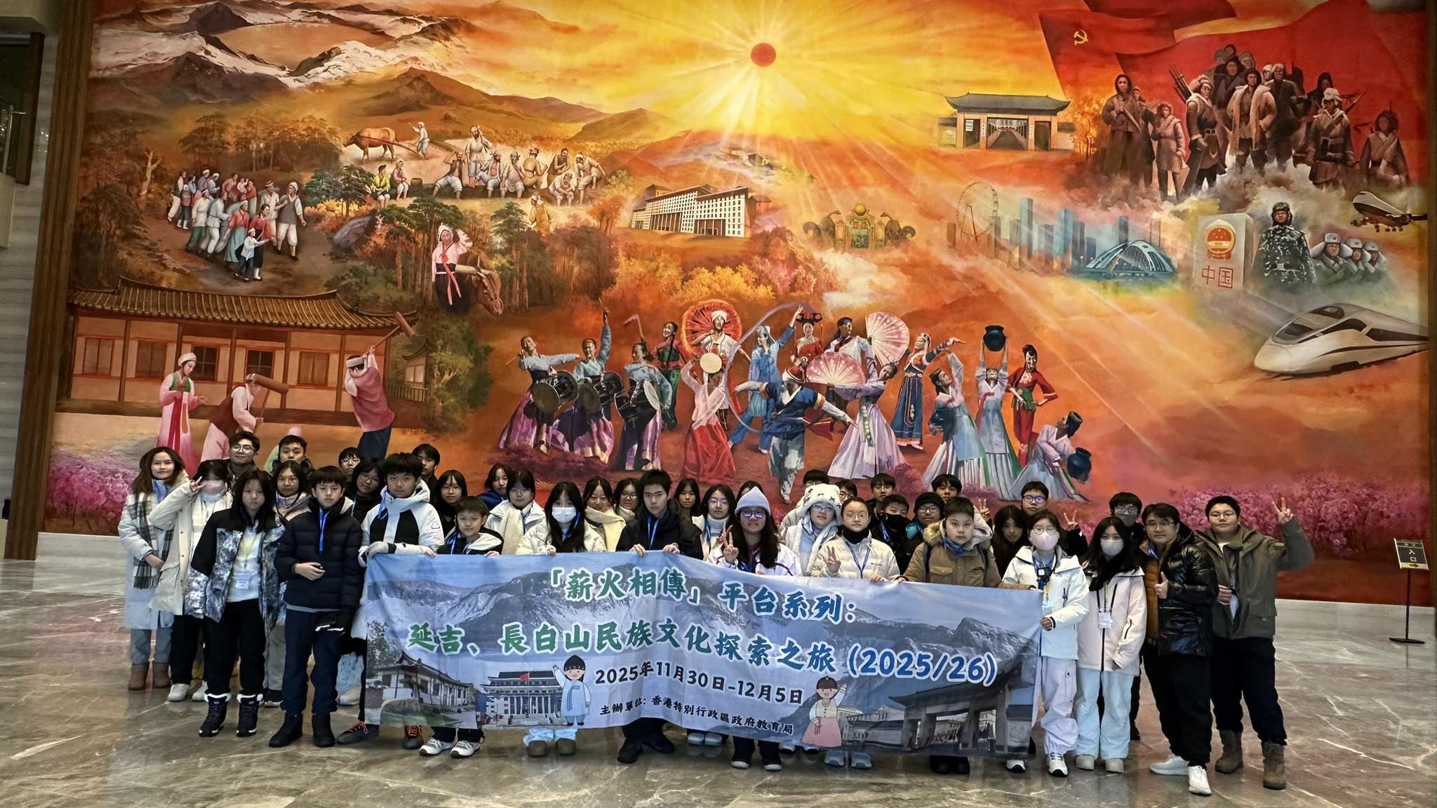 讀萬卷書,不如行萬里路。為了讓學生親身體驗國家壯麗河山,並深入了解中華民族多元一體的豐富文化內涵,仁濟醫院王華湘中學於本學年(2025/26)積極參與由教育局主辦的「薪火相傳」平台系列內地考察活動。該校20名學生在老師的帶領下,參加了為期6天的「延吉、長白山民族文化探索之旅」,深入吉林省延邊朝鮮族自治州,在冰雪與人文交織的北國邊疆,上了一堂生動而深刻的國情教育課。