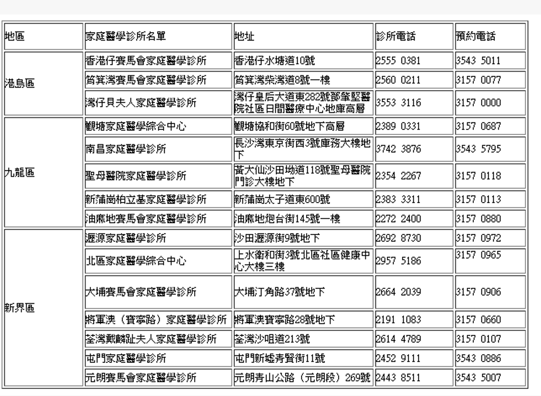 元旦假期期間 15間家庭醫學診所提供服務(附地址電話)