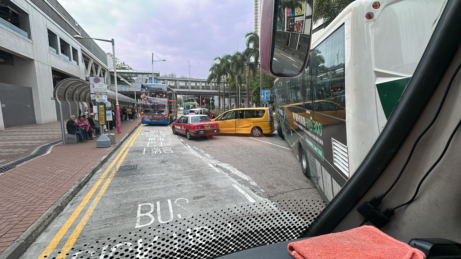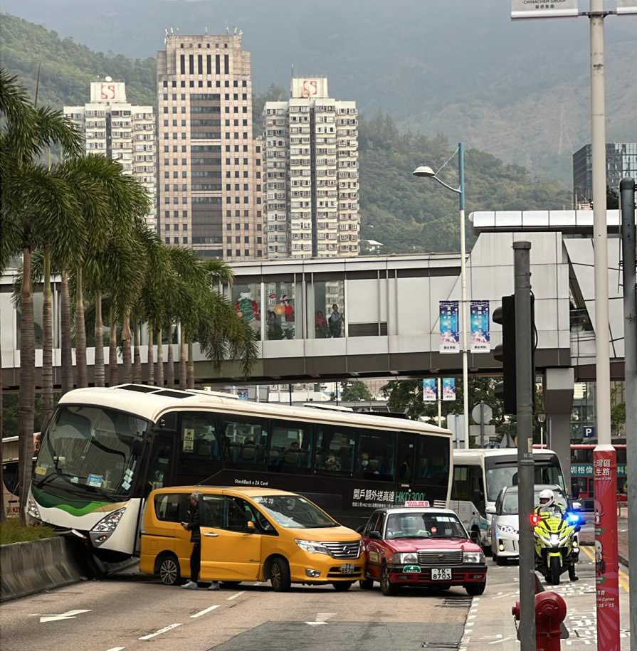 【點新聞報道】荃灣今日(12月31日)發生3車相撞意外。早上8時09分,一輛旅遊巴士、的士和私家車沿大河道往荃灣西站方向行駛,當駛至近海貴路時,3車「串燒」相撞,旅遊巴剷上分隔對面行車線的路中花槽,車頭擱在花槽石壆上。意外中一名50多歲女子頸痛受傷,警方正調查意外原因。