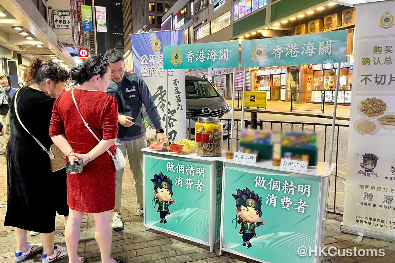 海關旅監局巡查購物熱點 設攤位派傳單提醒旅客提防受騙