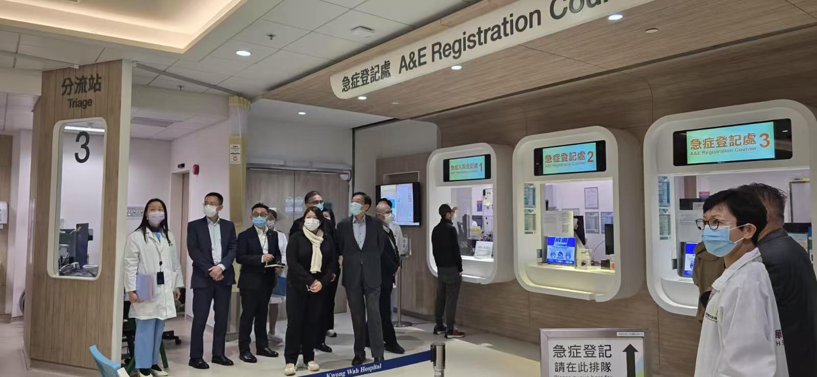 在旺角廣華醫院,已有不少新收費的宣傳字句,亦有易拉架講述新收費基本資料。醫院管理局主席范鴻齡、醫管局行政總裁李夏茵,以及廣華醫院急症科部門主管陳東寧到場視察。