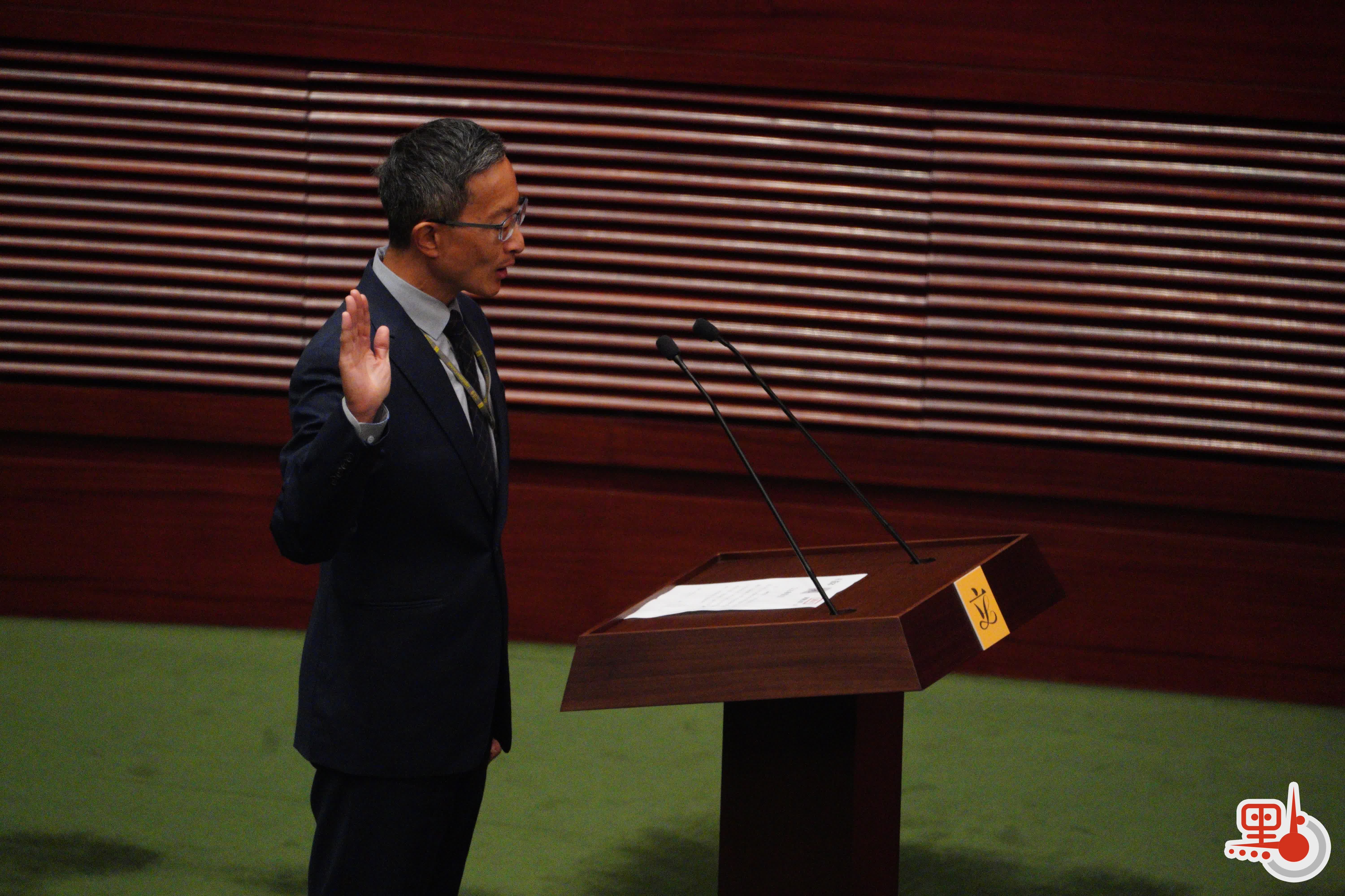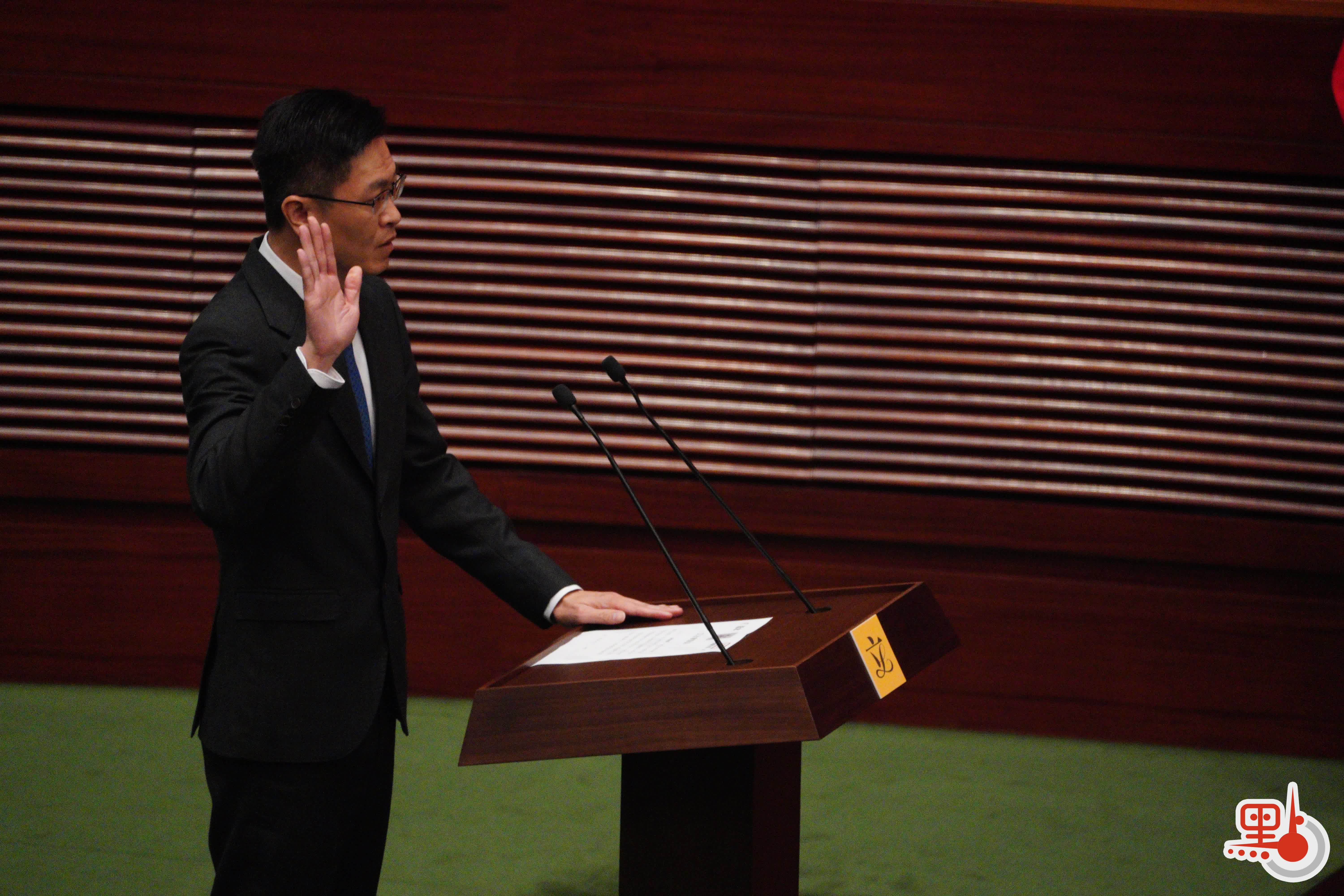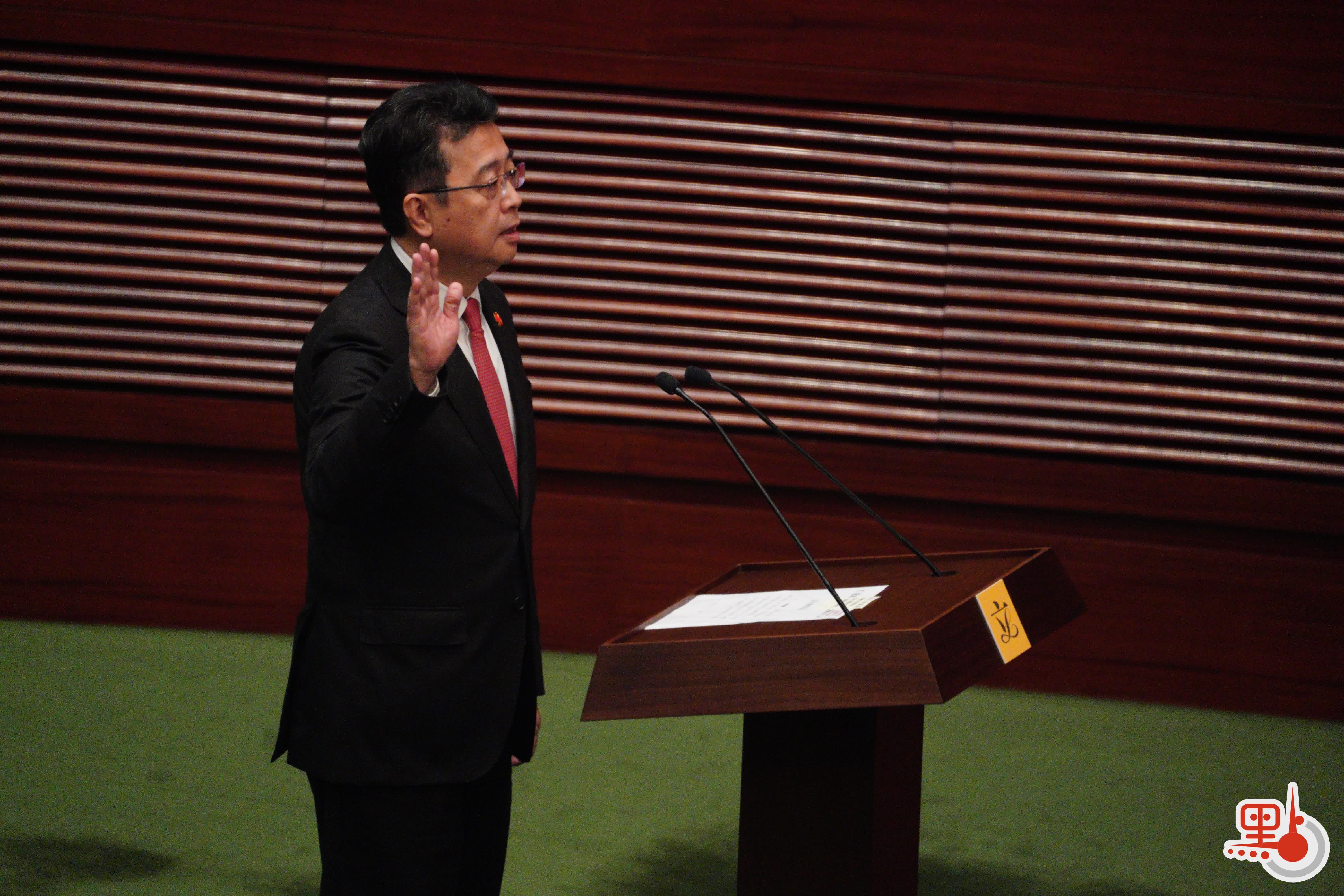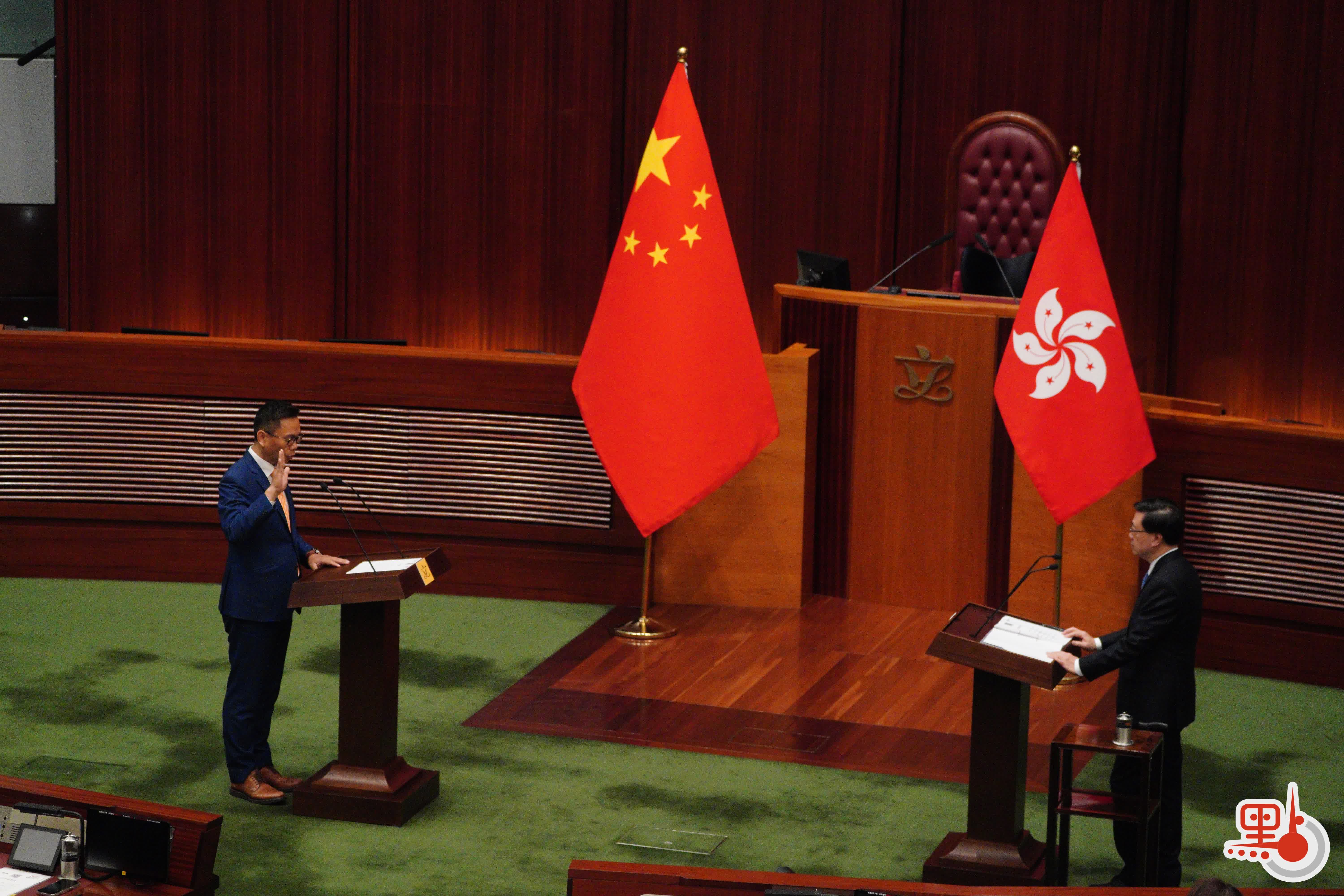 根據經《2021年公職(參選及任職)(雜項修訂)條例》修訂的《宣誓及聲明條例》(第11章),行政長官或其授權人士為立法會議員宣誓的監誓人。