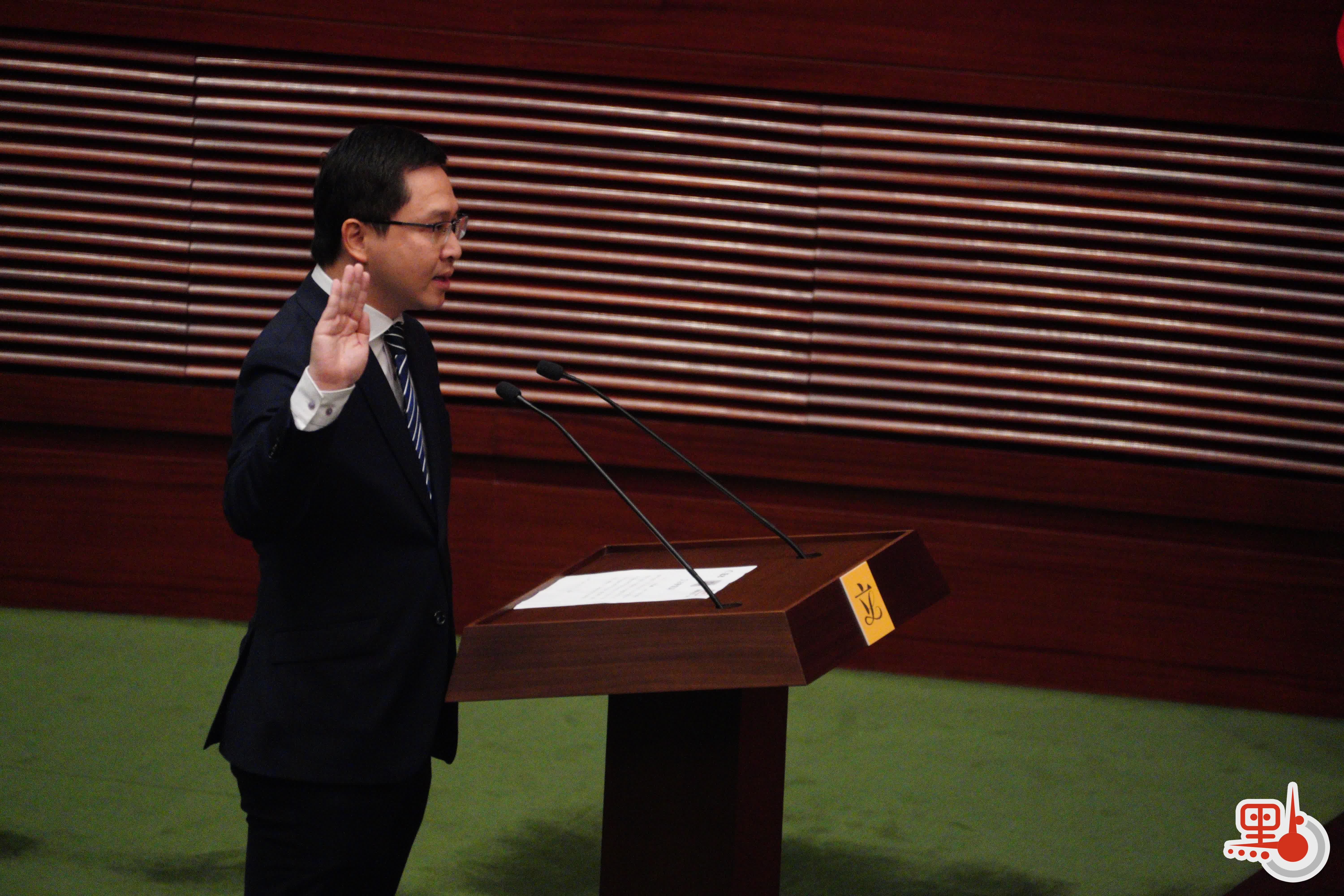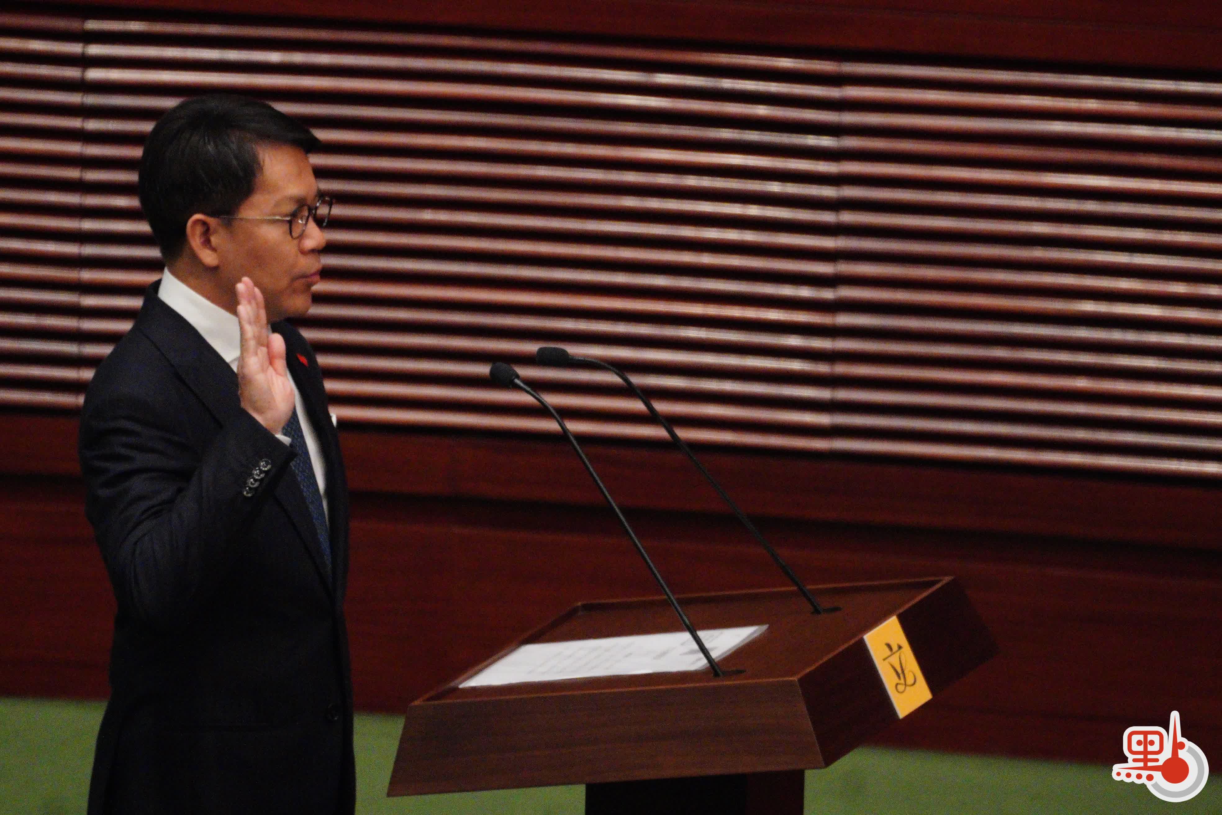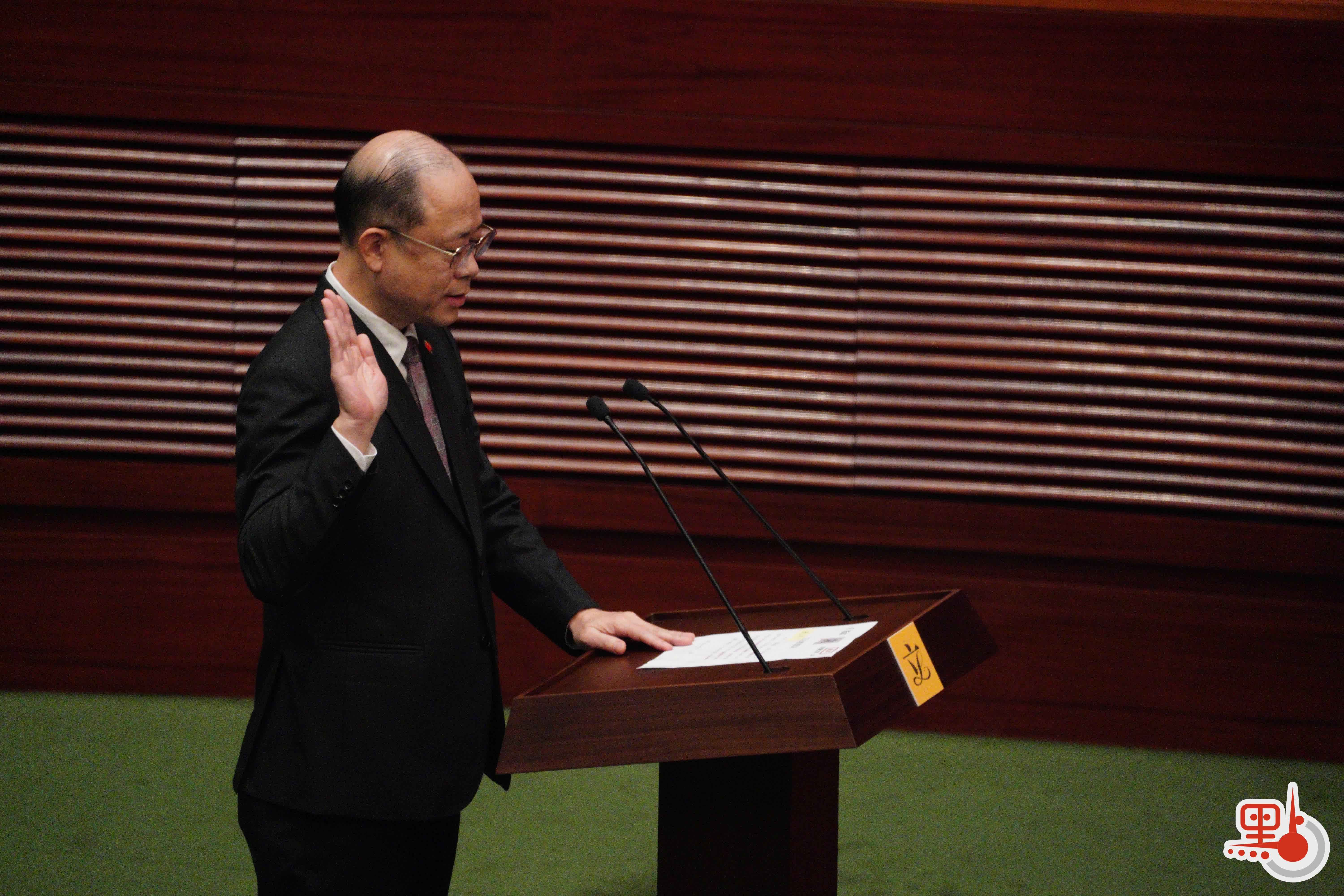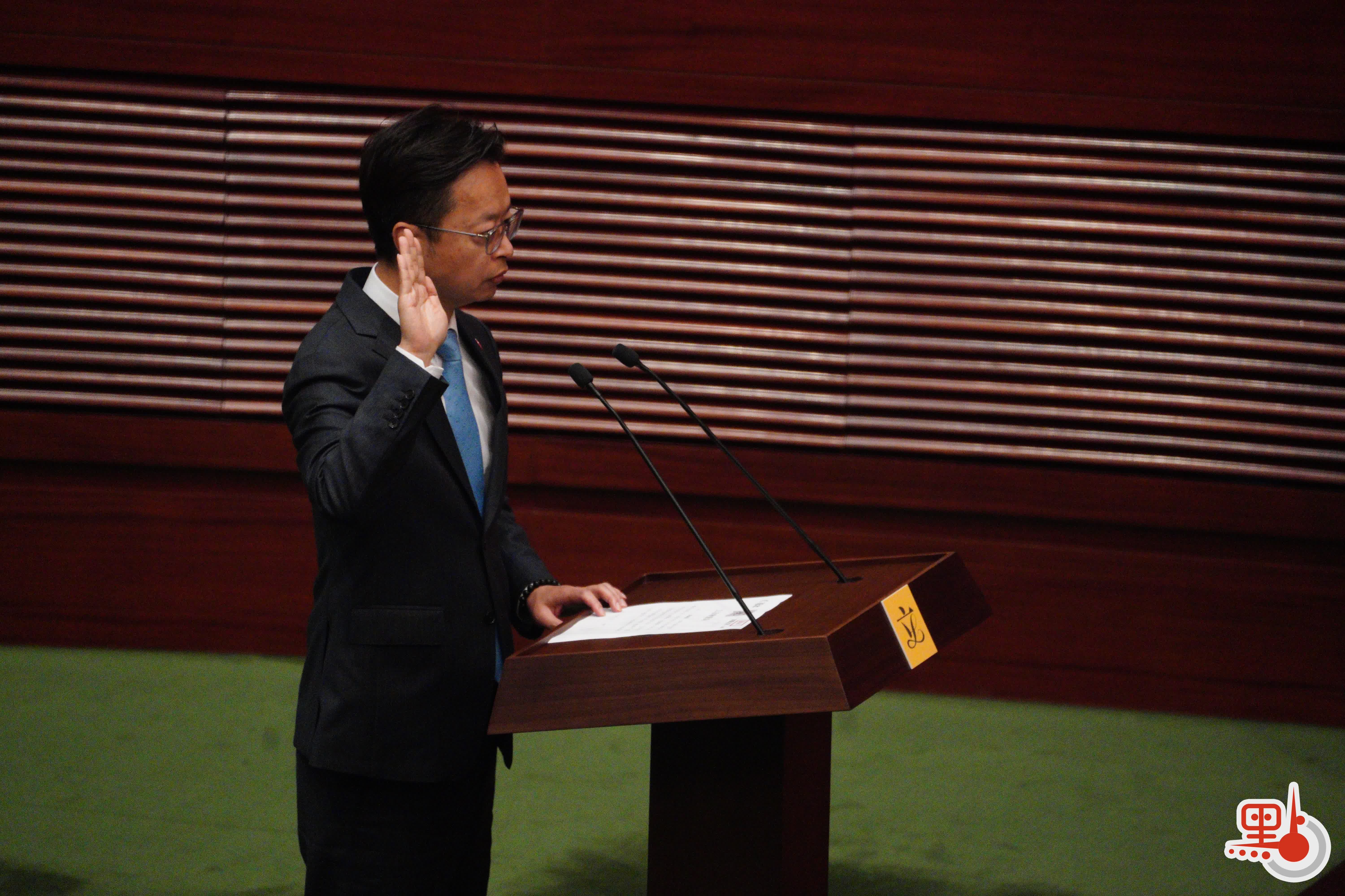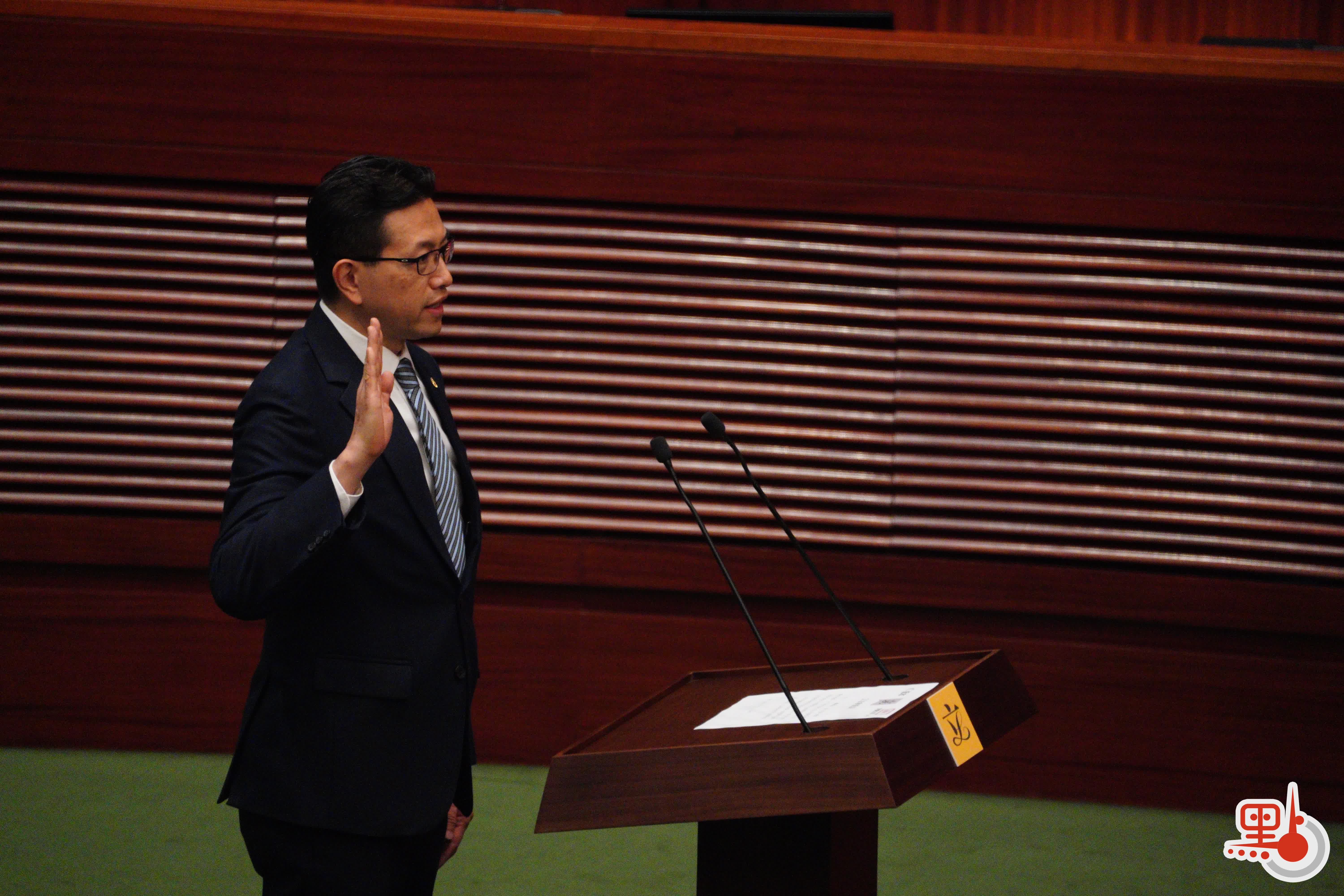 根據經《2021年公職(參選及任職)(雜項修訂)條例》修訂的《宣誓及聲明條例》(第11章),行政長官或其授權人士為立法會議員宣誓的監誓人。
