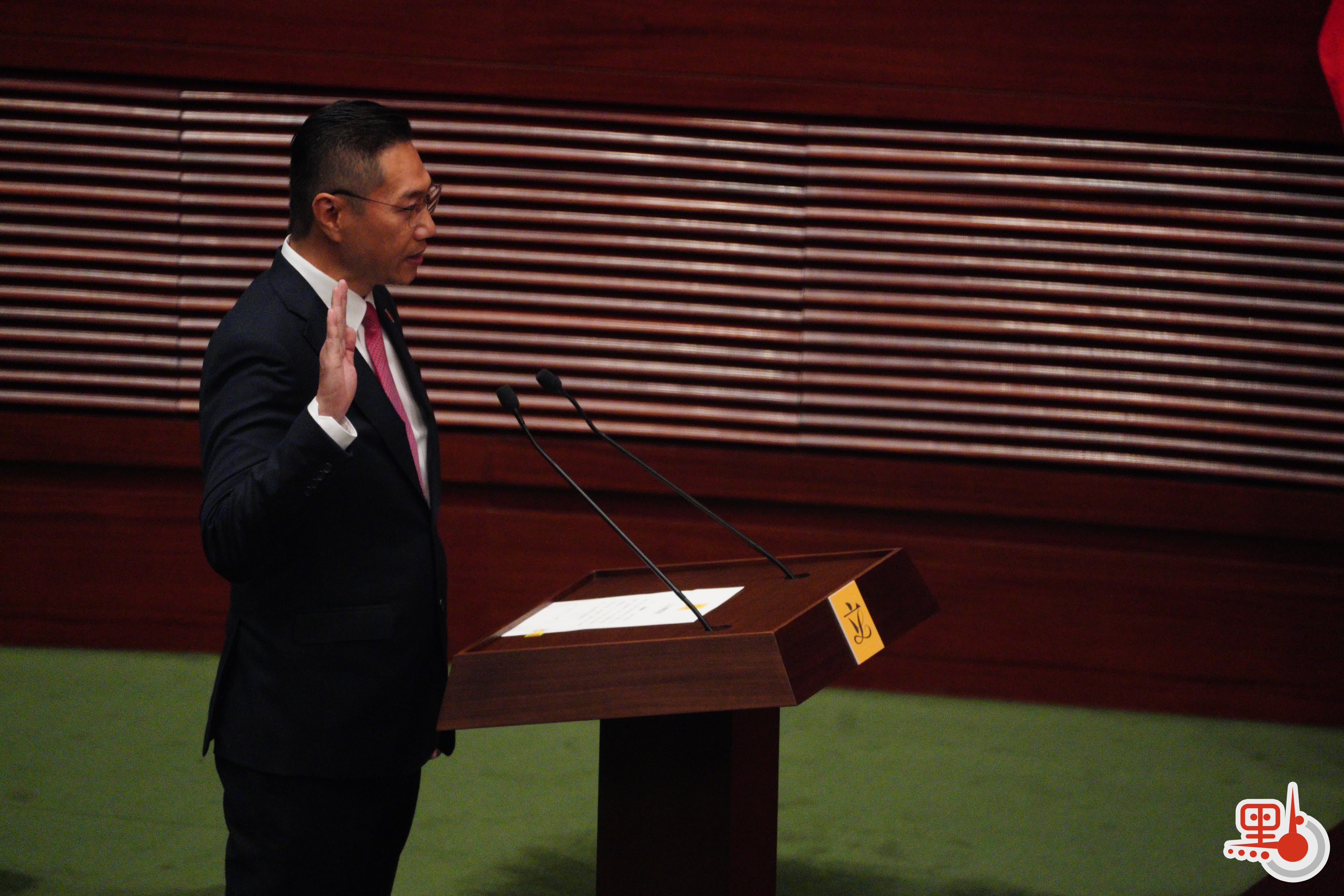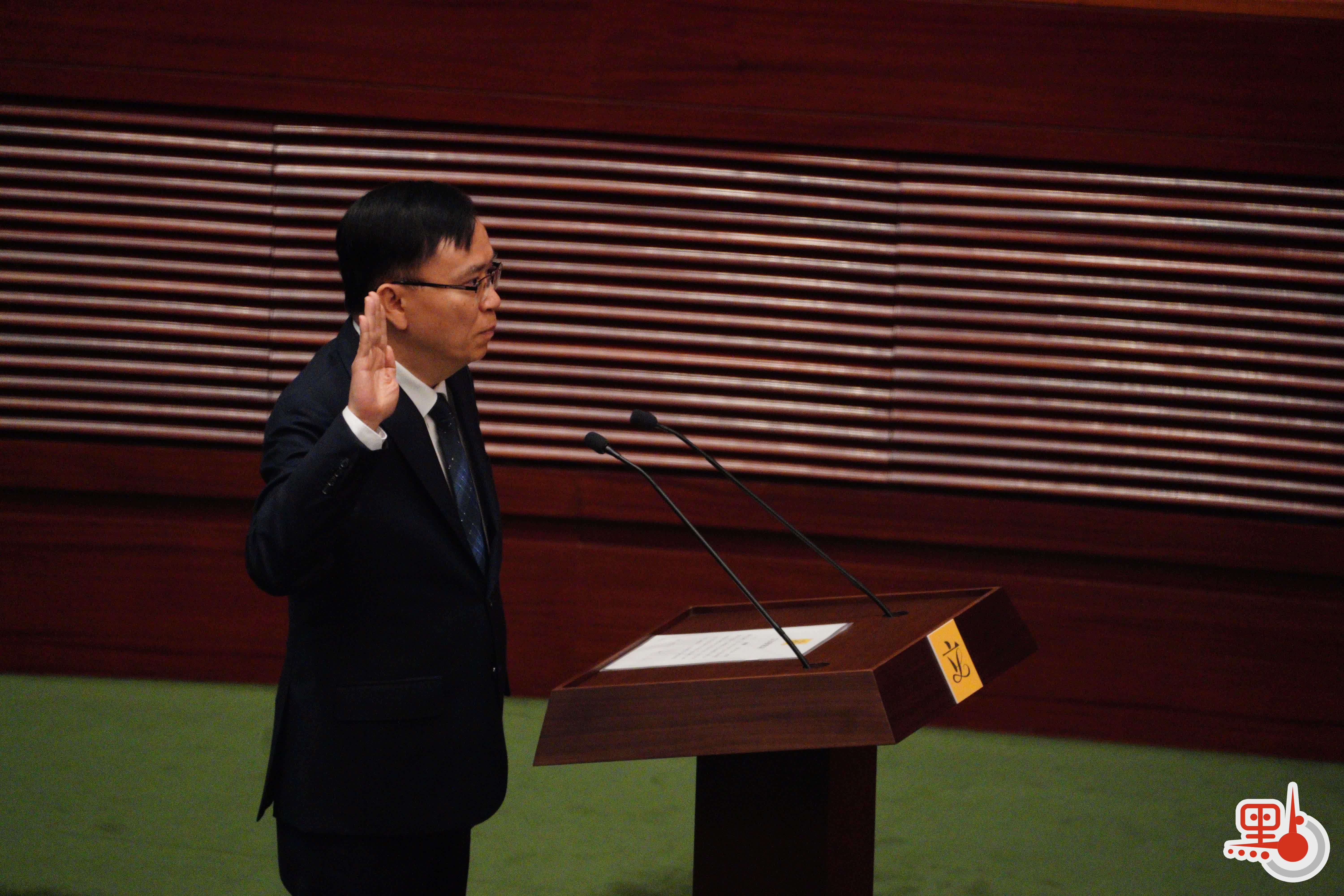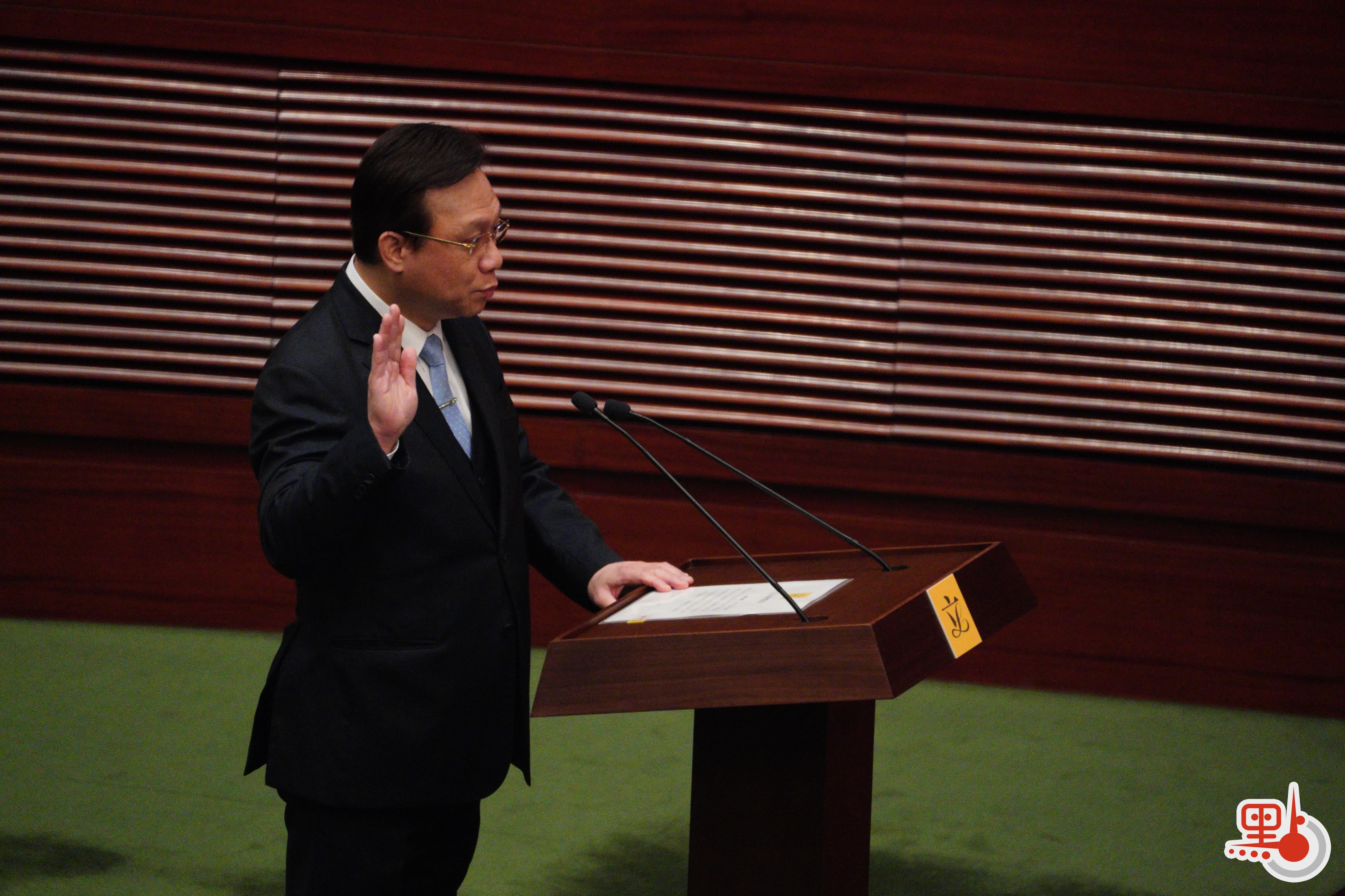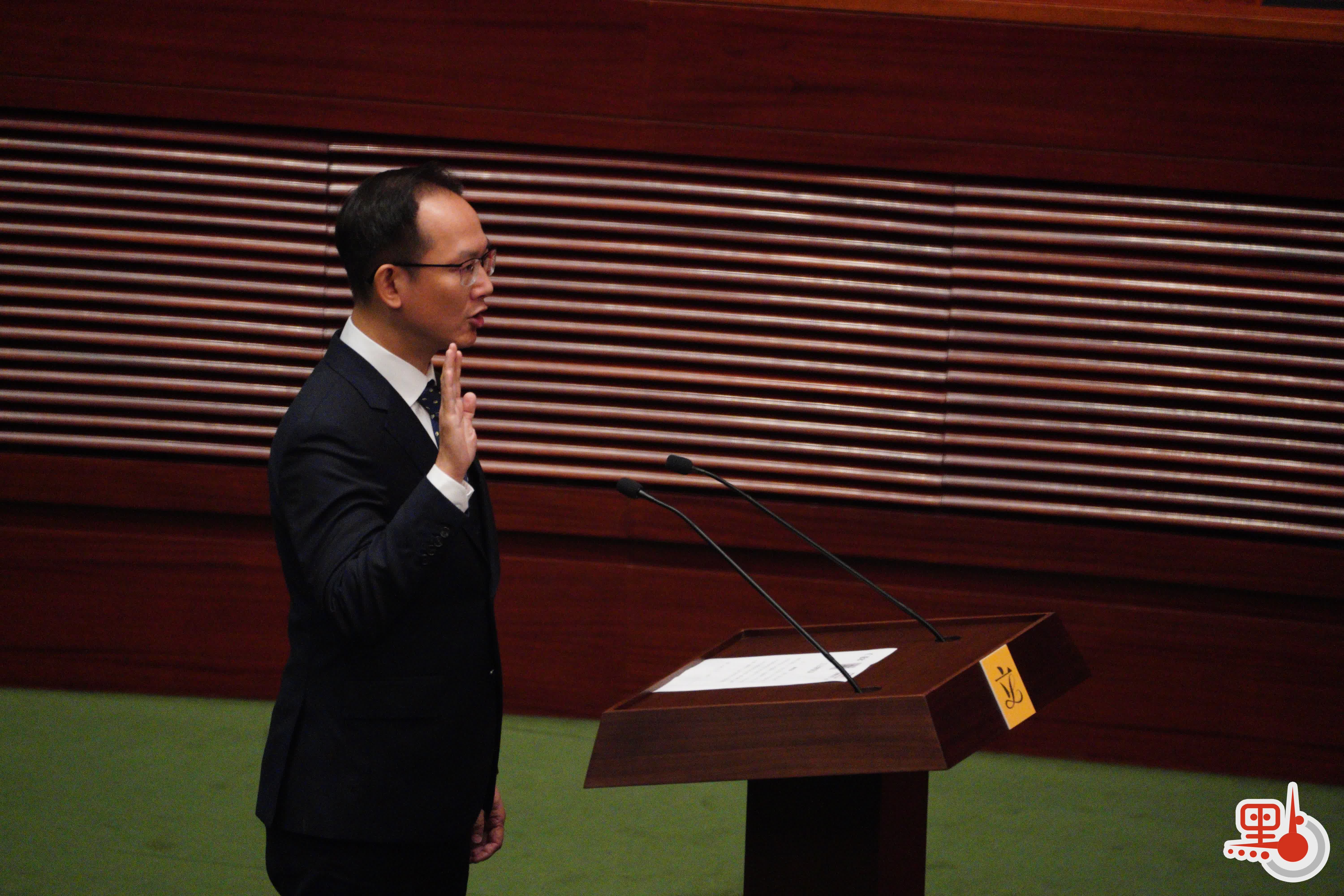 根據經《2021年公職(參選及任職)(雜項修訂)條例》修訂的《宣誓及聲明條例》(第11章),行政長官或其授權人士為立法會議員宣誓的監誓人。