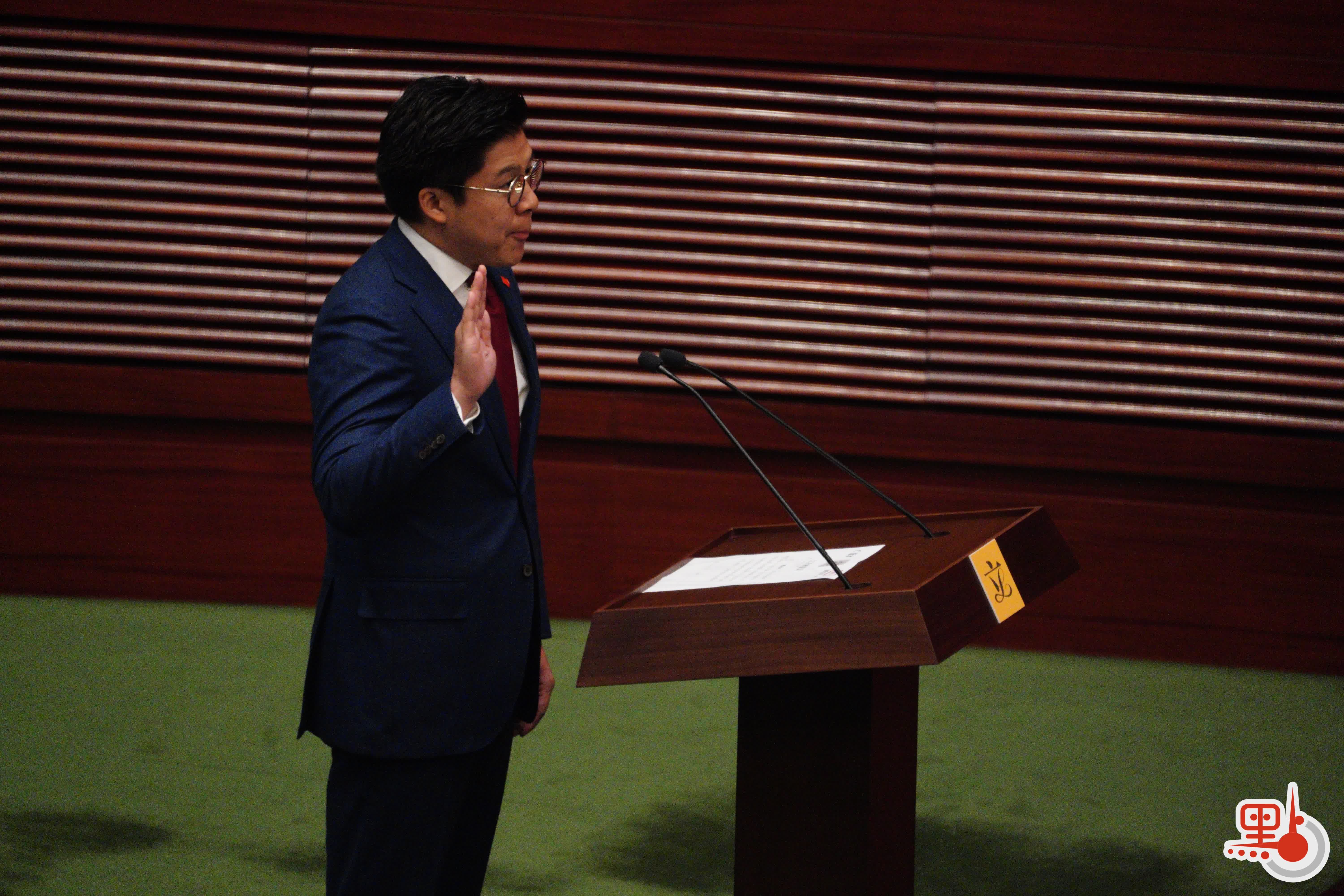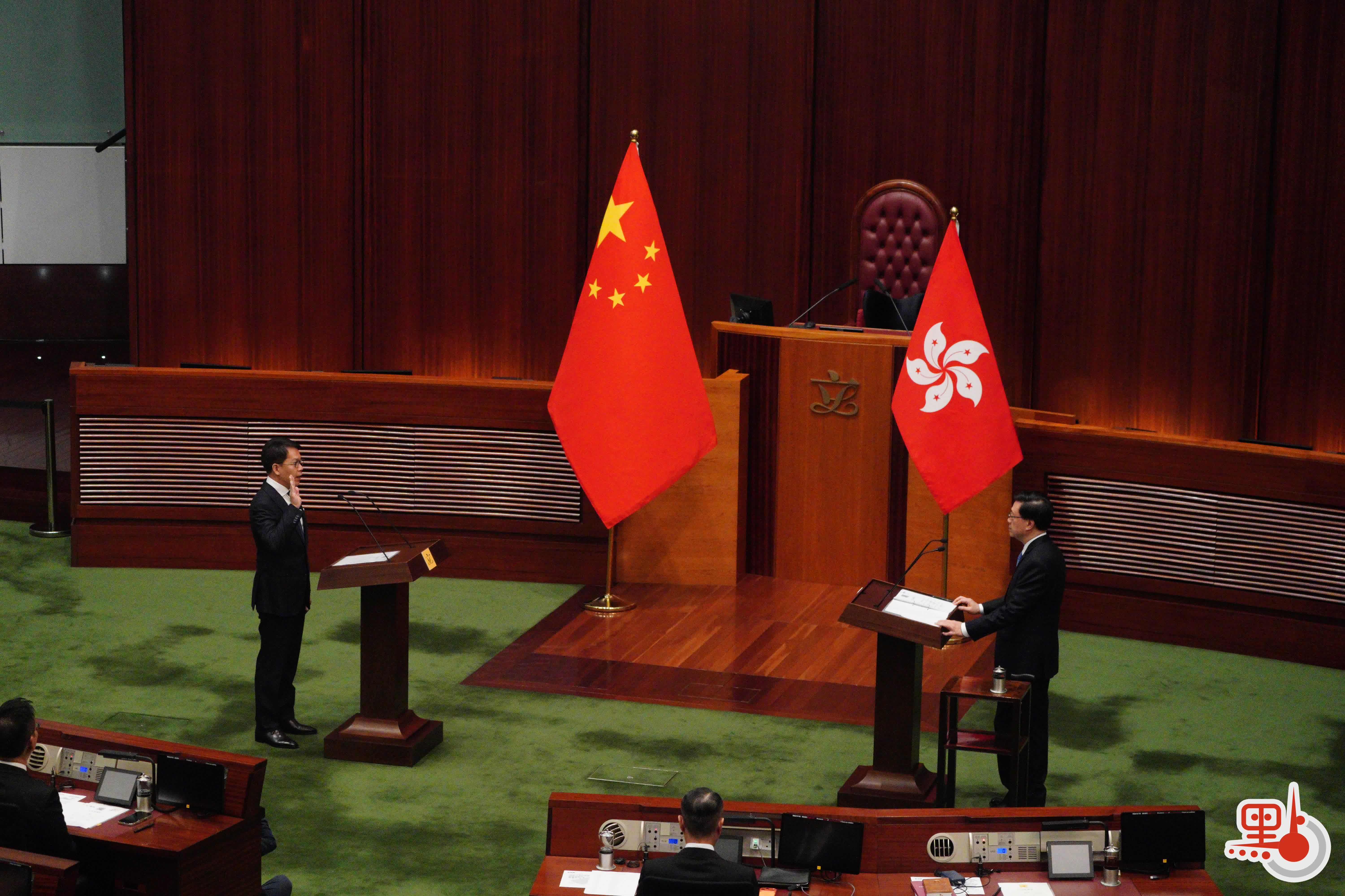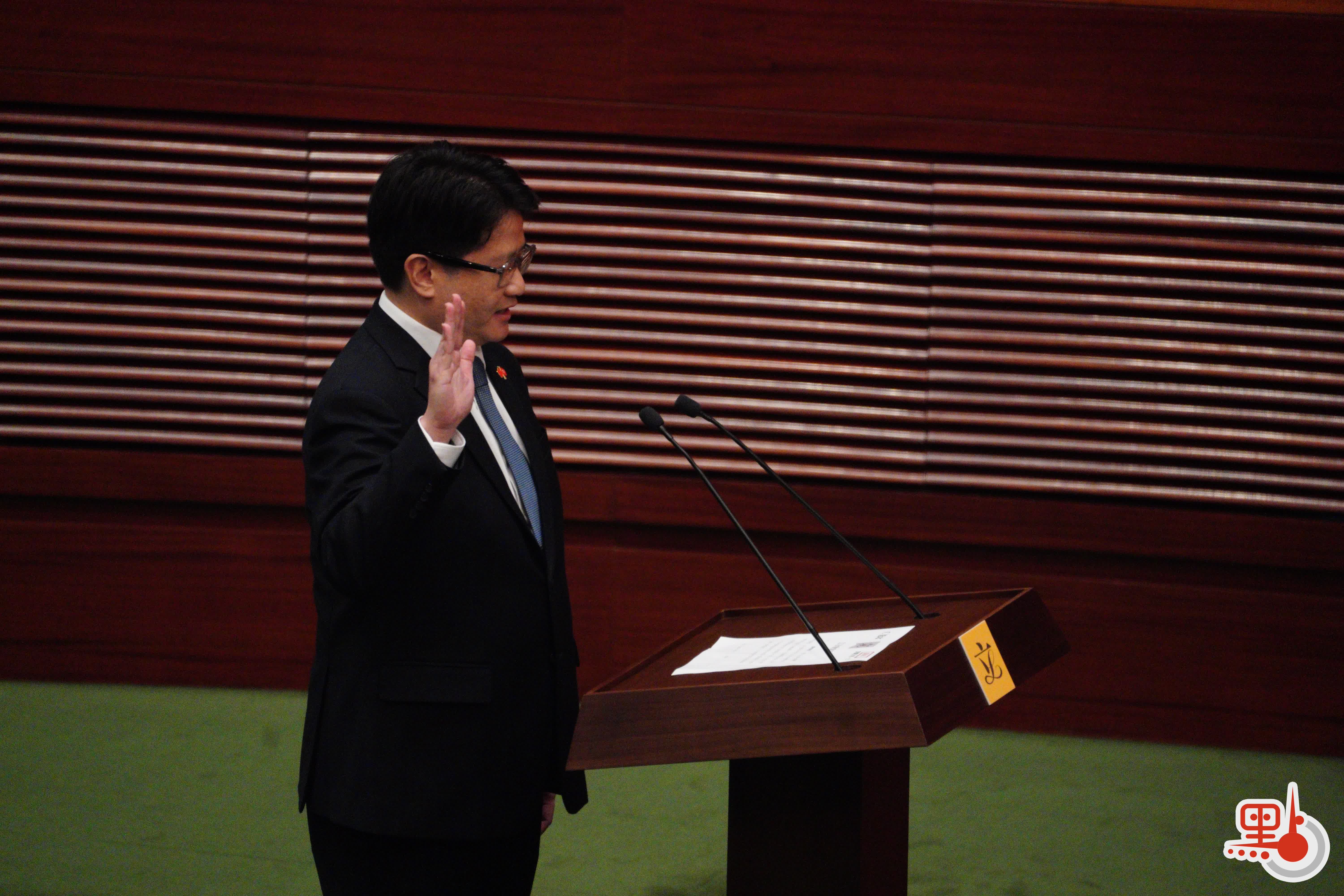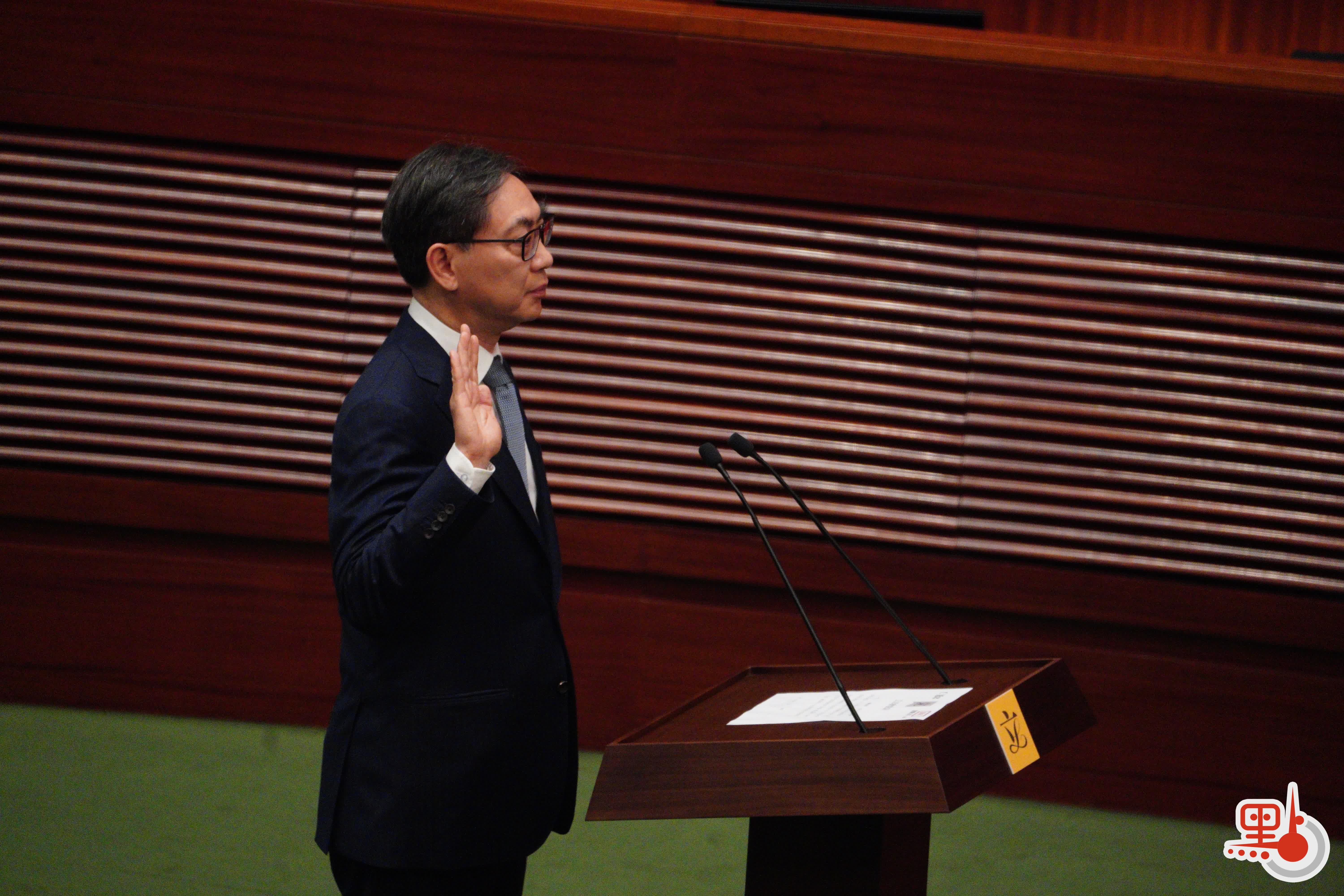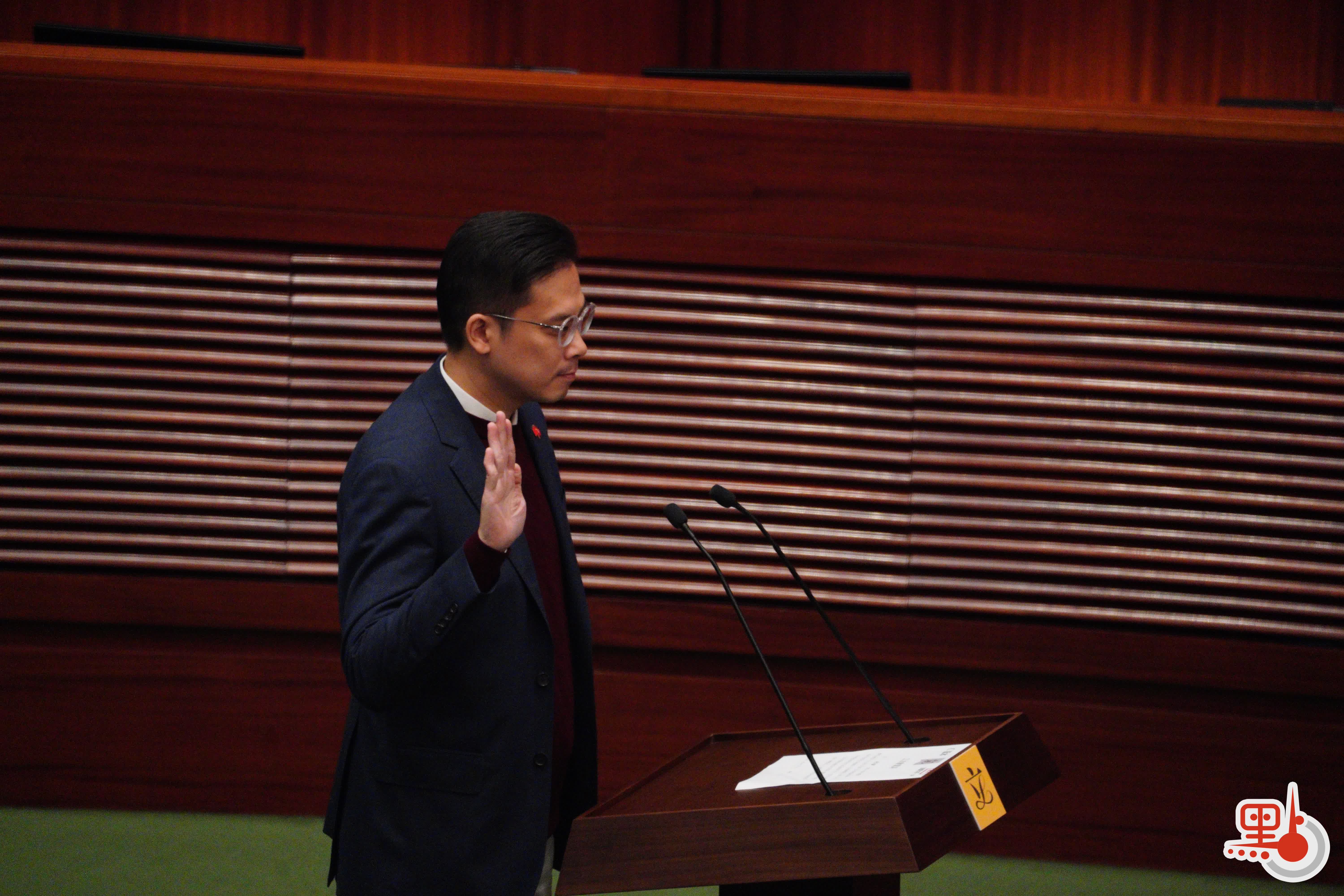 根據經《2021年公職(參選及任職)(雜項修訂)條例》修訂的《宣誓及聲明條例》(第11章),行政長官或其授權人士為立法會議員宣誓的監誓人。