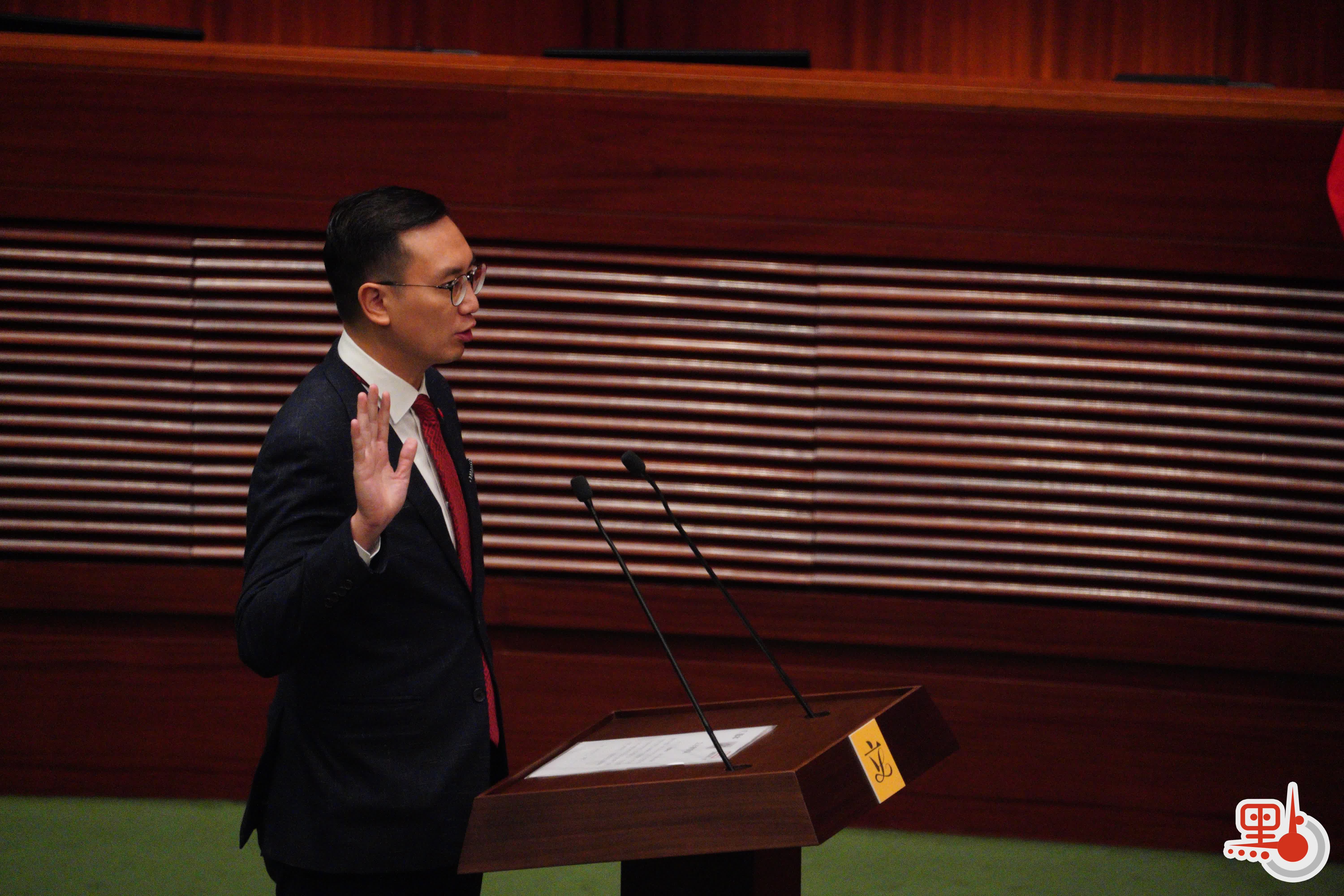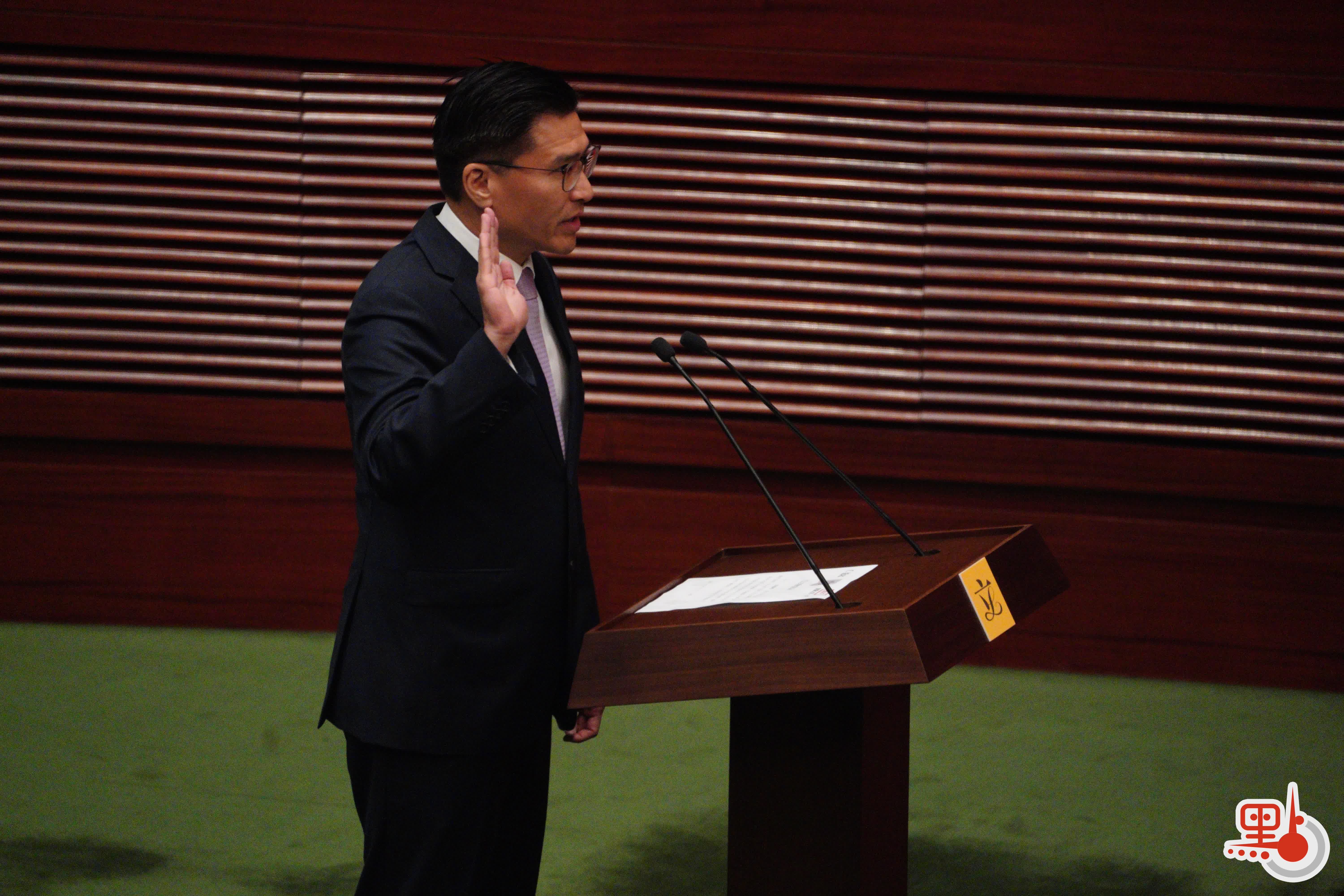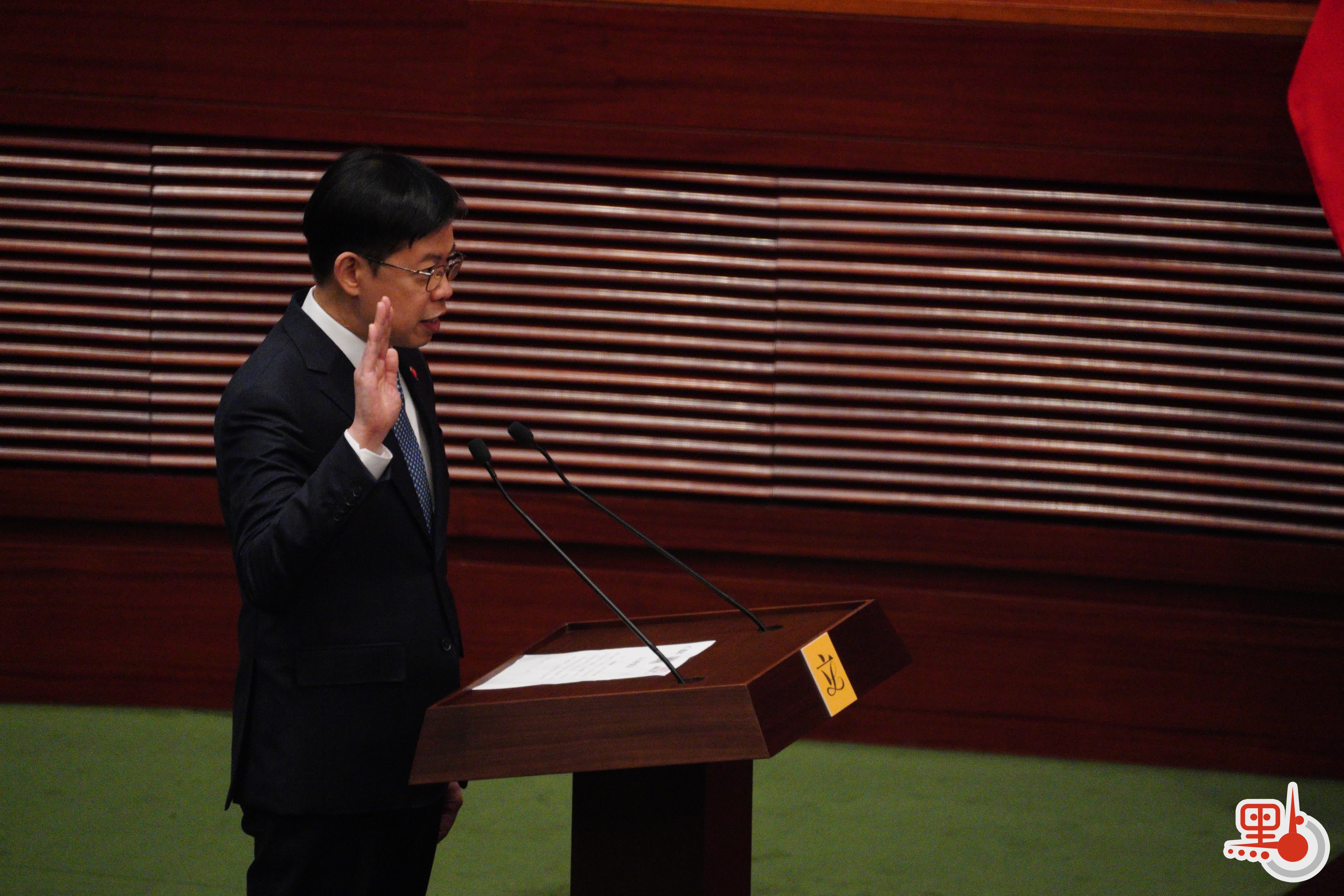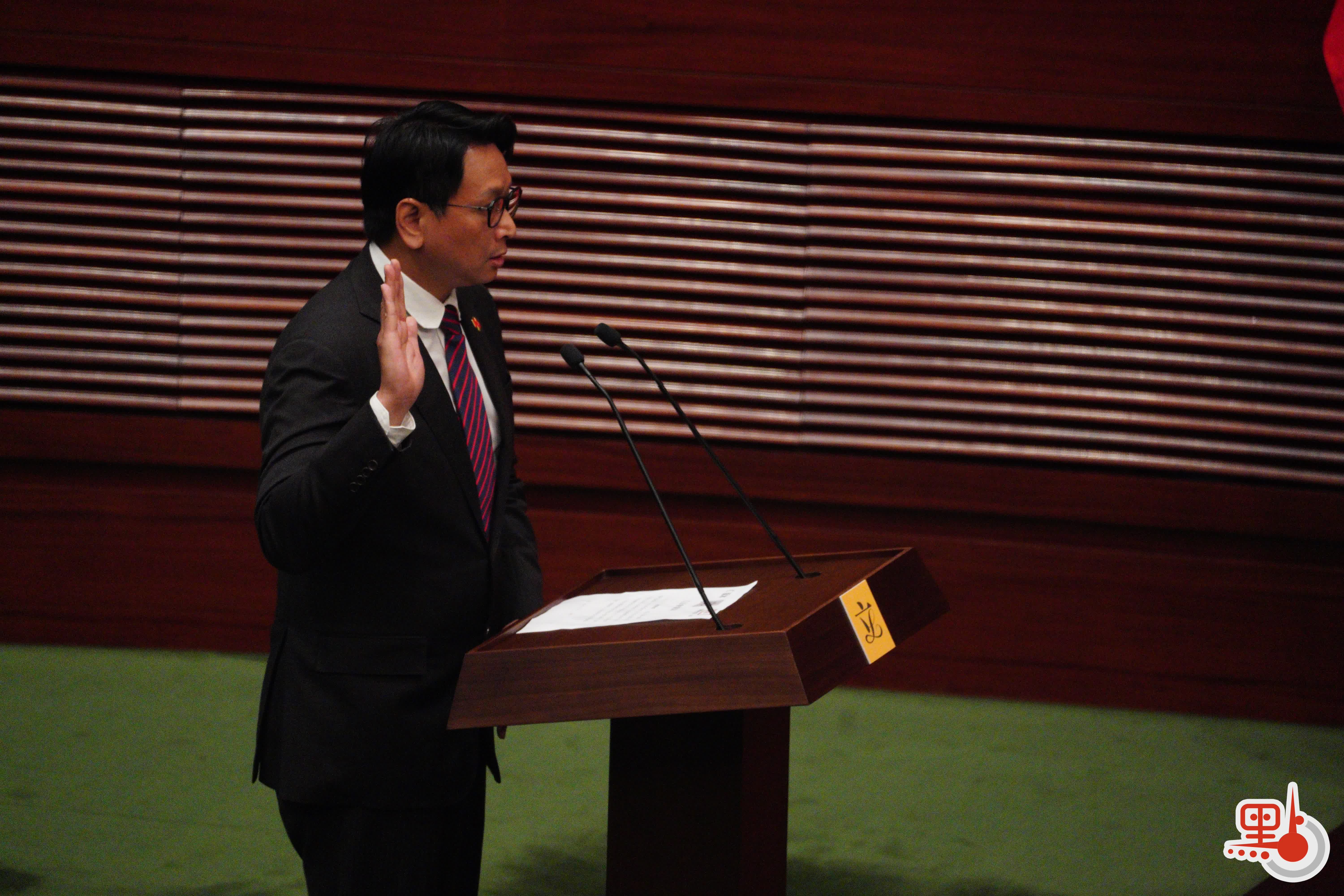 根據經《2021年公職(參選及任職)(雜項修訂)條例》修訂的《宣誓及聲明條例》(第11章),行政長官或其授權人士為立法會議員宣誓的監誓人。