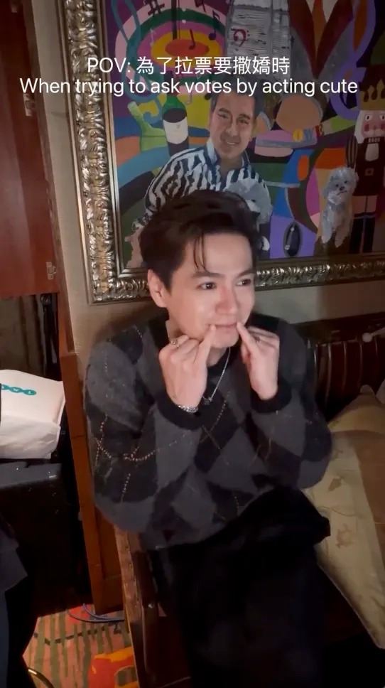 為了拉票,各路十強藝人在過去一個月可謂出盡法寶。當中最有心思而又最團結的,非《金式森林》演員莫屬。劇中演員陳曉華、羅子溢、何廣沛及陳浚霆早前趁冬至前夕、齊齊開Live為劇集及個人提名拉票;期間,子溢太太楊茜堯「突襲」直播間公開力撐老公,除坦言自己是《金式森林》粉絲,更揚言:「我年年都係投畀老公,唔只係今年。」子溢聞言全程笑不攏嘴。除了開直播,一眾演員還落力拍攝「拉票片」,「開Live四人組」與莊子璇先後還原近期網上爆Hit的撒嬌動作,可愛得來相當爆笑。