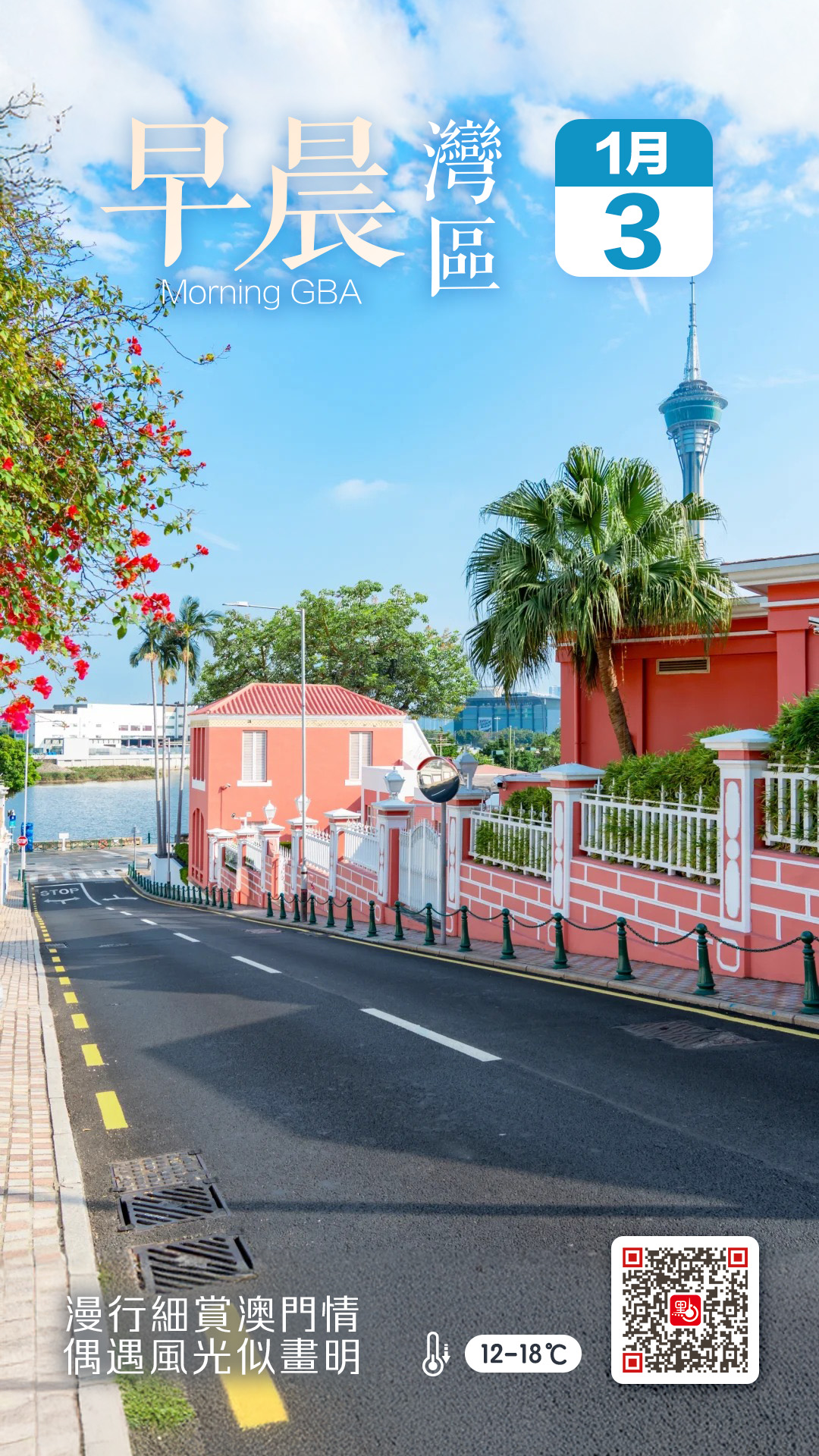 【點新聞報道】2026年的第一個周末來啦!如果你還未想好今日(1月3日)去哪裏度過這段難得的閑暇時光,何不考慮開啟一場短途的浪漫之旅?位於澳門半島的衣灣斜巷,是一條面向藍色大海的靜謐街道,這裏不僅有粉色的房屋、搖曳的椰樹與盛放的三角梅,更彷彿讓人一步踏入宮崎駿筆下的動漫世界。沿着海岸漫步,微風拂面,與好友共享這份愜意,正是假日裏難得的放鬆方式。