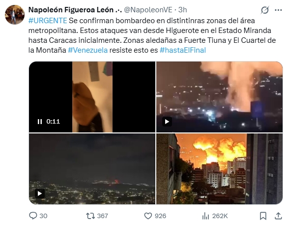 (有片)委內瑞拉首都至少10處地點遇襲 居民憶述:天空變紅巨響不斷