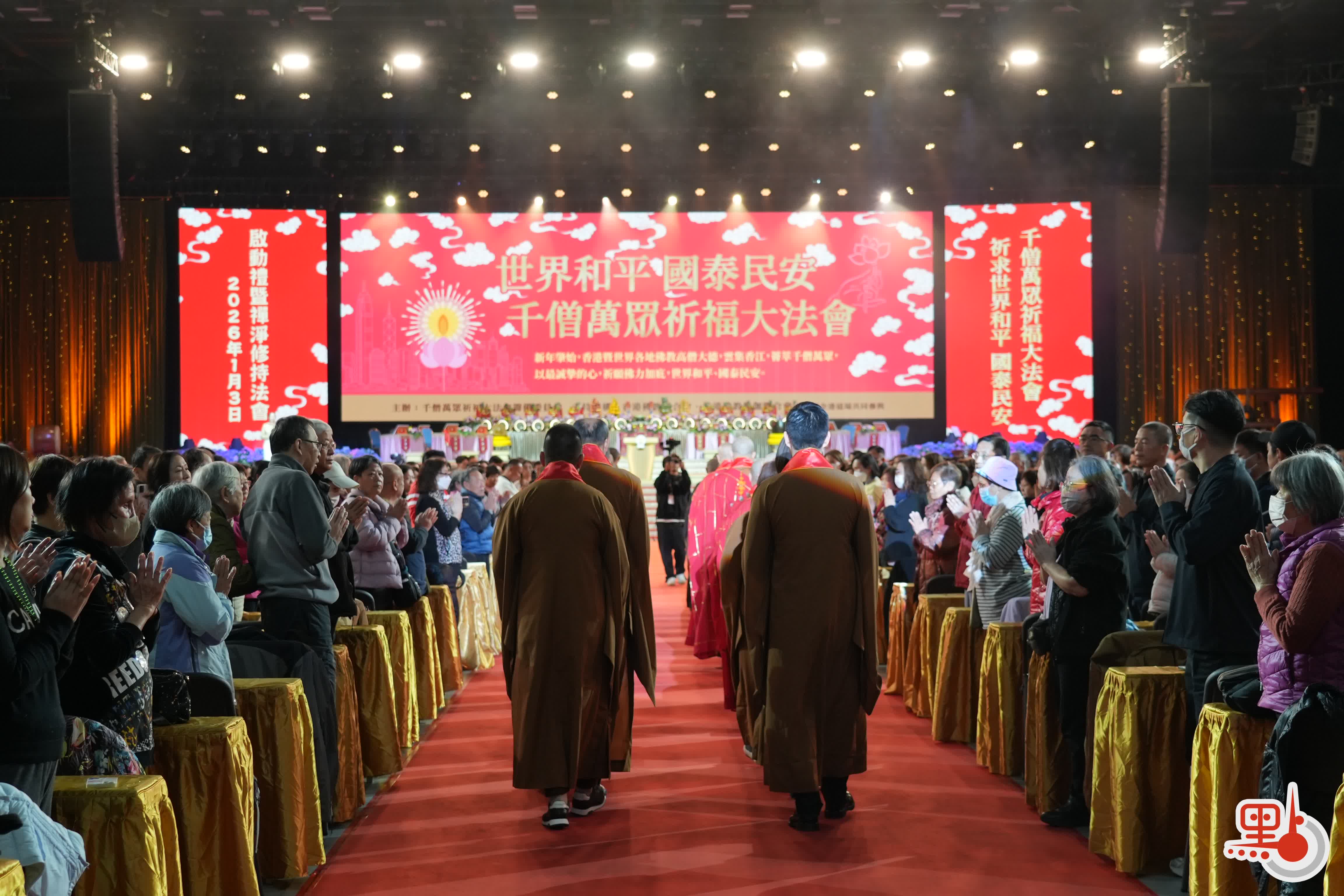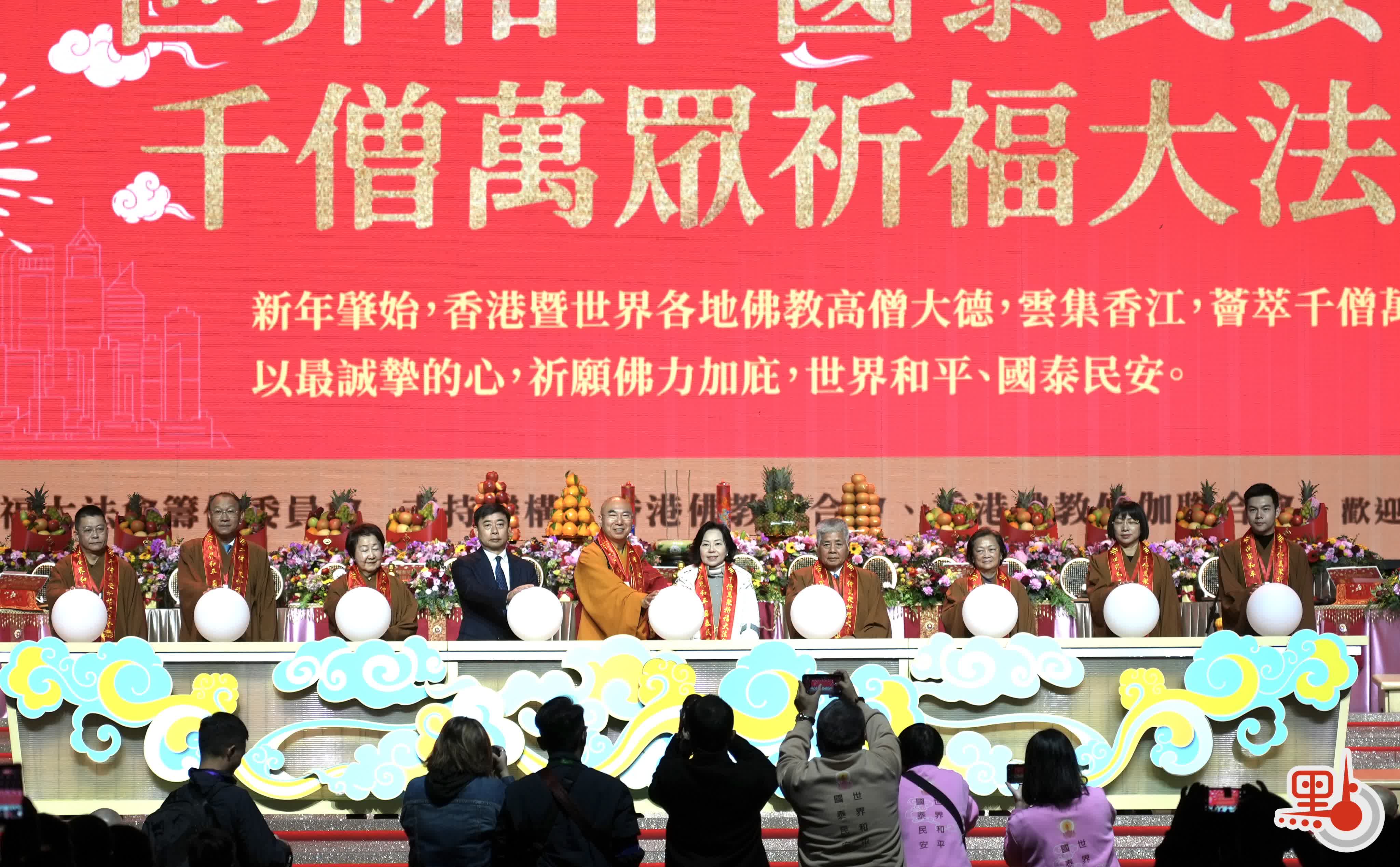 【點新聞報道】今日(1月3日)起,「千僧萬眾祈福大法會」於香港啟德體藝館一連五日展開。今晚7時,法會啟動禮暨禪淨法會正式舉行,民政及青年事務局局長麥美娟、佛聯會會長寬運法師及中央人民政府駐香港特別行政區聯絡辦公室協調部部長朱文等嘉賓出席啟動禮。