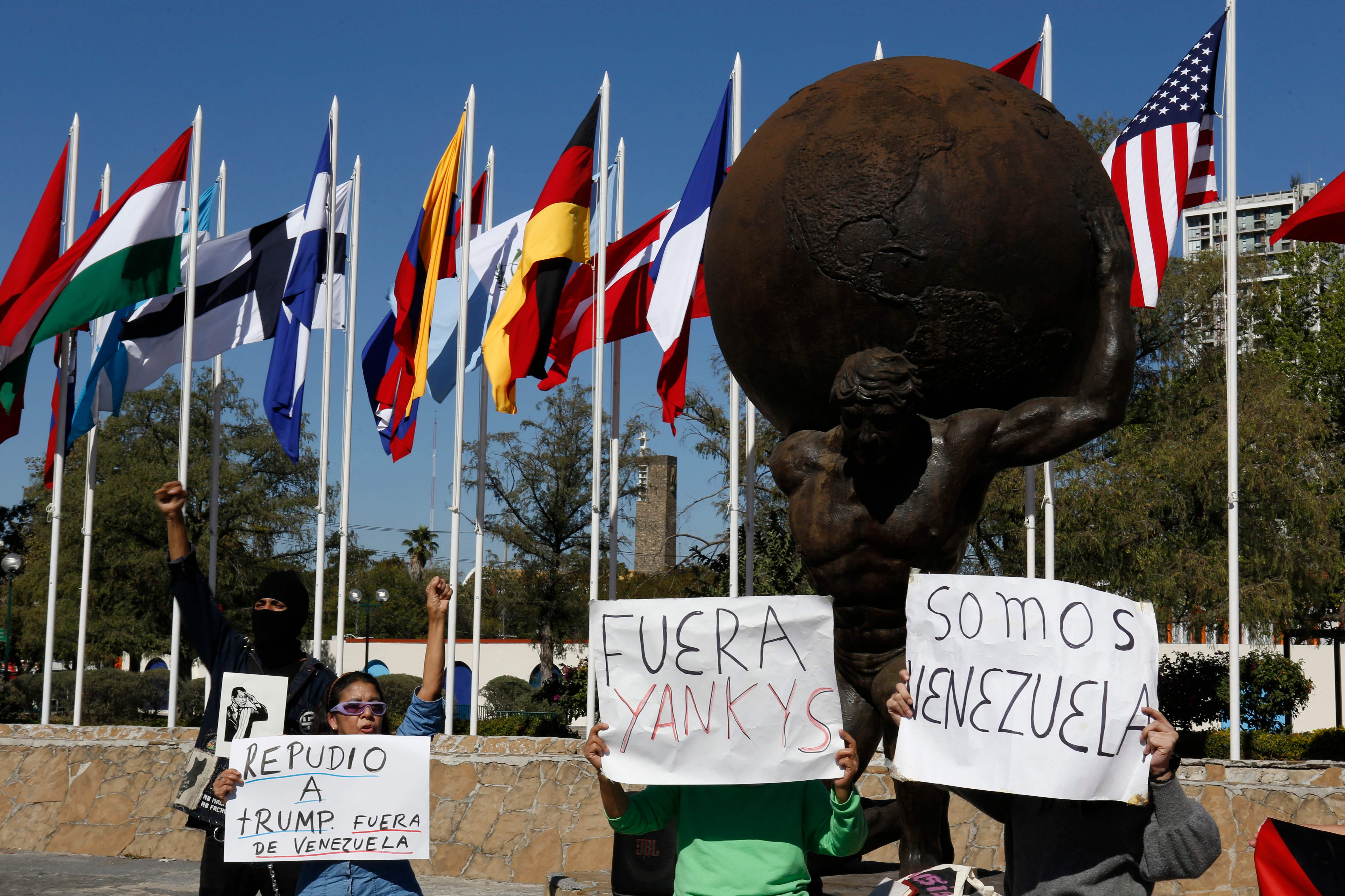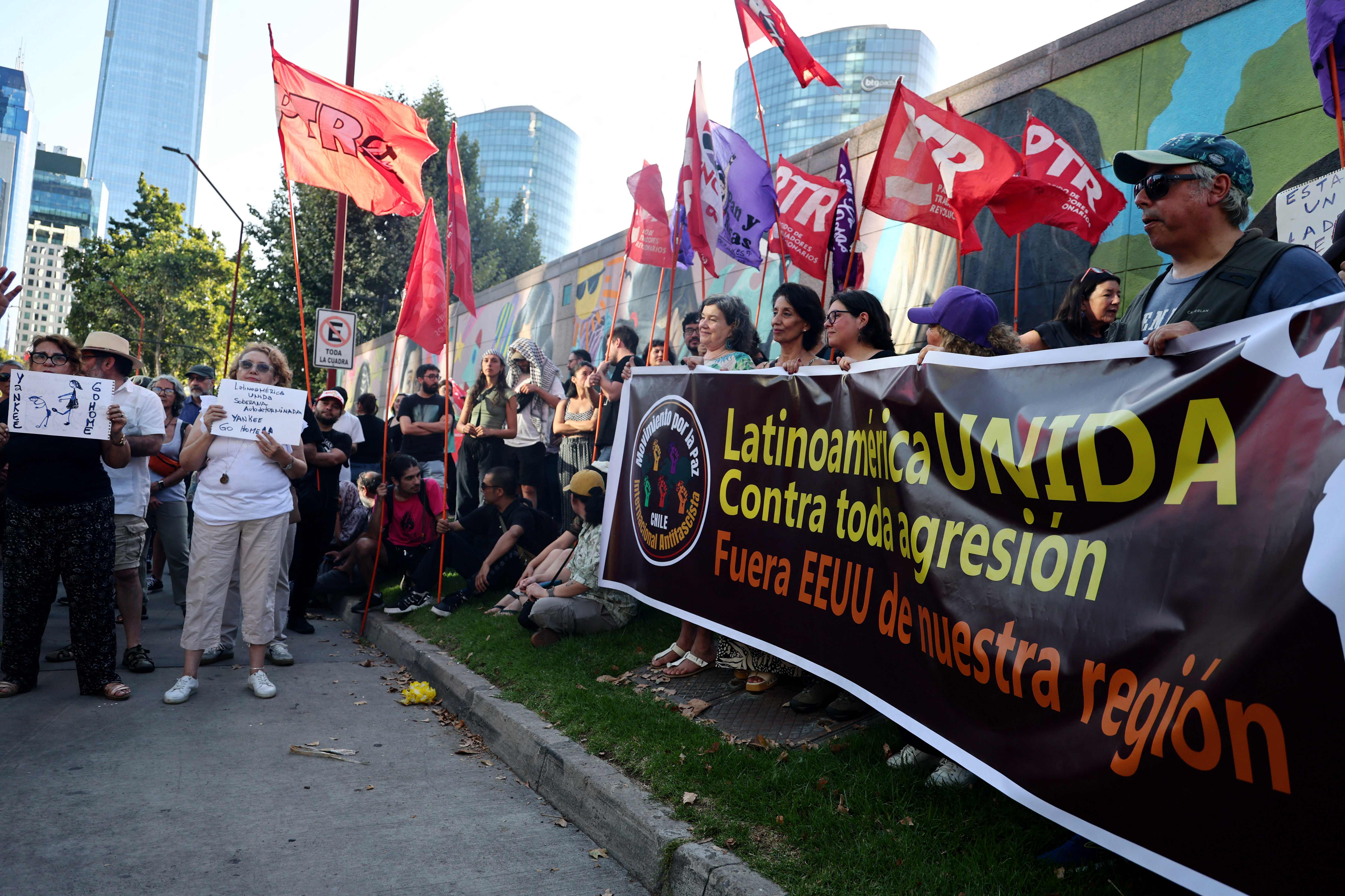 在白宮門外的廣場上,幾百名抗議者在這裏集會,對於美國對委內瑞拉採取的軍事行動表示強烈抗議。他們手舉標語,高喊鮮明的口號,包括「停止對委內瑞拉的轟炸」「停止為了石油而導致的流血犧牲」,他們強烈呼籲美國停止對任何國家和地區的霸權干涉。
