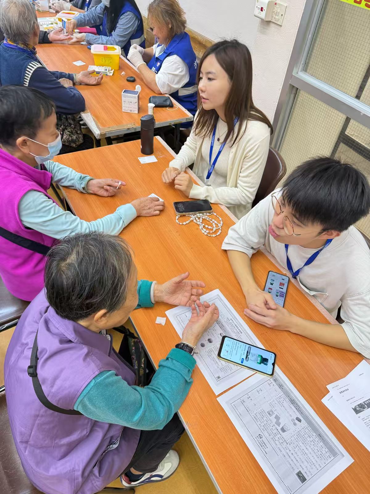 主辦方同時提供免費小型身體檢查服務,包括量血壓、驗血糖及測量體重等多項檢測。不少街坊主動了解自身身體狀況,並即場向藥劑師及營養師查詢,氣氛熱烈。